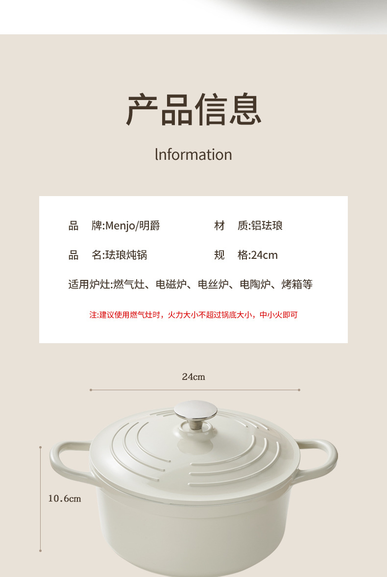 明爵英式珐琅锅铝合金家用炖锅炖盅砂锅汤锅焖烧锅不粘锅电磁炉用