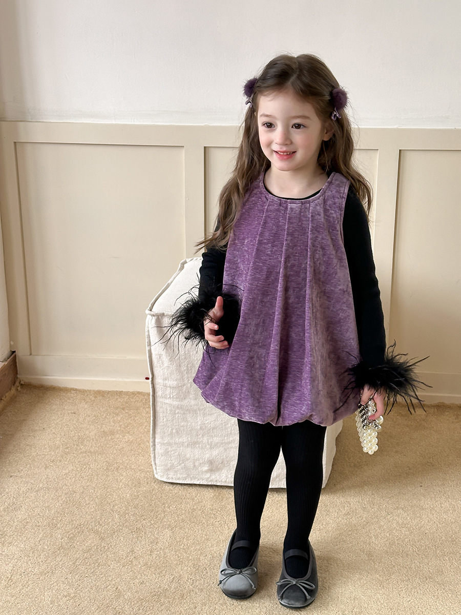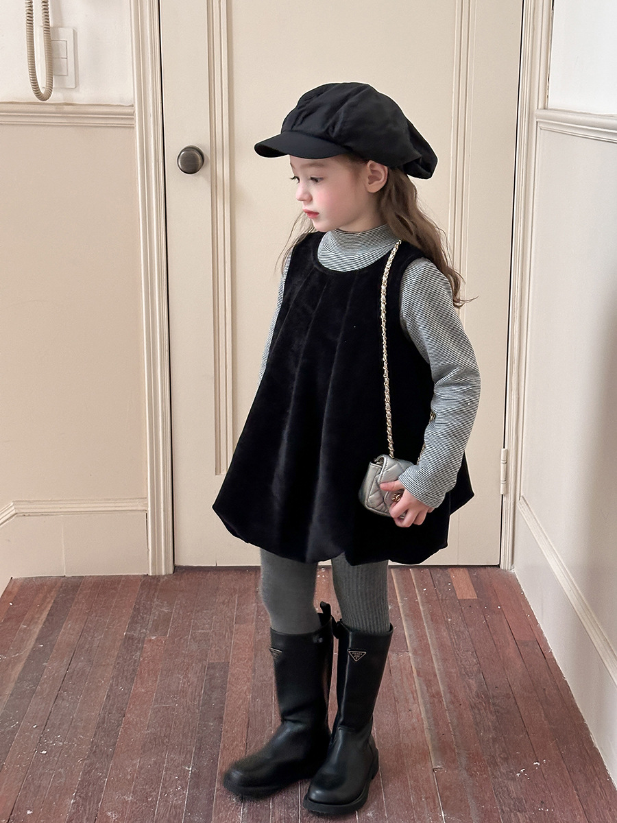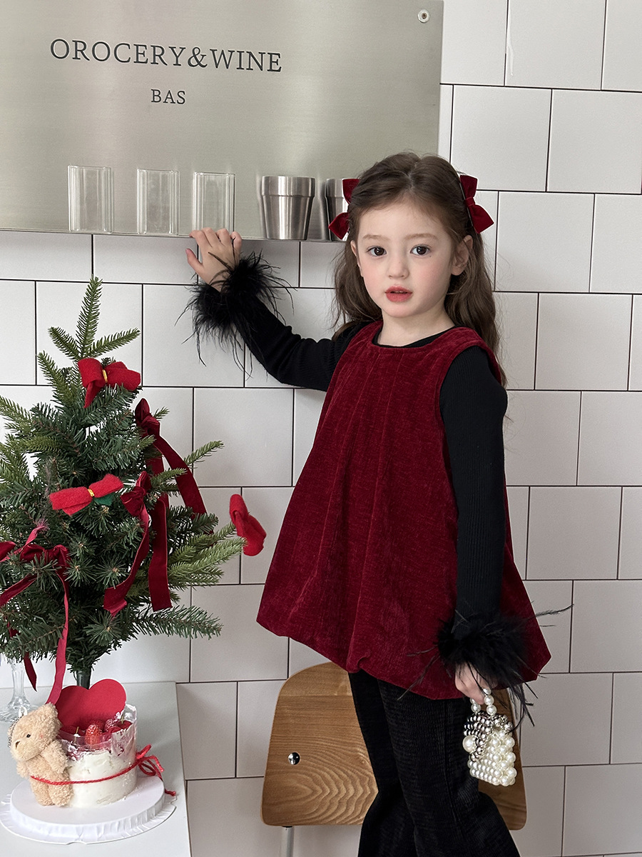 艾摩贝贝中大小女童韩版保暖加厚斜纹呢洋气氛围感叠穿花苞背心裙