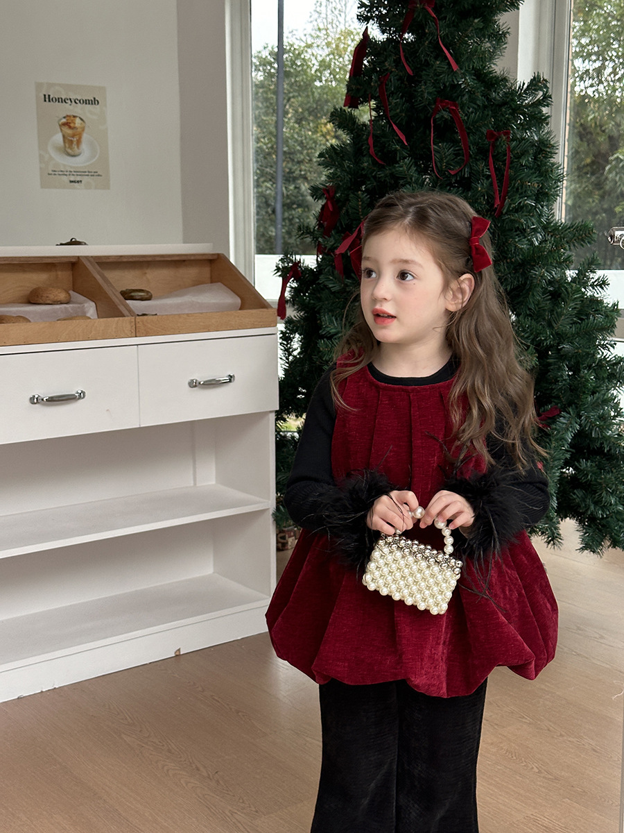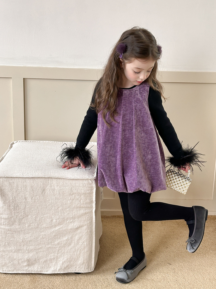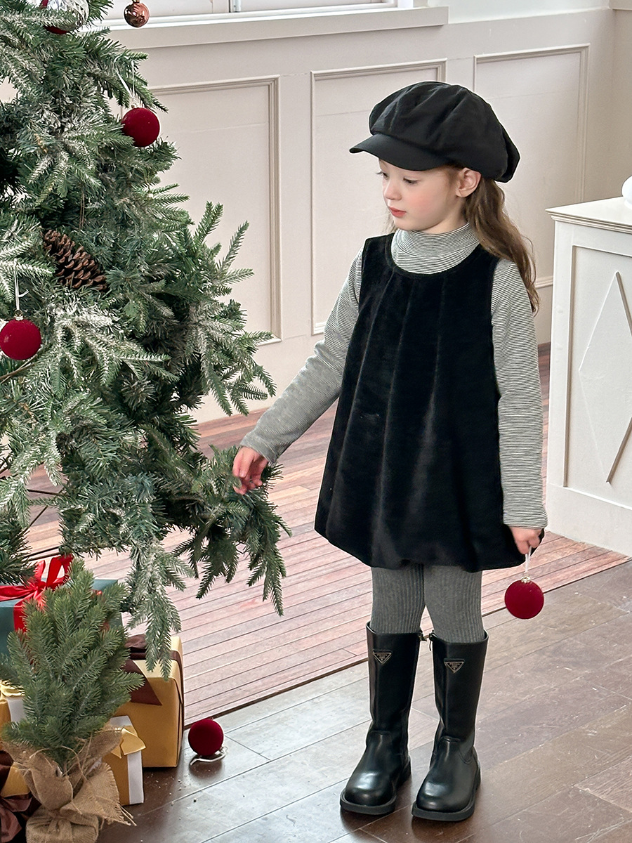 艾摩贝贝中大小女童韩版保暖加厚斜纹呢洋气氛围感叠穿花苞背心裙