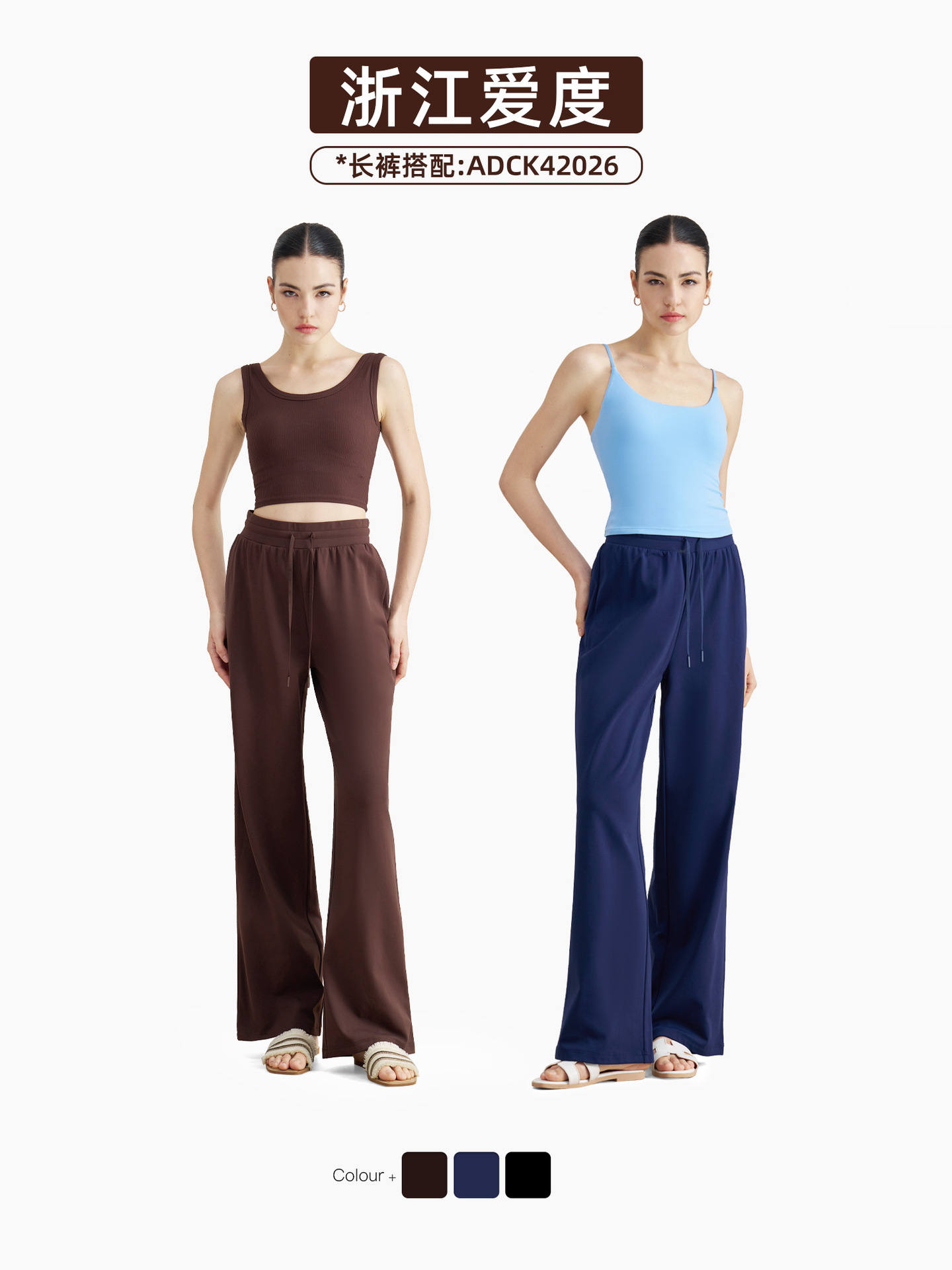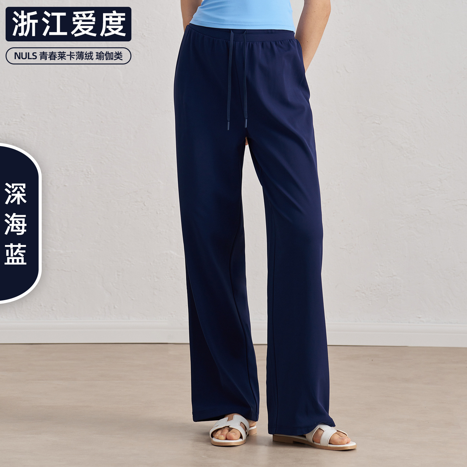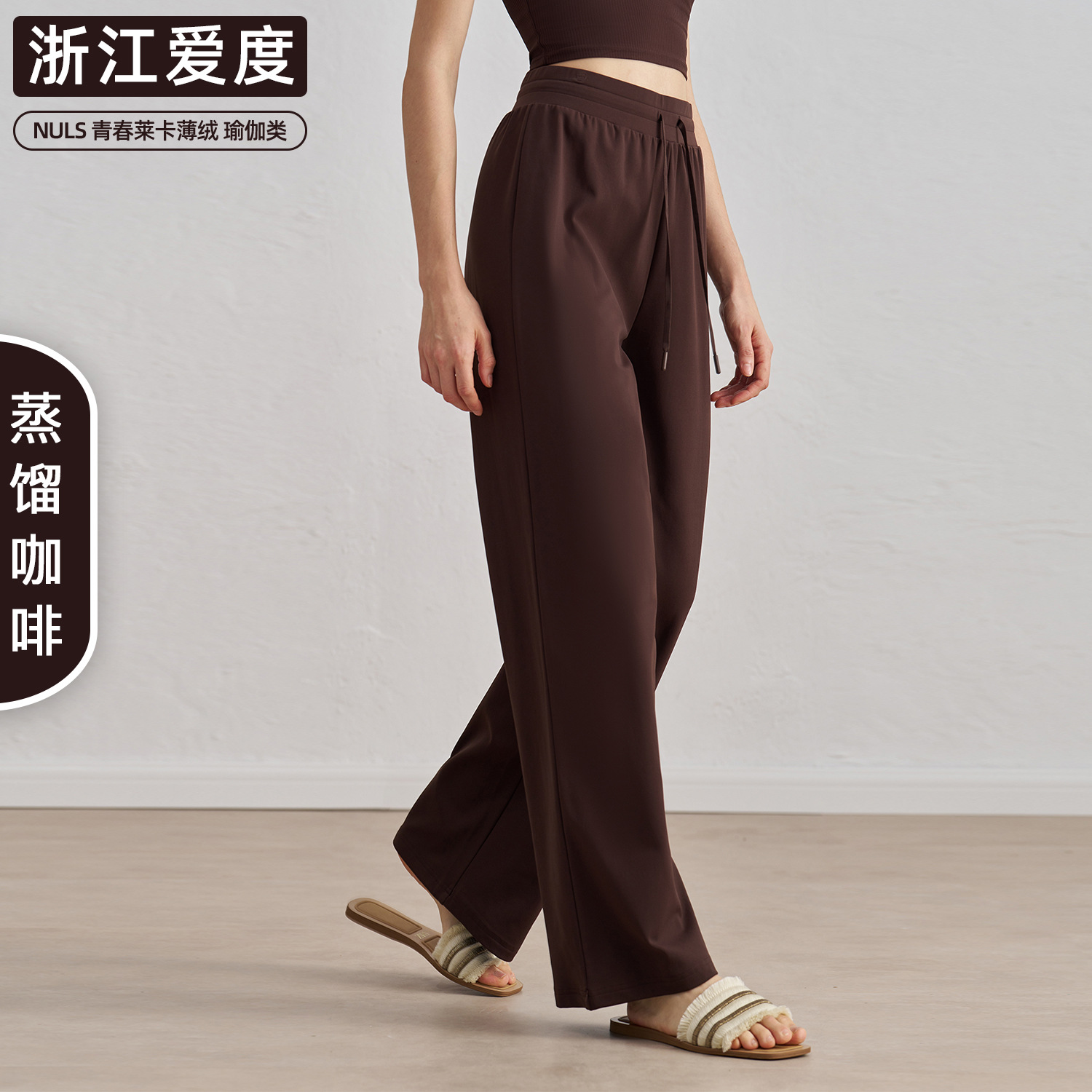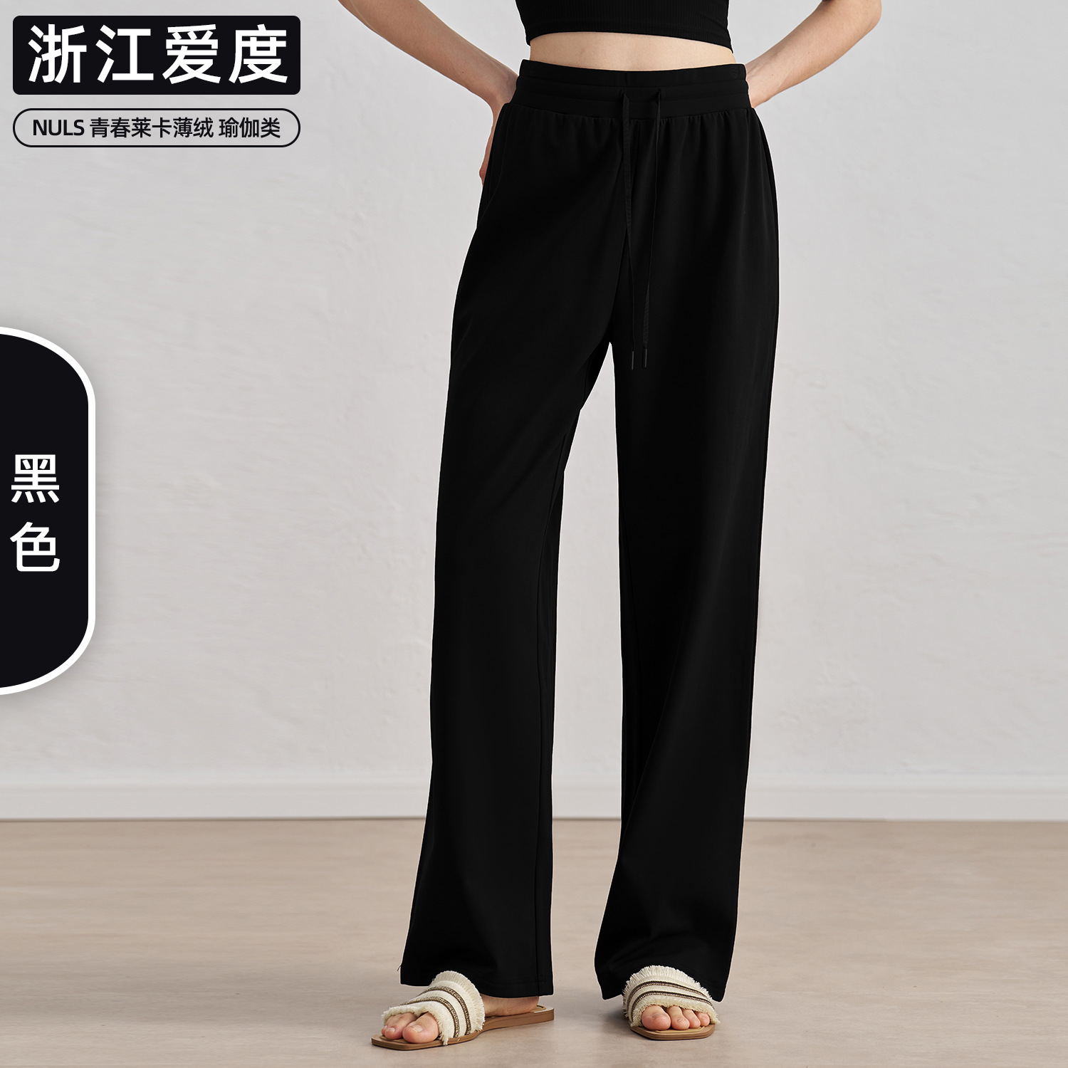 爱度秋冬薄绒裸感运动裤加厚阔腿直筒瑜伽长裤显瘦百搭保暖休闲裤
