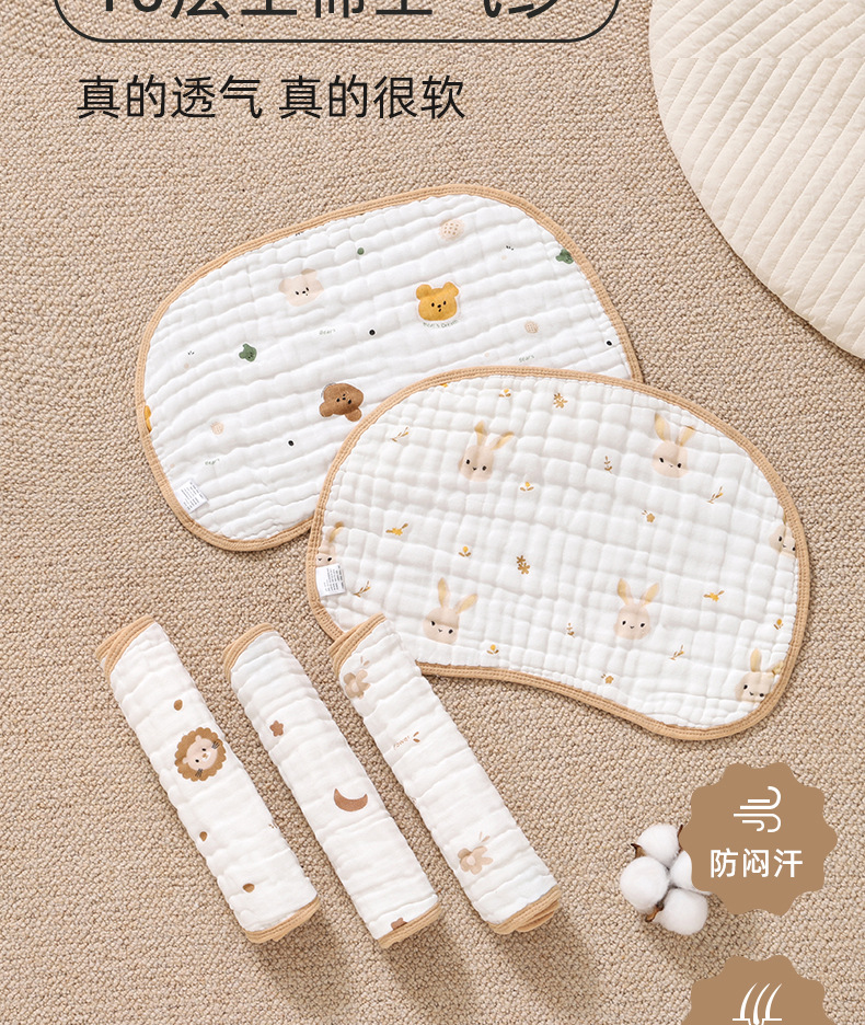 柔蕴婴儿云片枕新生儿透气吸汗宝宝枕头防吐奶枕片纯棉纱布枕巾