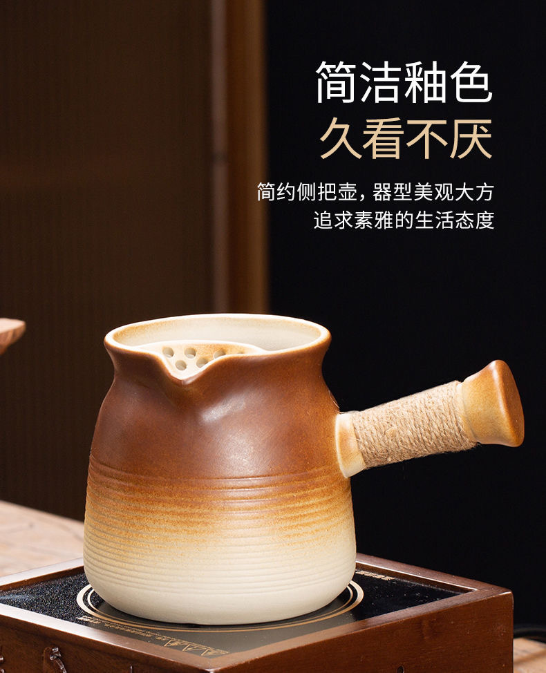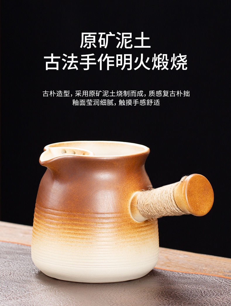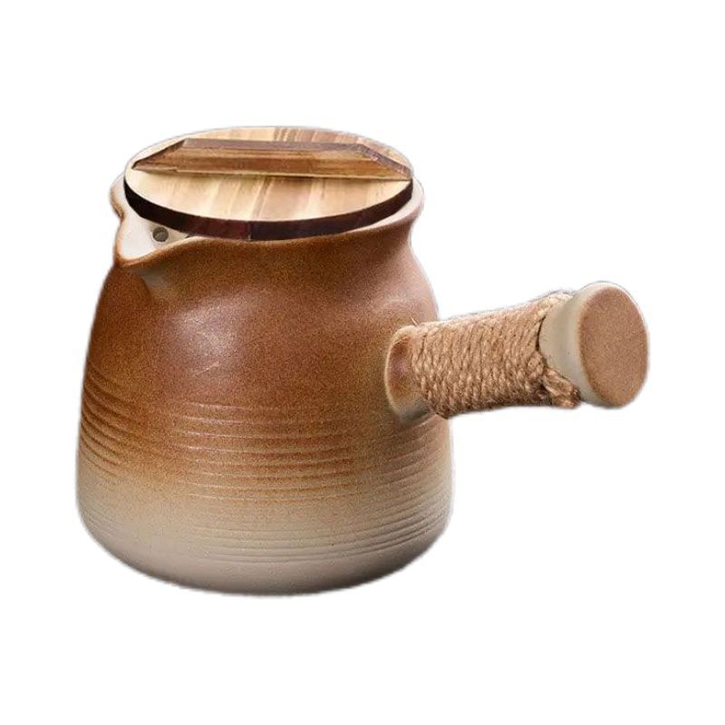 【带盖】烤奶茶罐罐壶围炉煮茶套装可明火干烧粗陶陶瓷陶罐侧把壶