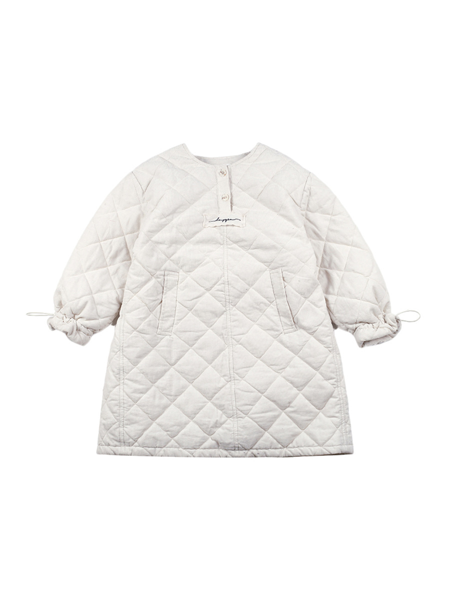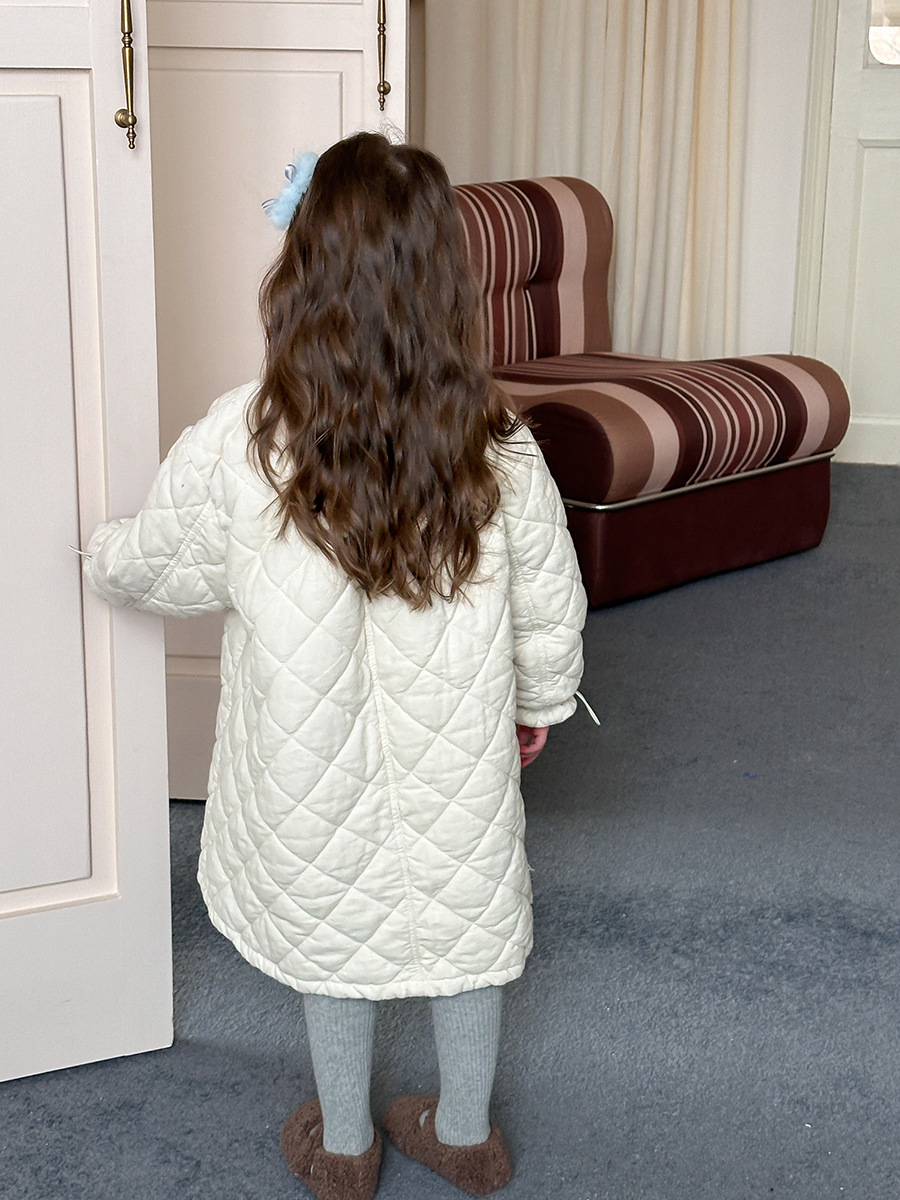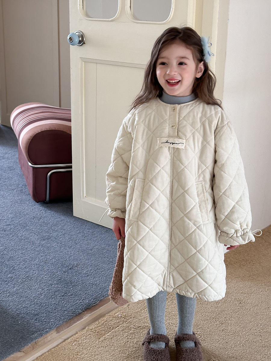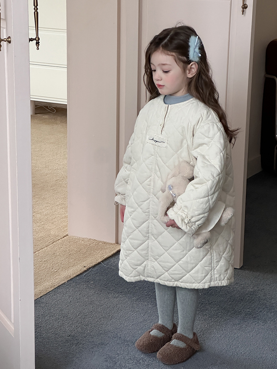 【夹棉】儿童加厚花边袖口连衣裙女童韩版菱格中长款保暖贴标裙子