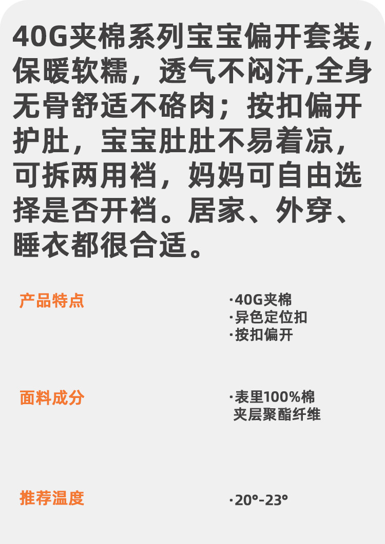 冬季婴儿衣服秋冬初生宝宝40g薄夹棉分体套装保暖夹棉分体套装