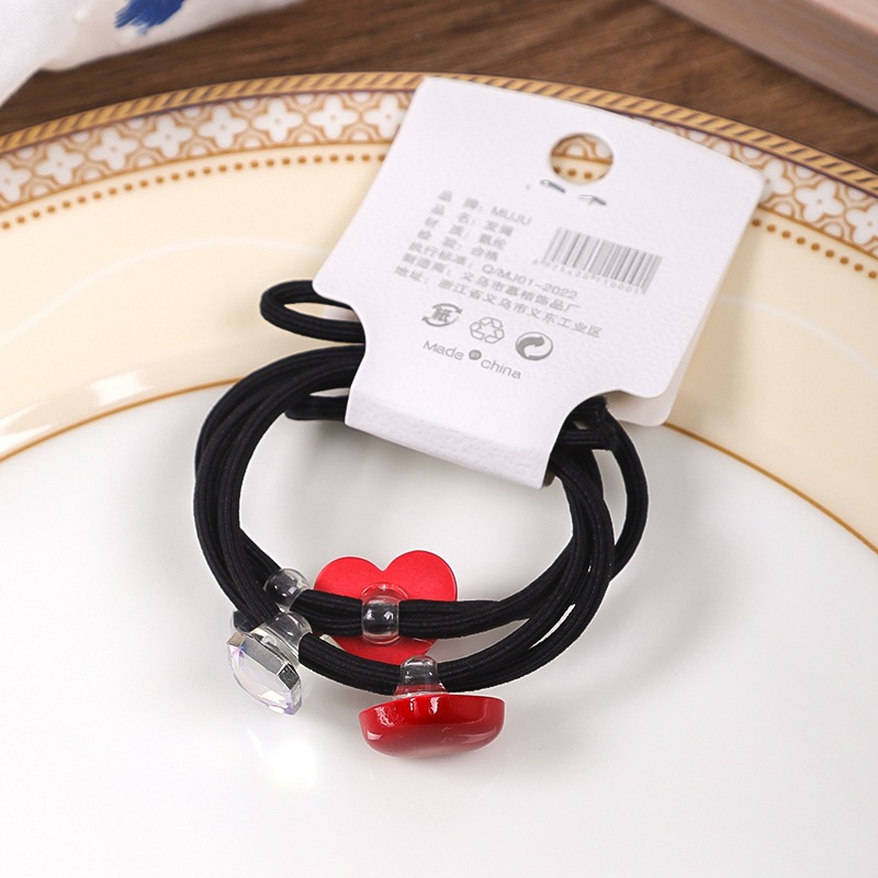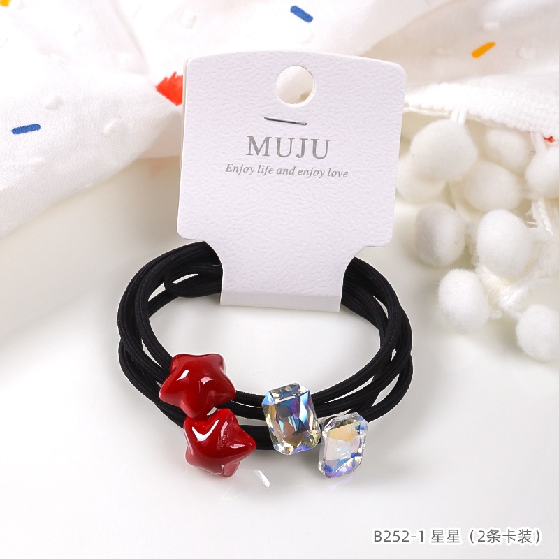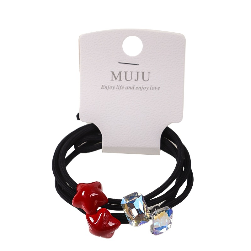气质安可拉红发绳高级感2条卡装发圈闪亮水钻打结皮筋高马尾头绳