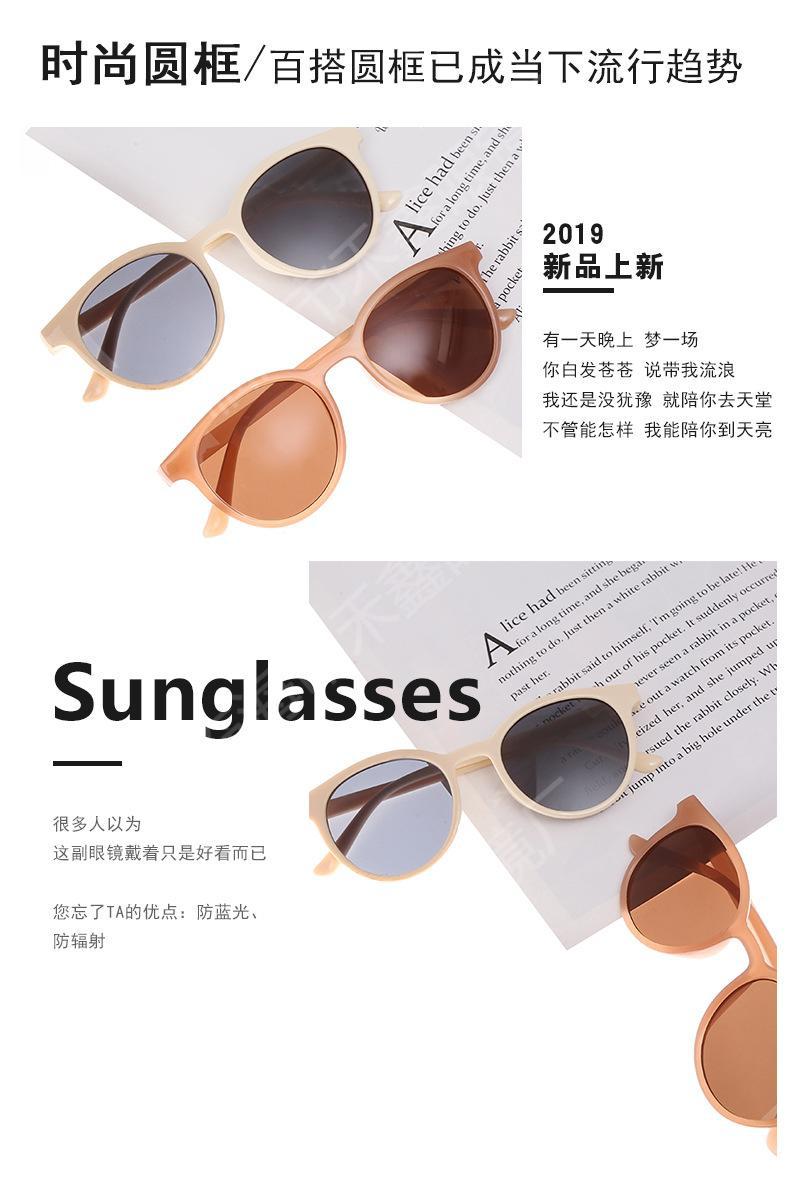 韩版网红太阳镜男奶茶色墨镜地摊太阳眼镜复古圆形太阳镜可爱软妹