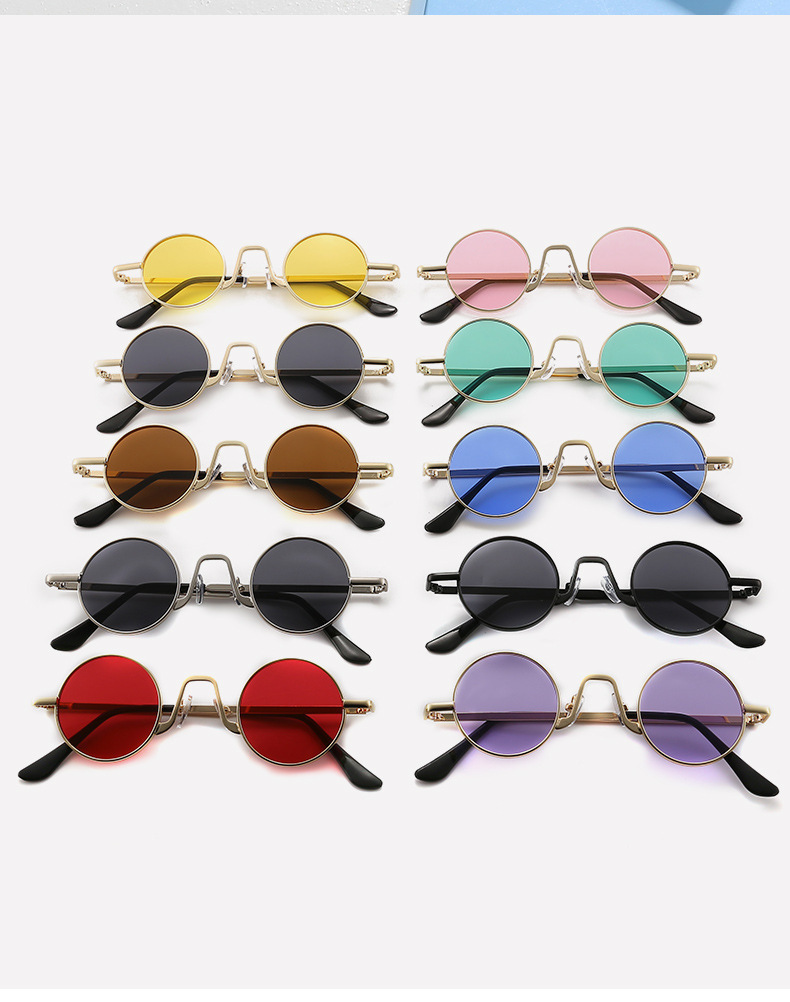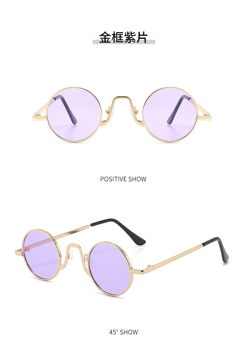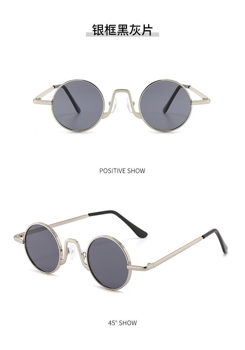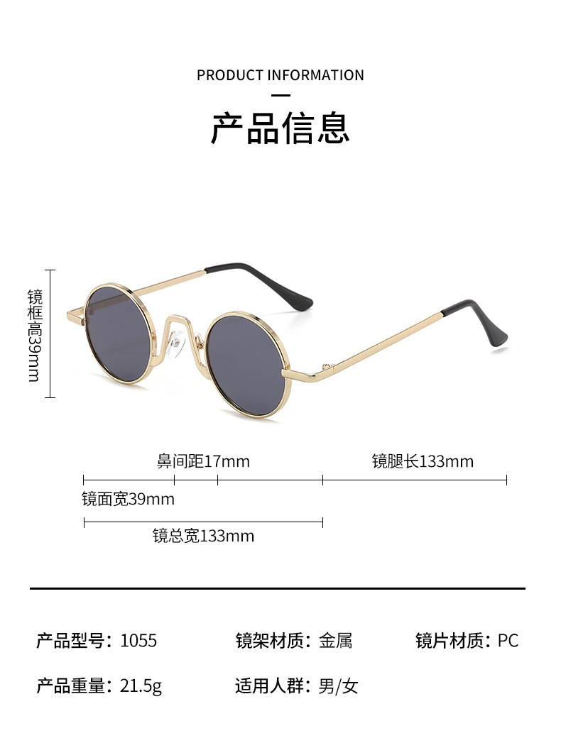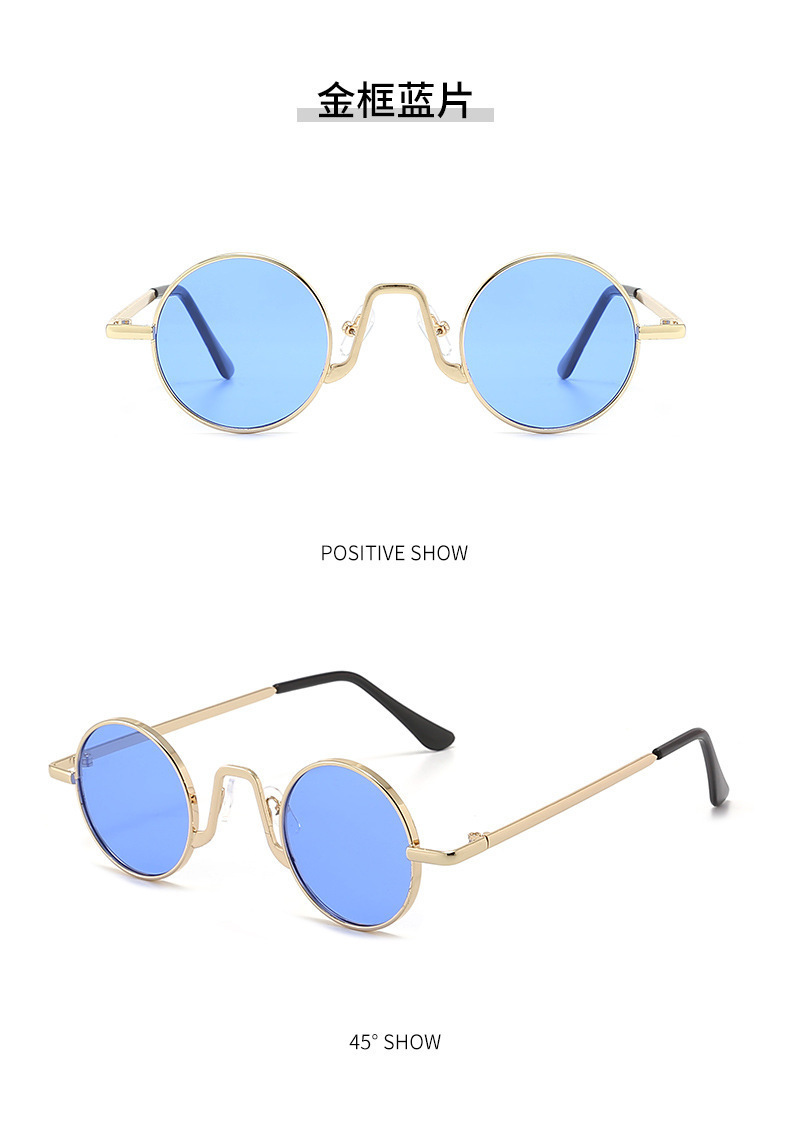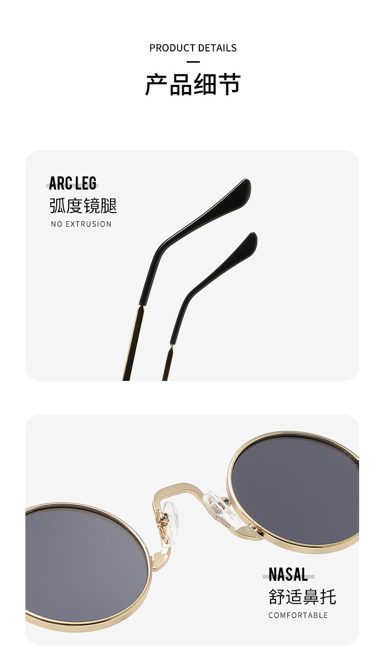 新款时尚复古圆形嘻哈太子镜抖音网红同款墨镜带链条时尚太阳眼镜