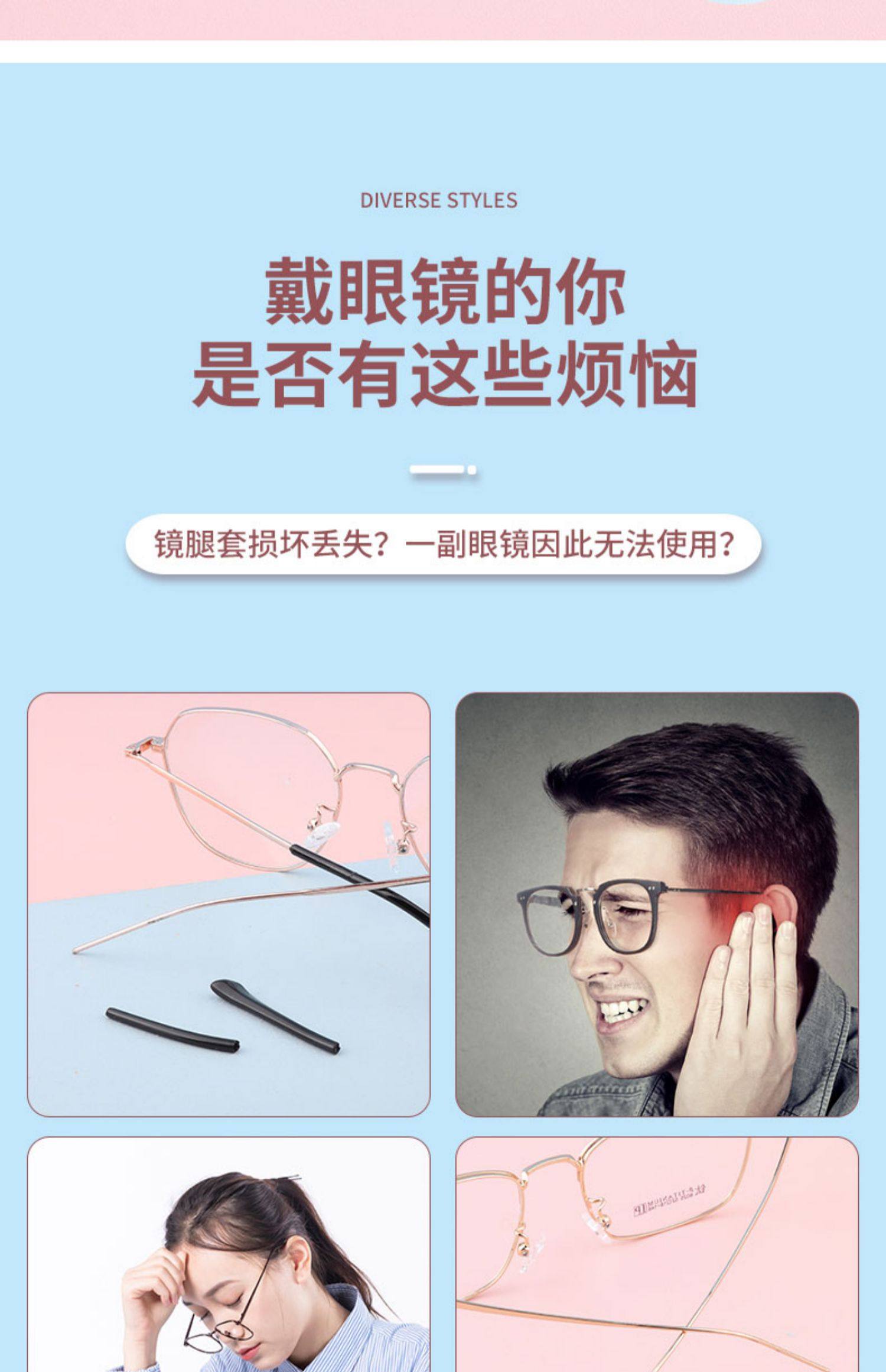 syrea细孔板材眼镜脚套眼睛配件防滑套金属细腿套镜框架硬脚套托