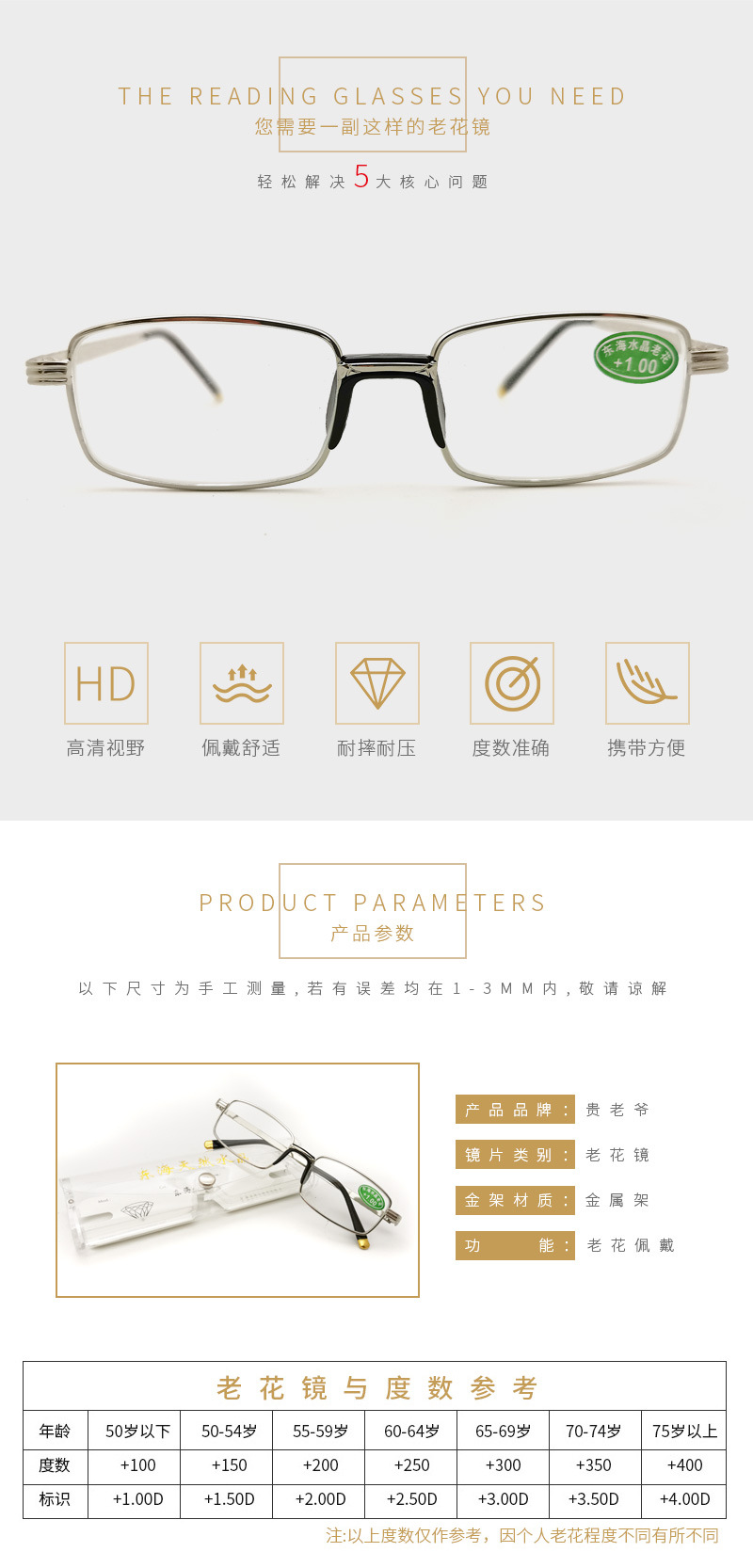 贵老爷水晶老花镜全框高清玻璃一体式鼻托老花眼镜跑江湖地摊批发