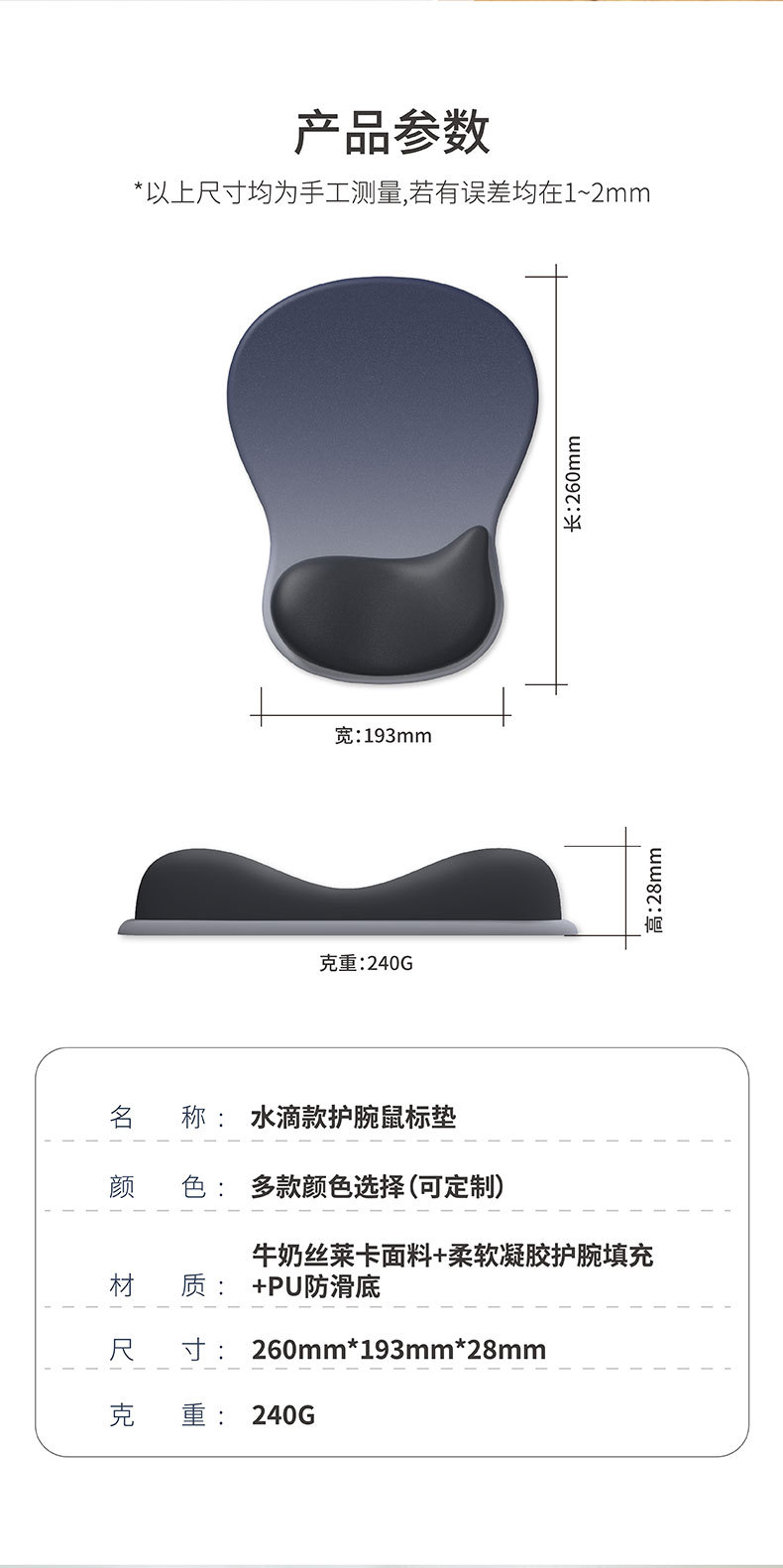 护腕鼠标垫硅胶手腕托垫渐变简约加厚防滑人体工学电脑鼠标垫批发