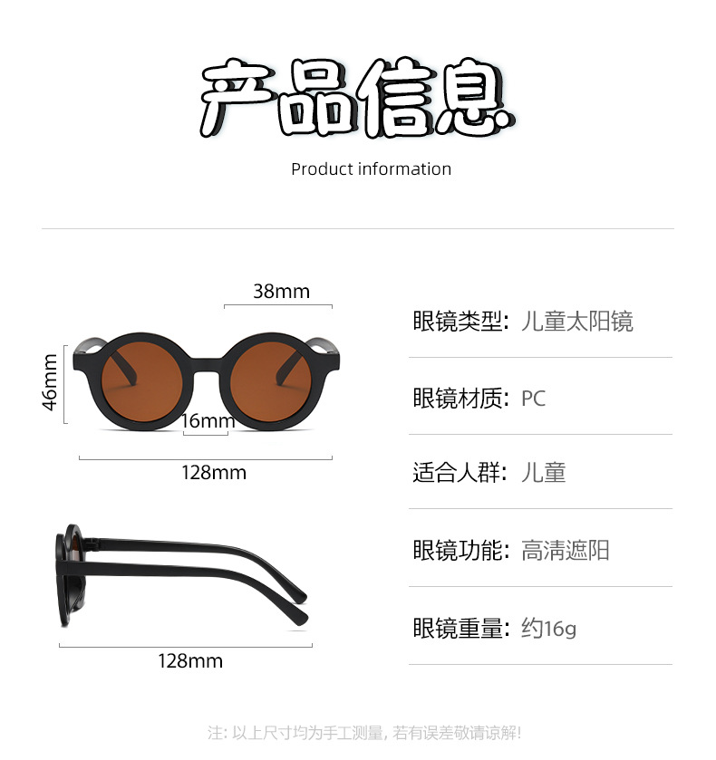 儿童太阳镜亲子磨砂眼镜新款1-8岁宝宝装饰走秀小孩圆圈墨镜