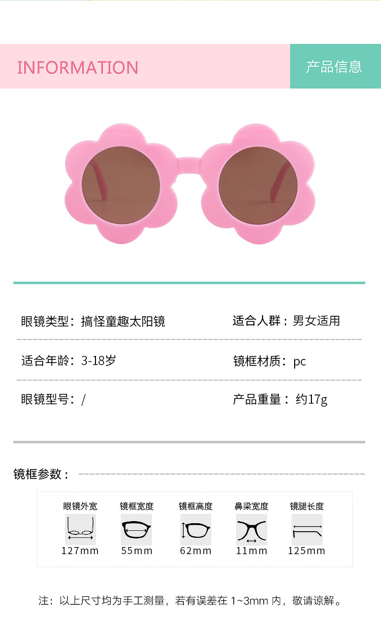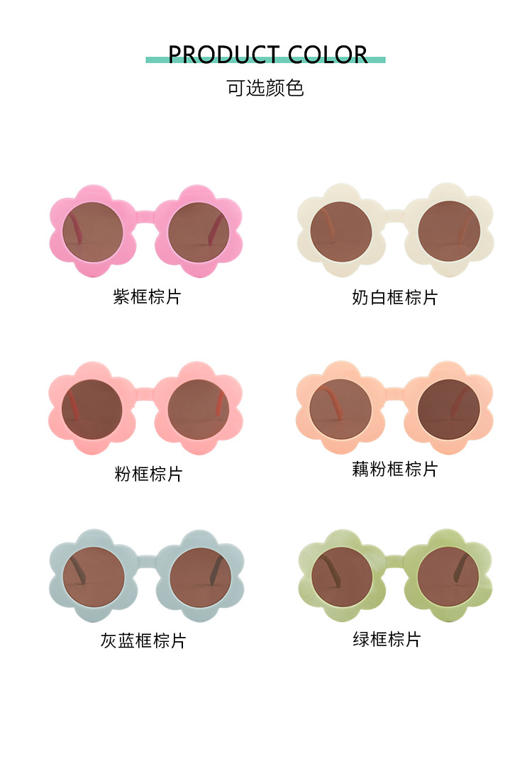 新款儿童太阳花墨镜多色圆框太阳镜可爱男女宝宝防紫外线眼镜批发