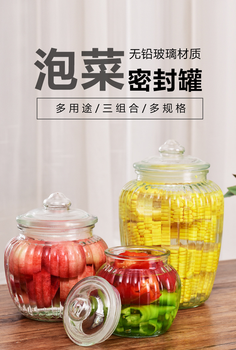 大容量加厚玻璃密封罐带盖家用腌制泡菜酿酒五谷杂粮储物收纳坛子