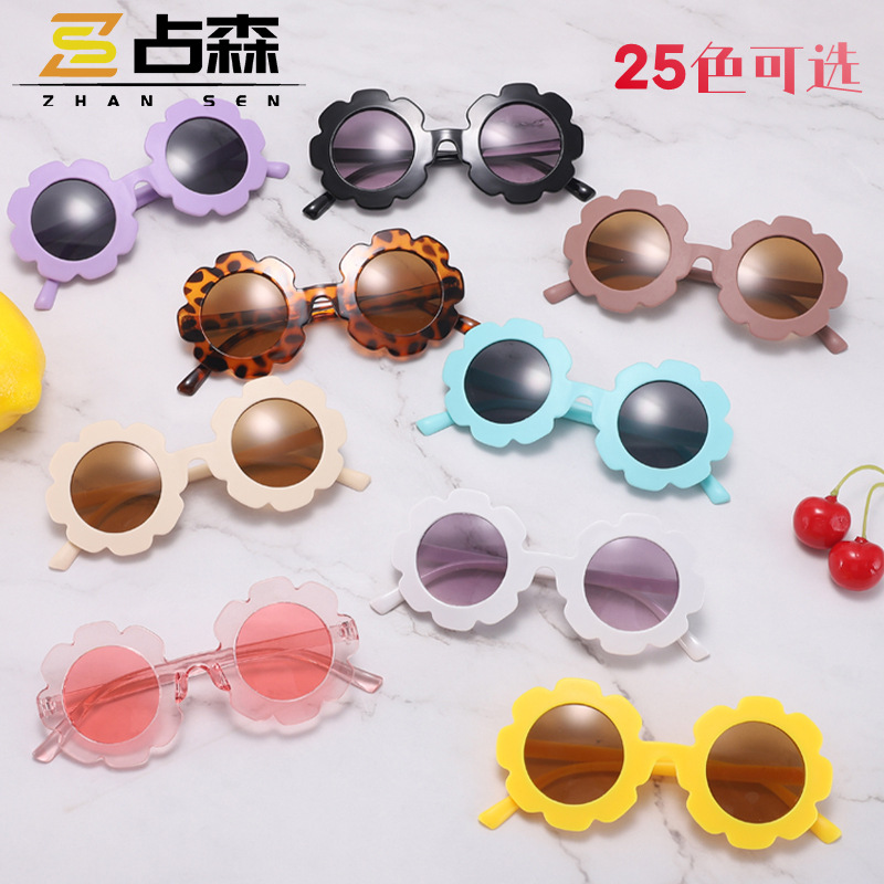 新款儿童太阳镜可爱太阳花圆框亚马逊款儿童眼镜防晒儿童墨镜批发