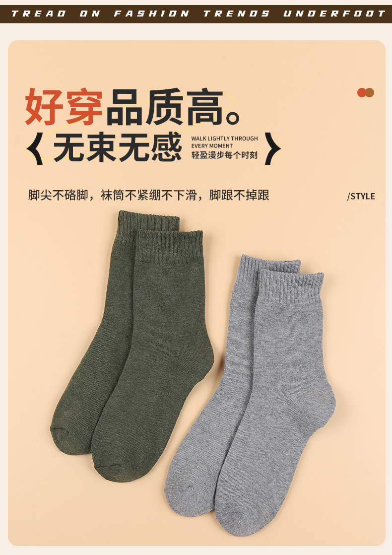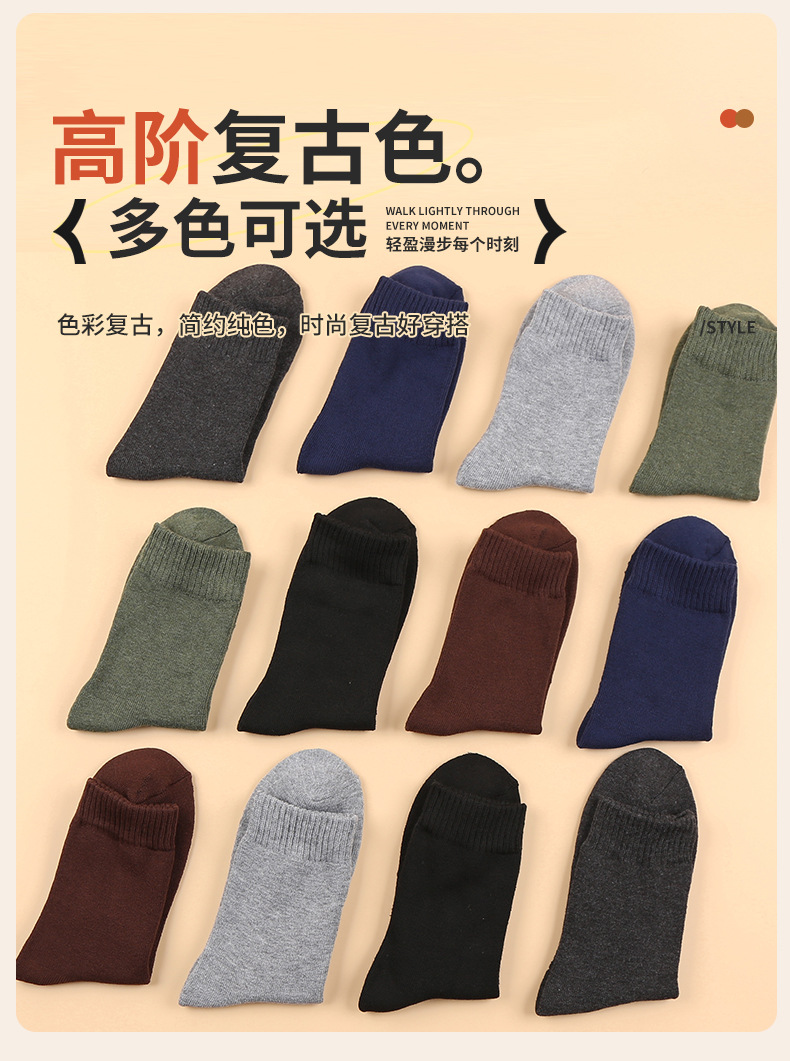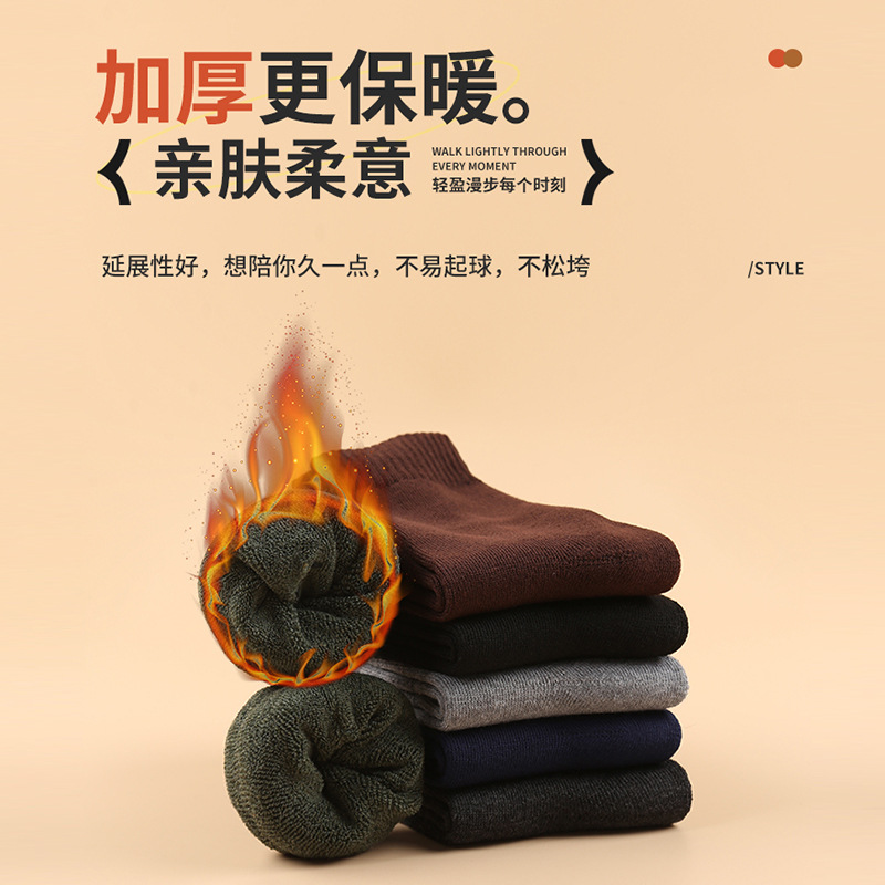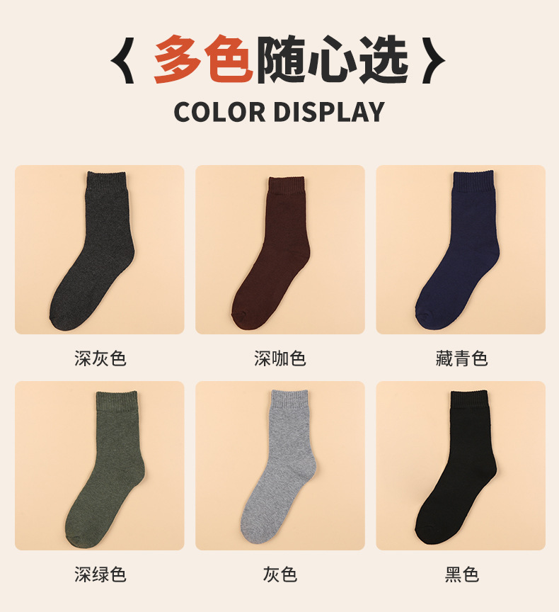 毛圈袜男中筒纯色冬季加绒加厚保暖地板袜休闲商务中筒男士毛巾袜