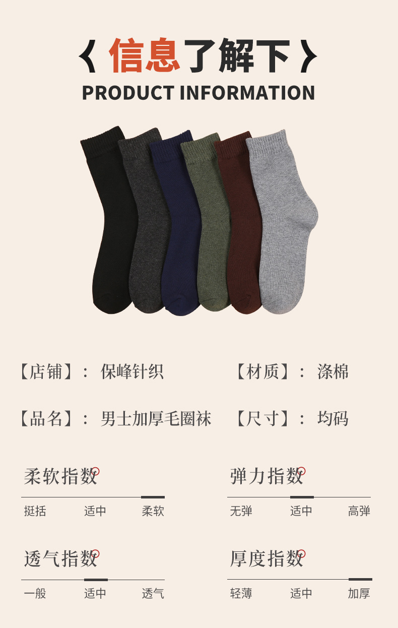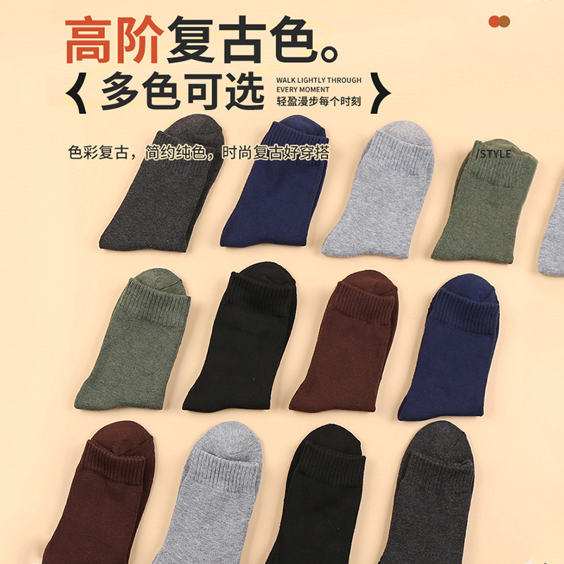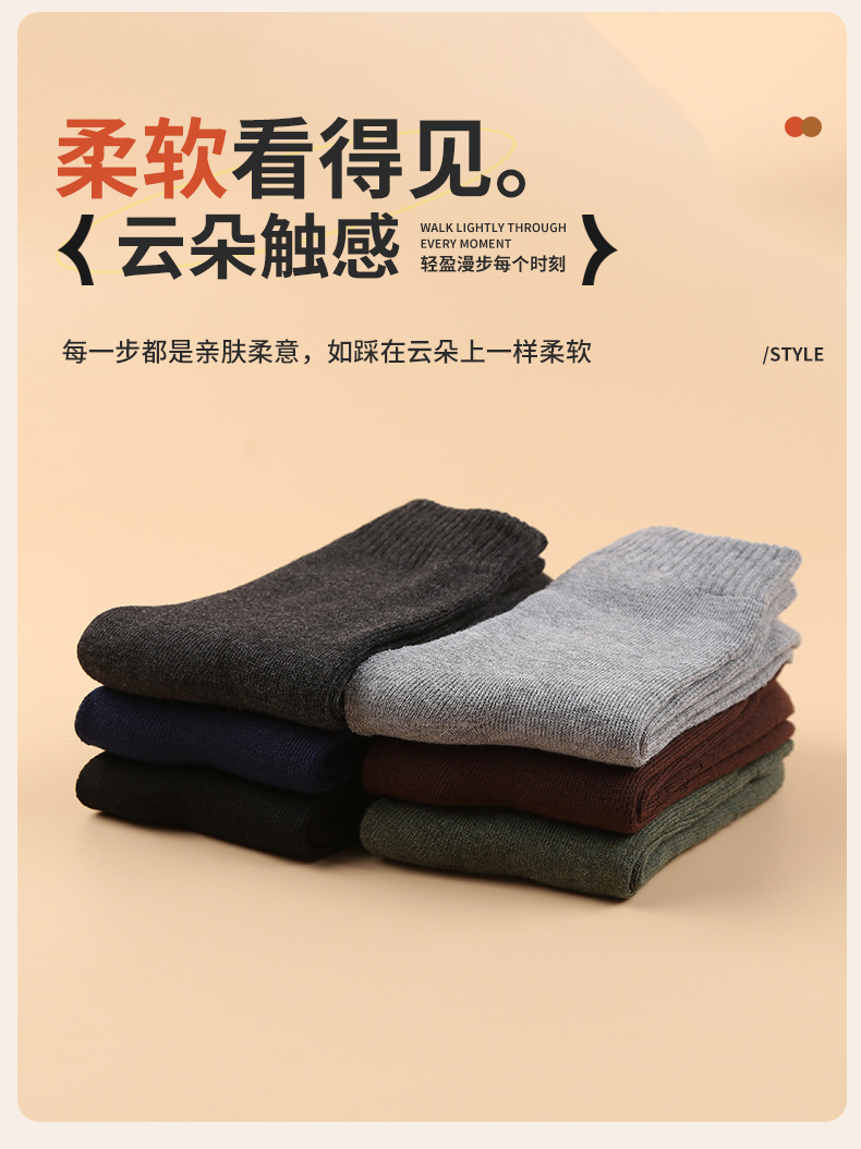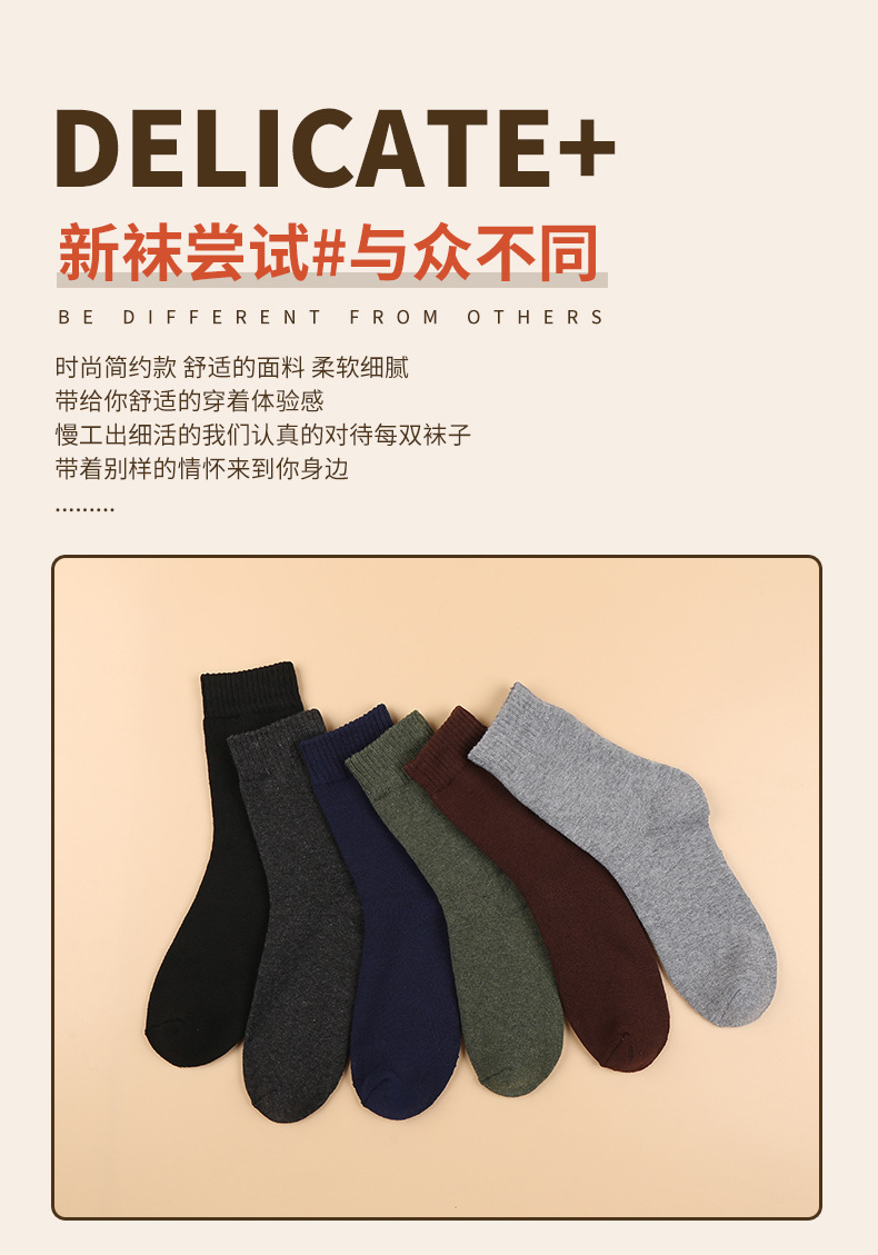毛圈袜男中筒纯色冬季加绒加厚保暖地板袜休闲商务中筒男士毛巾袜