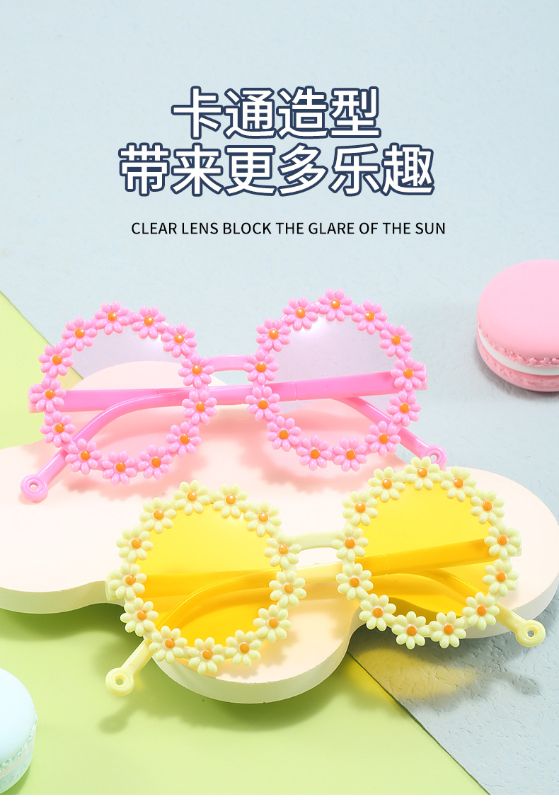 海洋片小雏菊儿童太阳镜现货多色小花朵遮阳墨镜沙滩防晒拍照眼镜