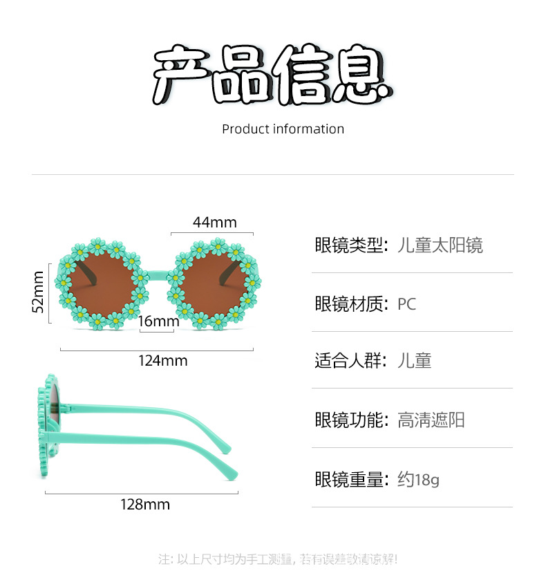 儿童太阳镜时尚新款装饰男童女童卡通眼镜 可爱小花花小雏菊墨镜