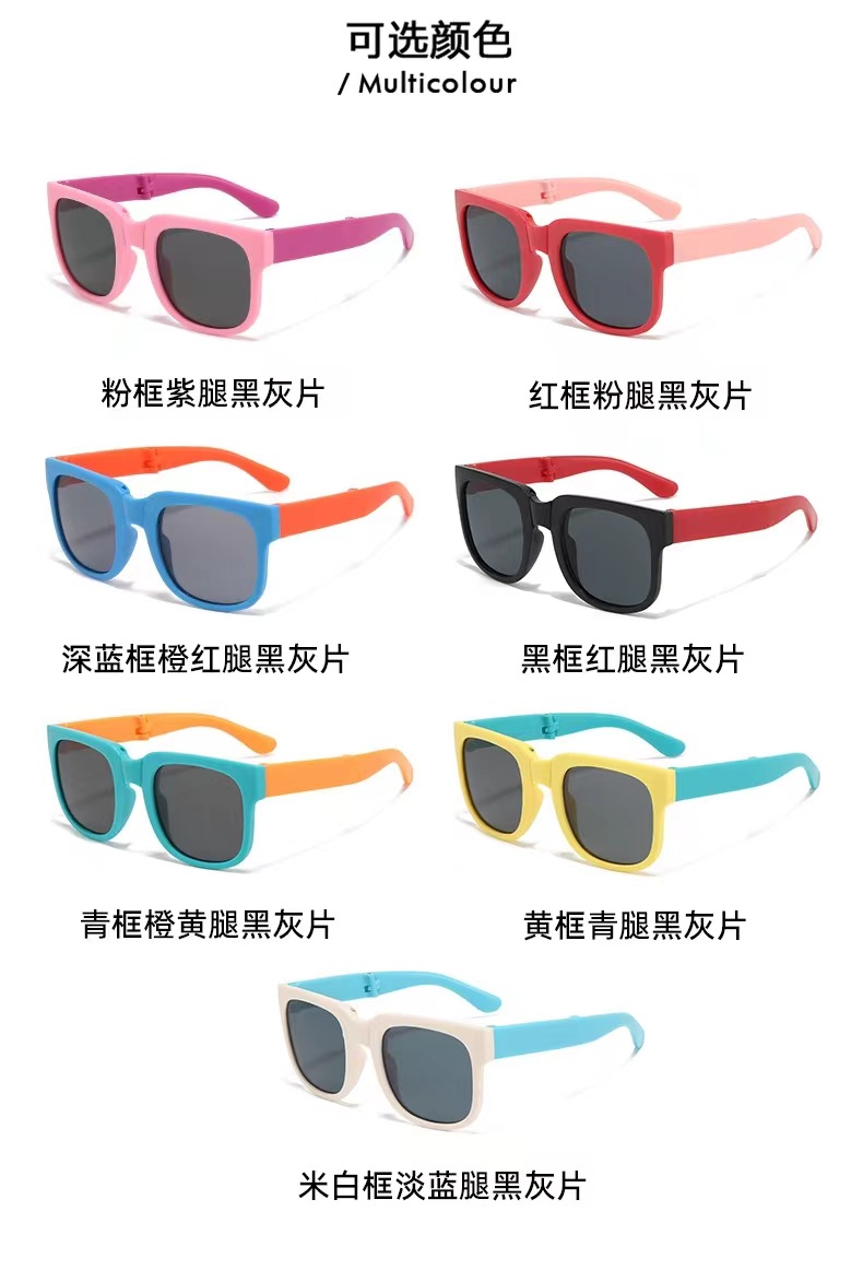 儿童折叠眼镜时尚方框拼色太阳眼镜个性潮流宝宝墨镜2139