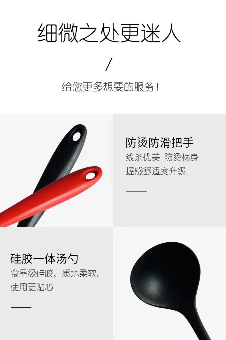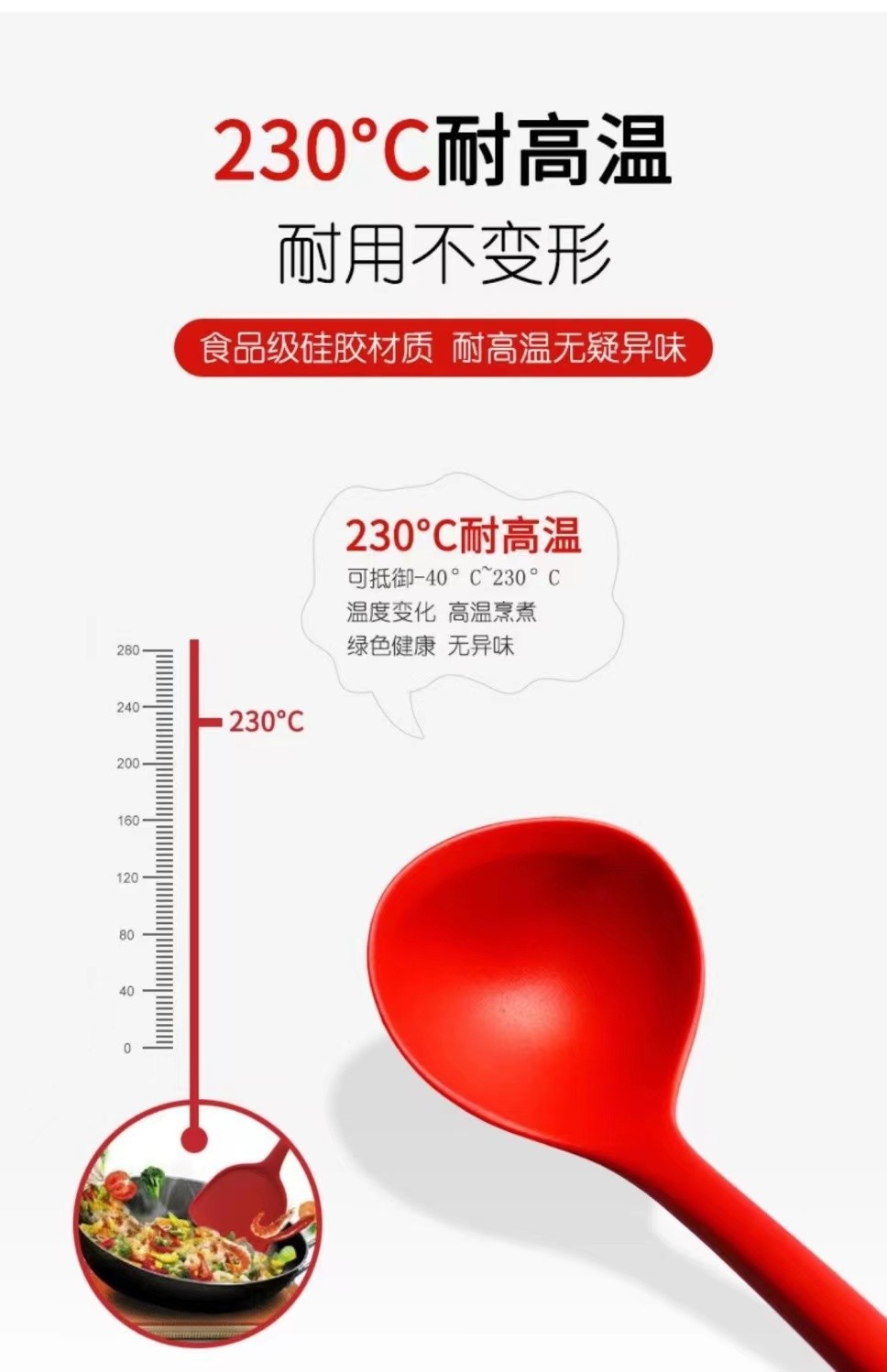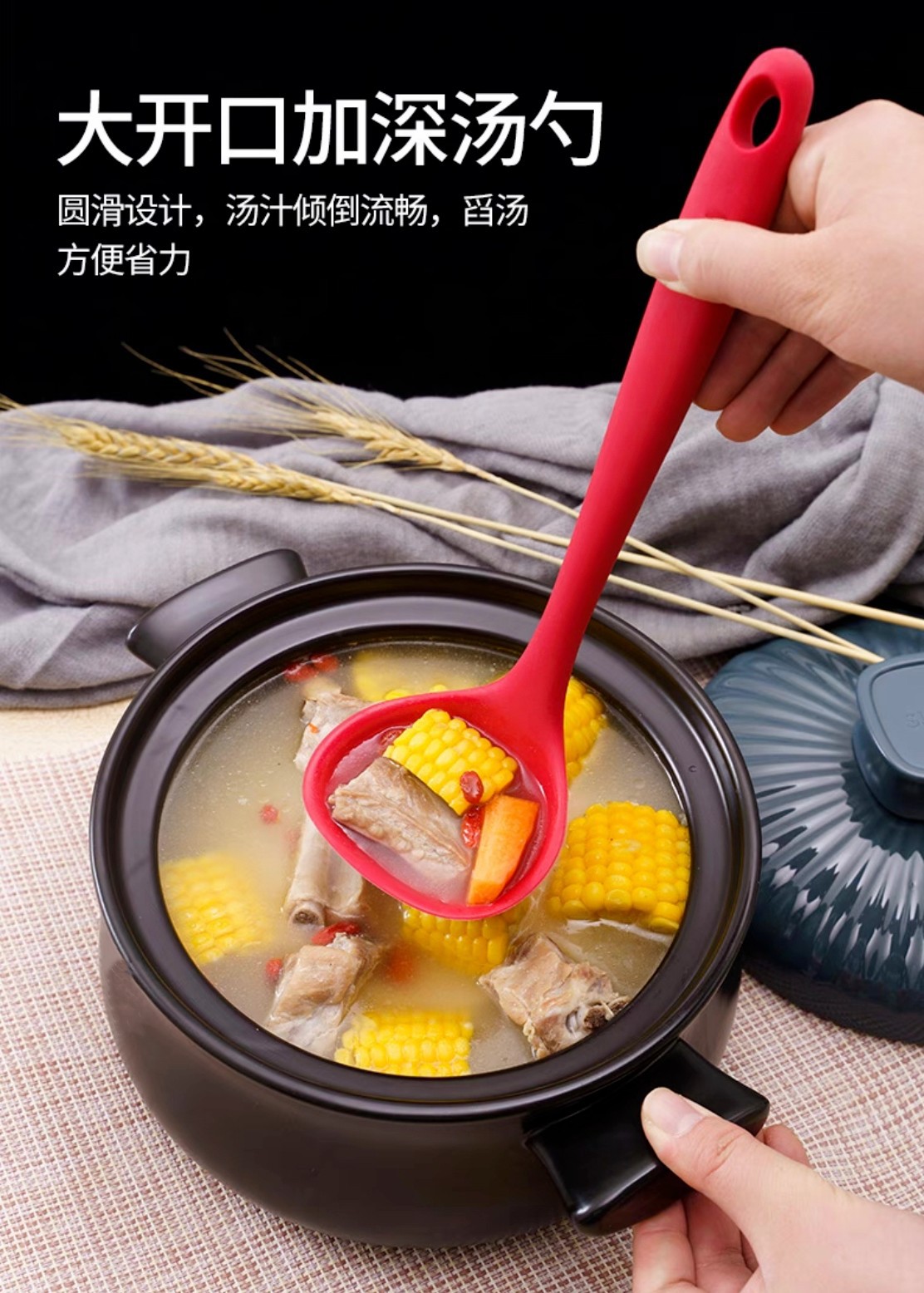 硅胶汤勺家用食品级硅胶勺子厨房不粘锅专用大号加厚长柄盛汤粥勺