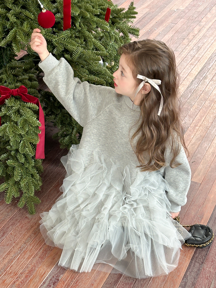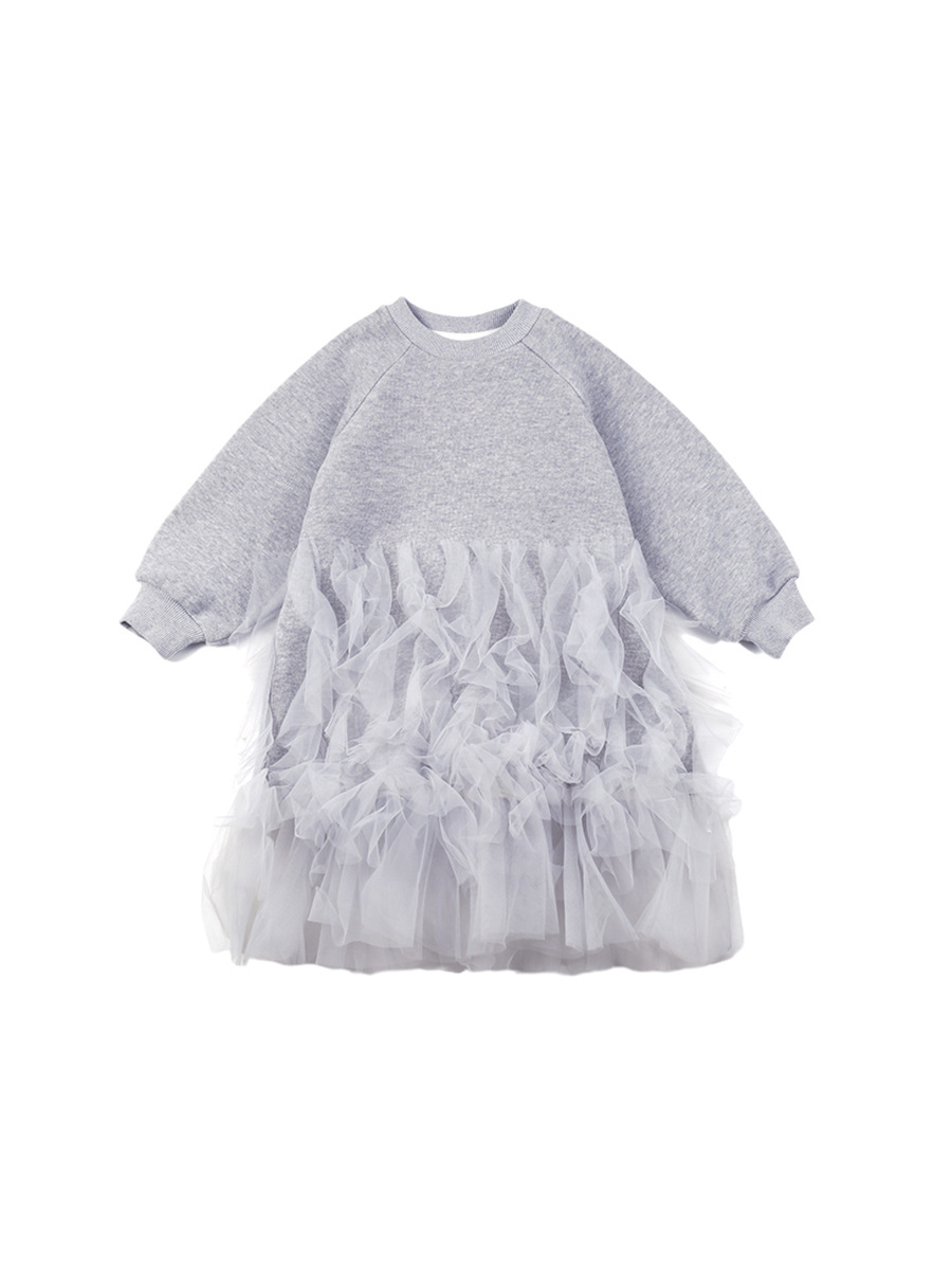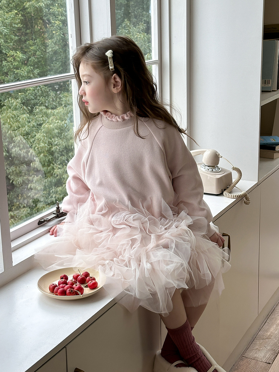 【加绒】中大小女童洋气卫衣裙儿童公主裙子小仙女拼接网纱连衣裙