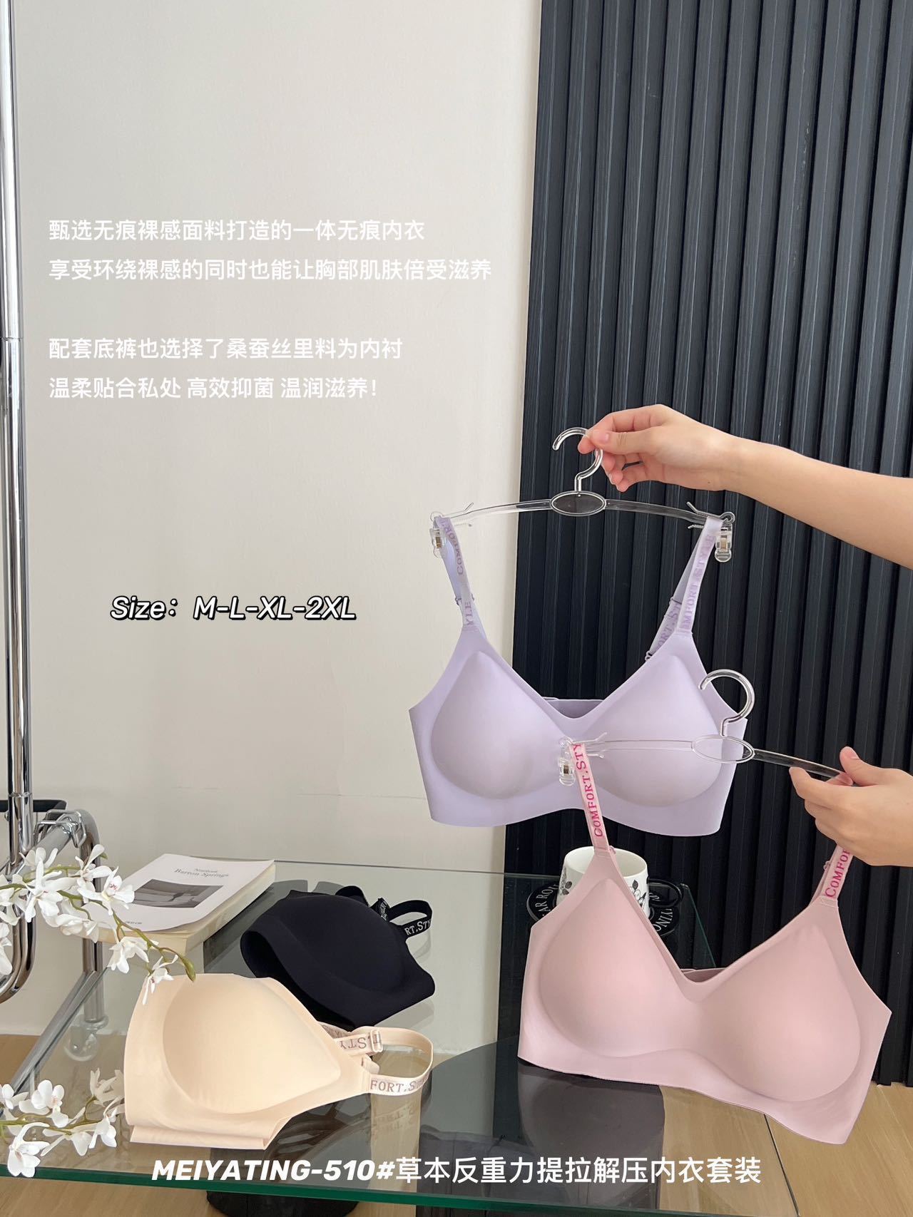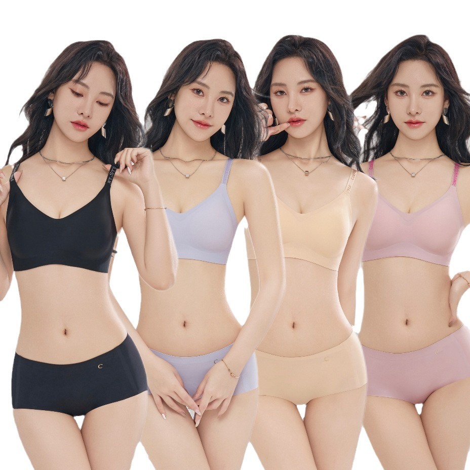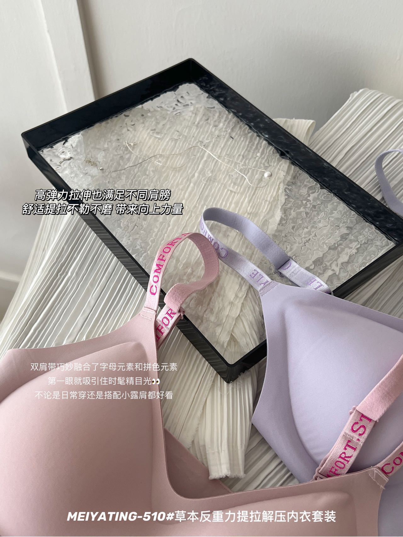 阿诗蜜草本系列无痕内衣女果冻条小胸聚拢反重力提拉字母肩带套装