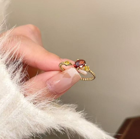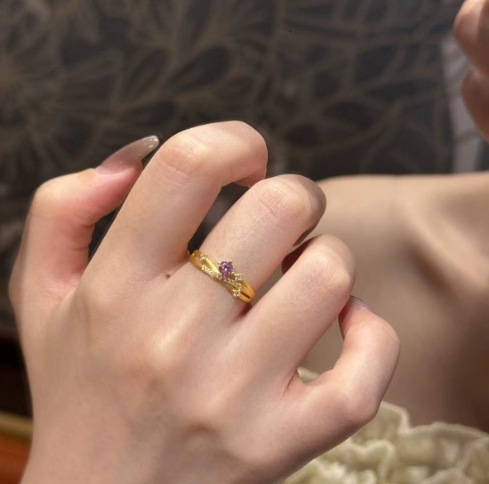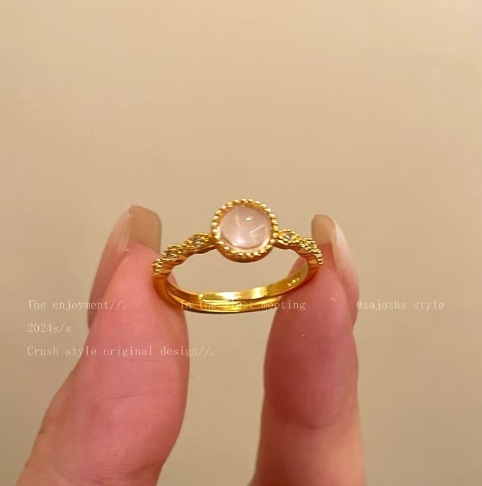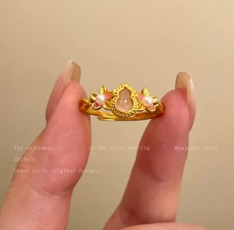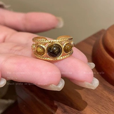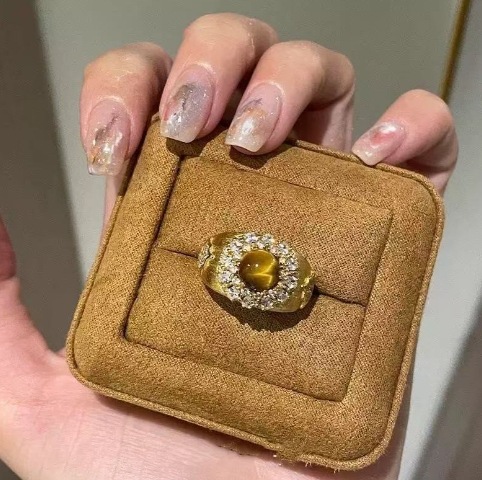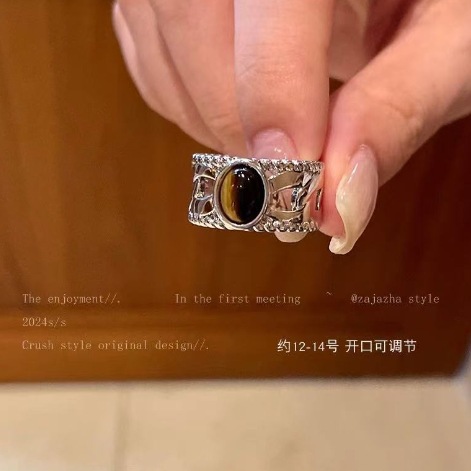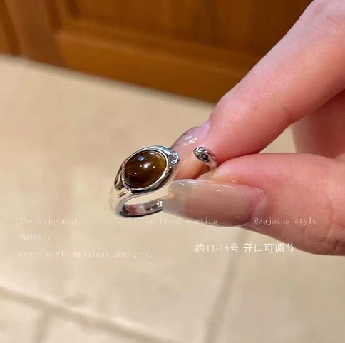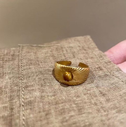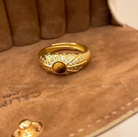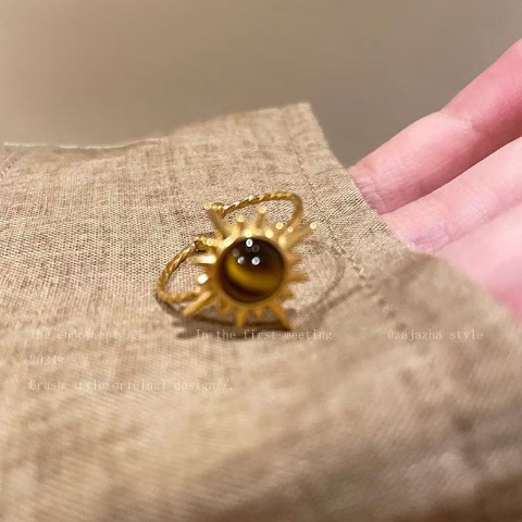 金色太阳花虎眼石戒指2024新款高级感气质小众简约独特百搭戒指