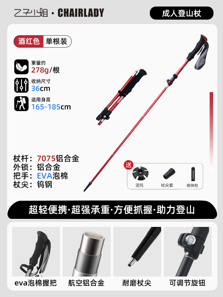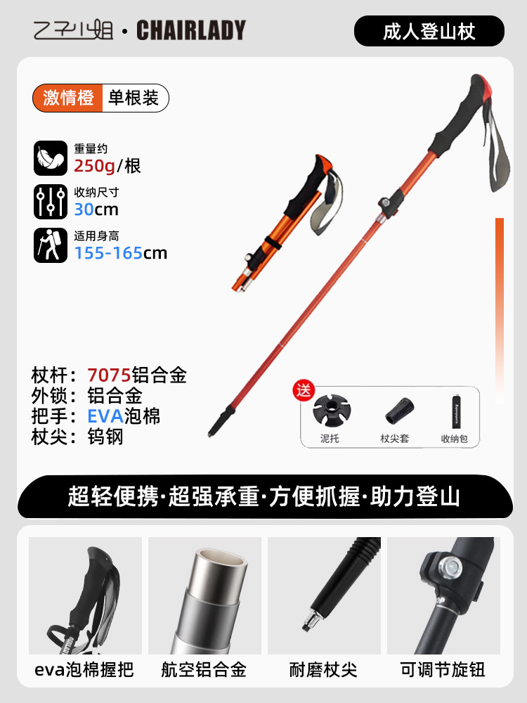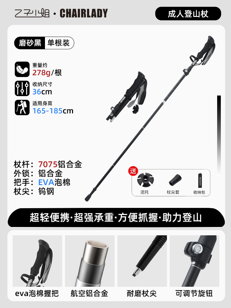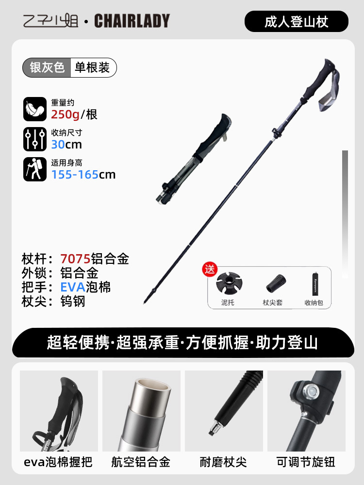 7075铝合金户外伸缩登山杖超轻拐杖碳素折叠手杖专业徒步装备用品