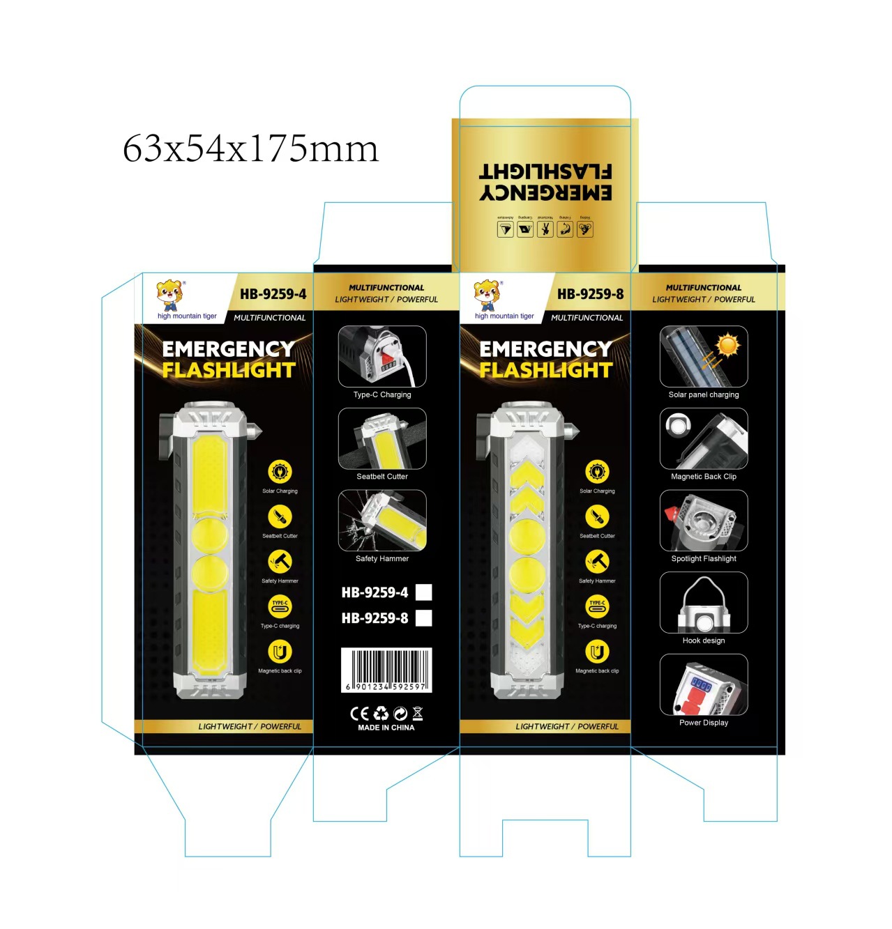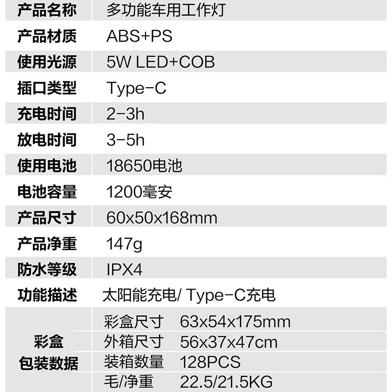 新款COB多功能汽修工作灯强光手电筒充电便携安全锤手电筒长续航