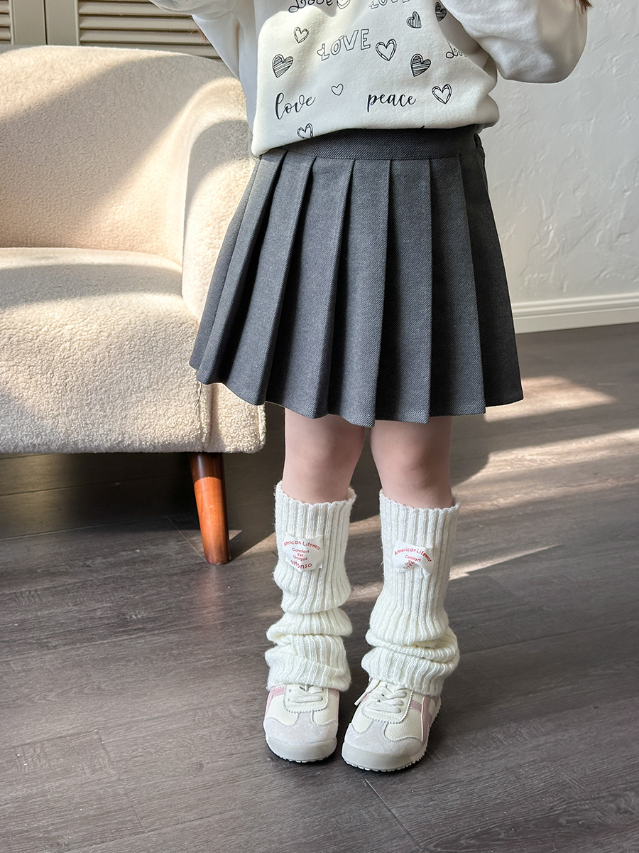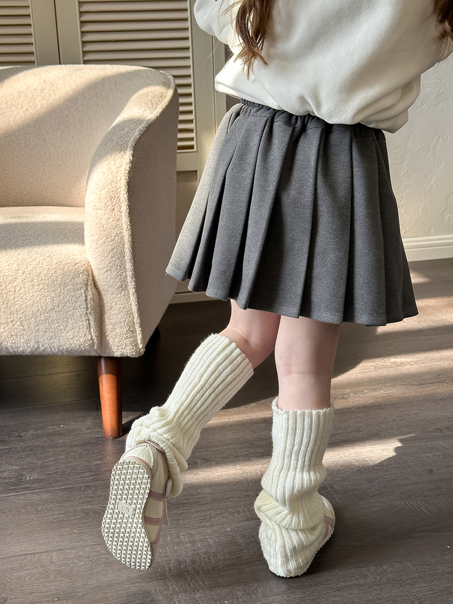 艾摩贝贝儿童百褶裙2024冬款女童宝宝韩版洋气百搭加厚毛呢半身裙