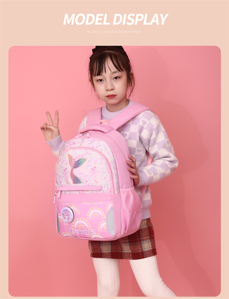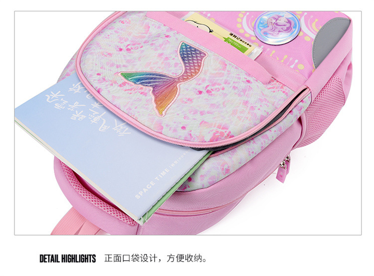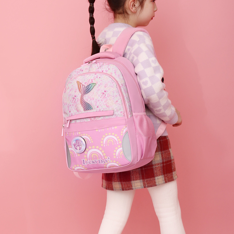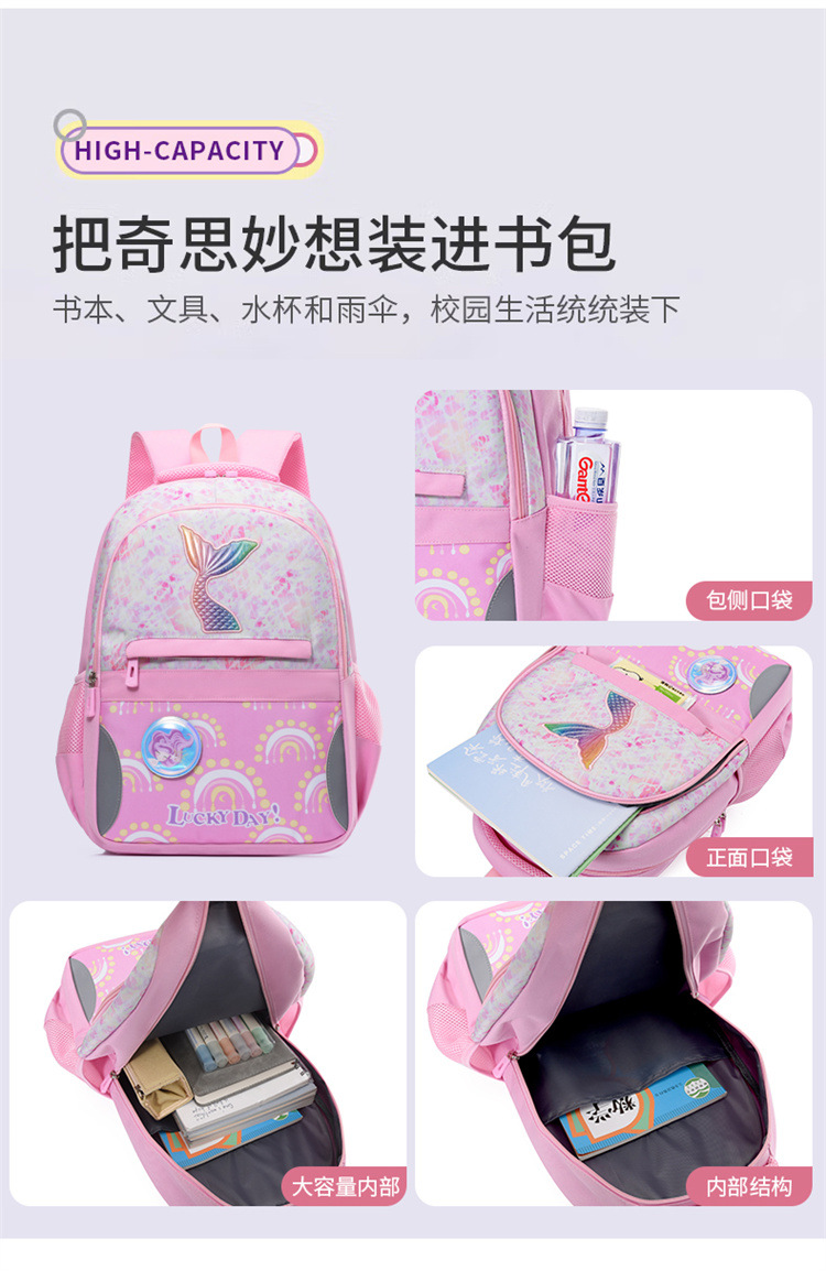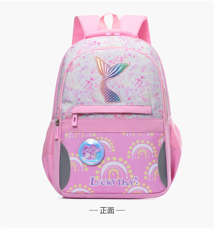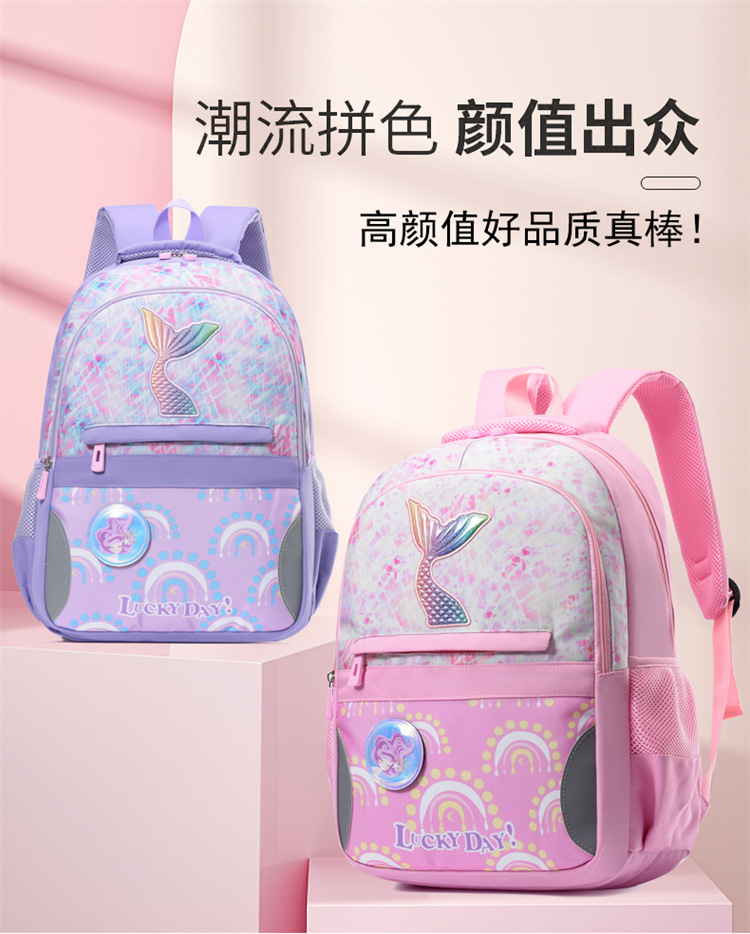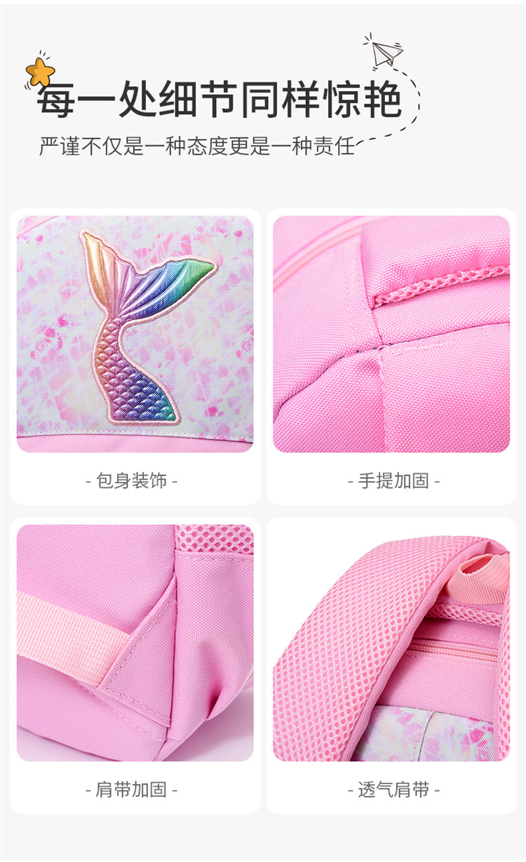 新款小学生可爱美人鱼女孩书包粉嫩公主轻便大容量拼接护脊双肩包