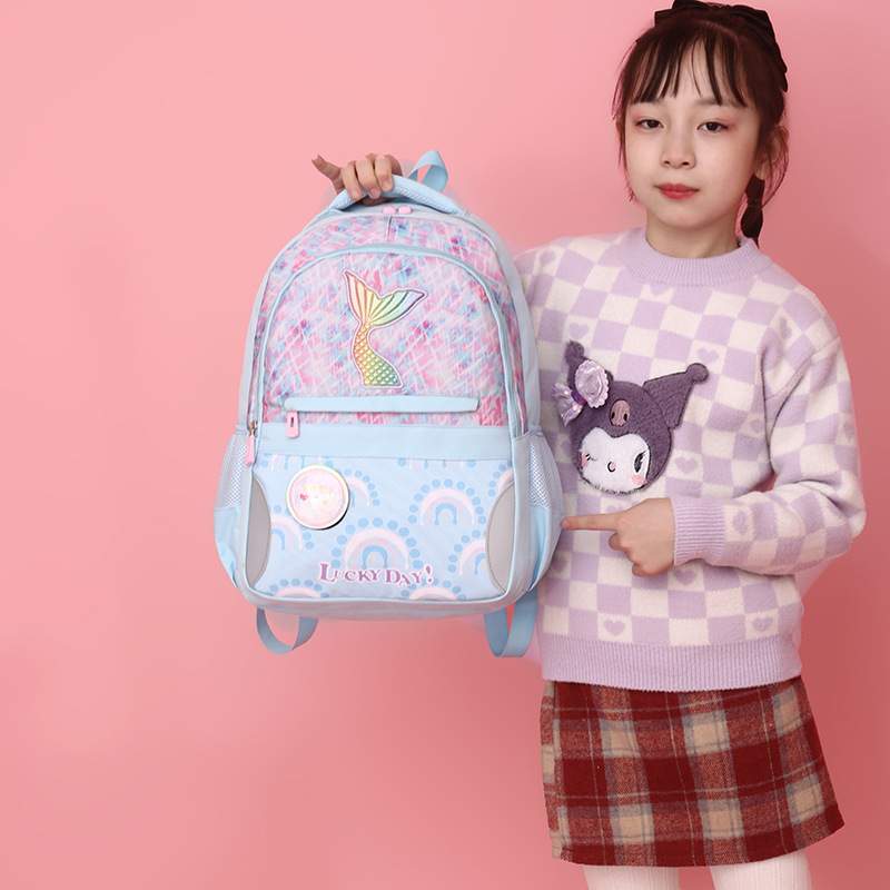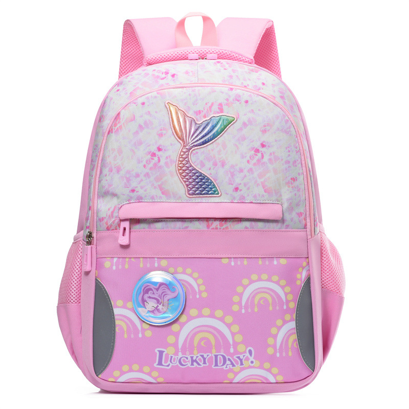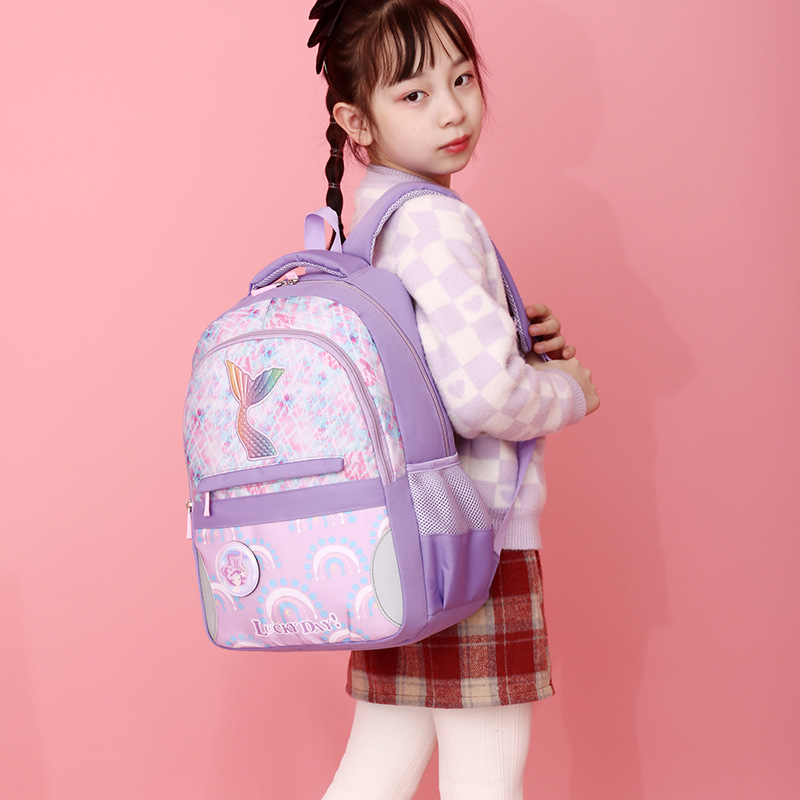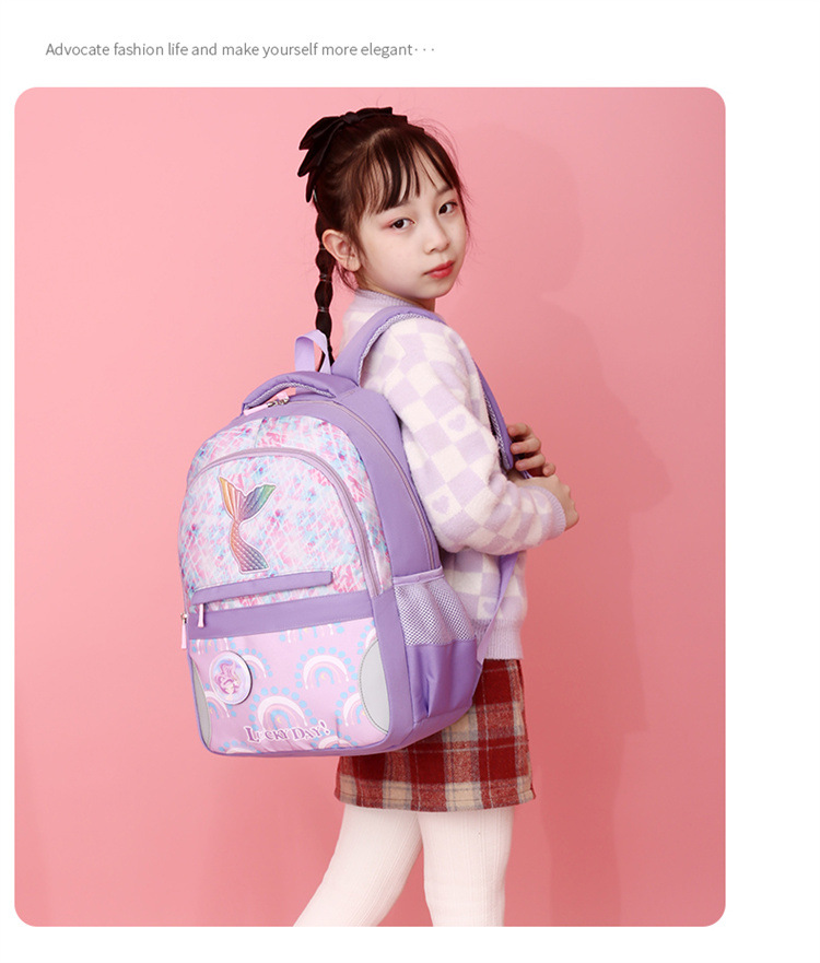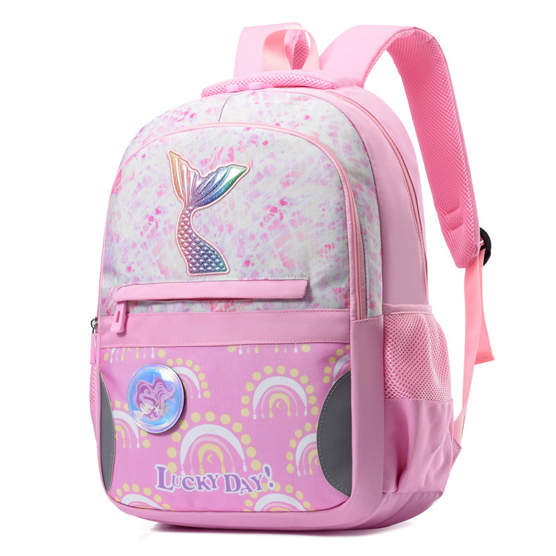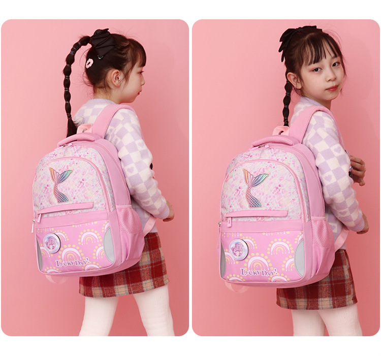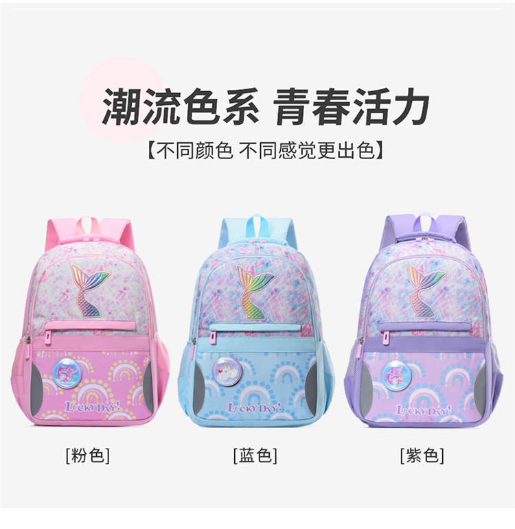 新款小学生可爱美人鱼女孩书包粉嫩公主轻便大容量拼接护脊双肩包