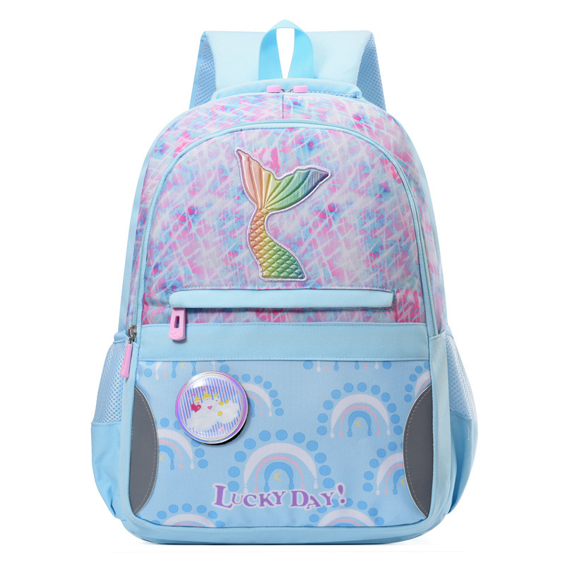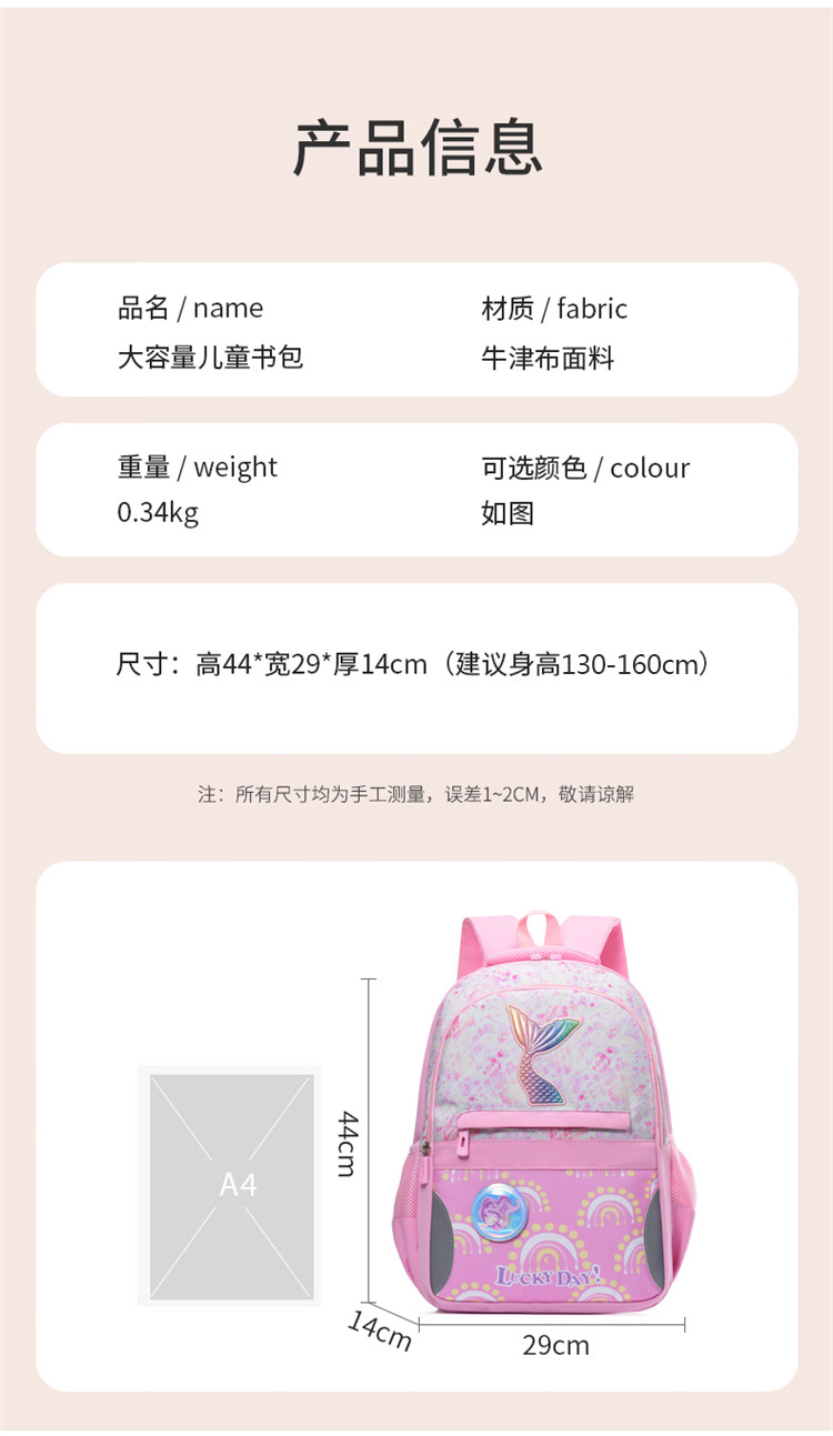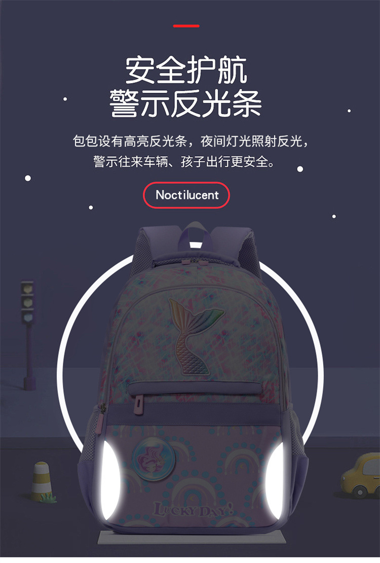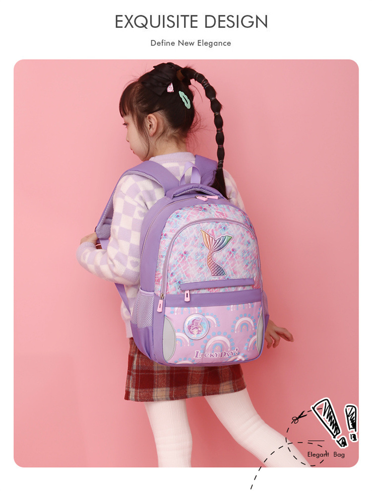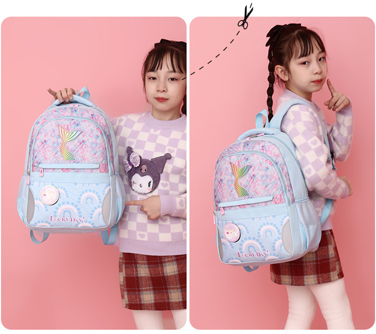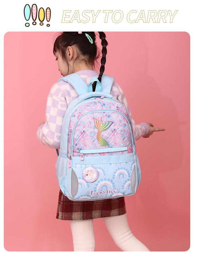 新款小学生可爱美人鱼女孩书包粉嫩公主轻便大容量拼接护脊双肩包
