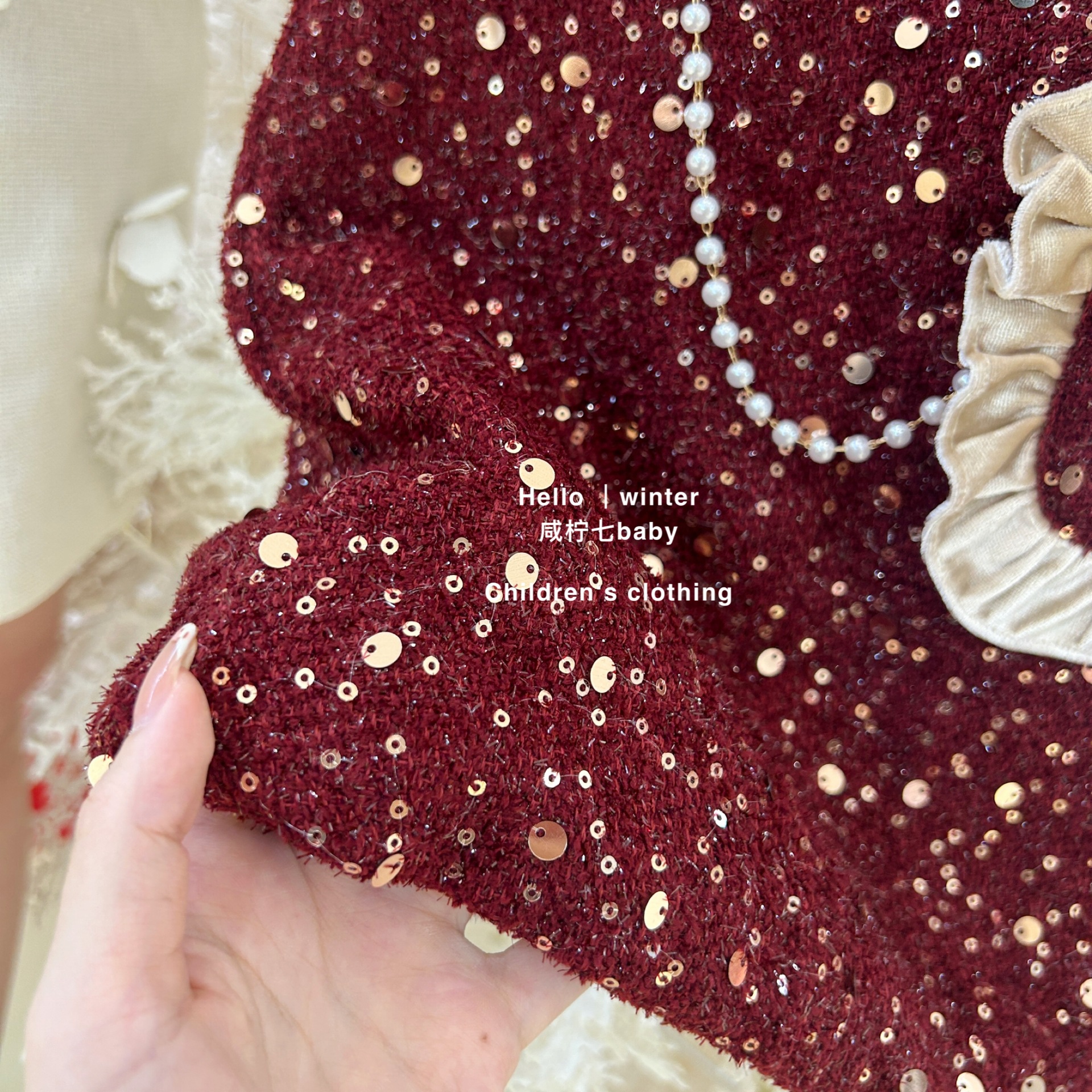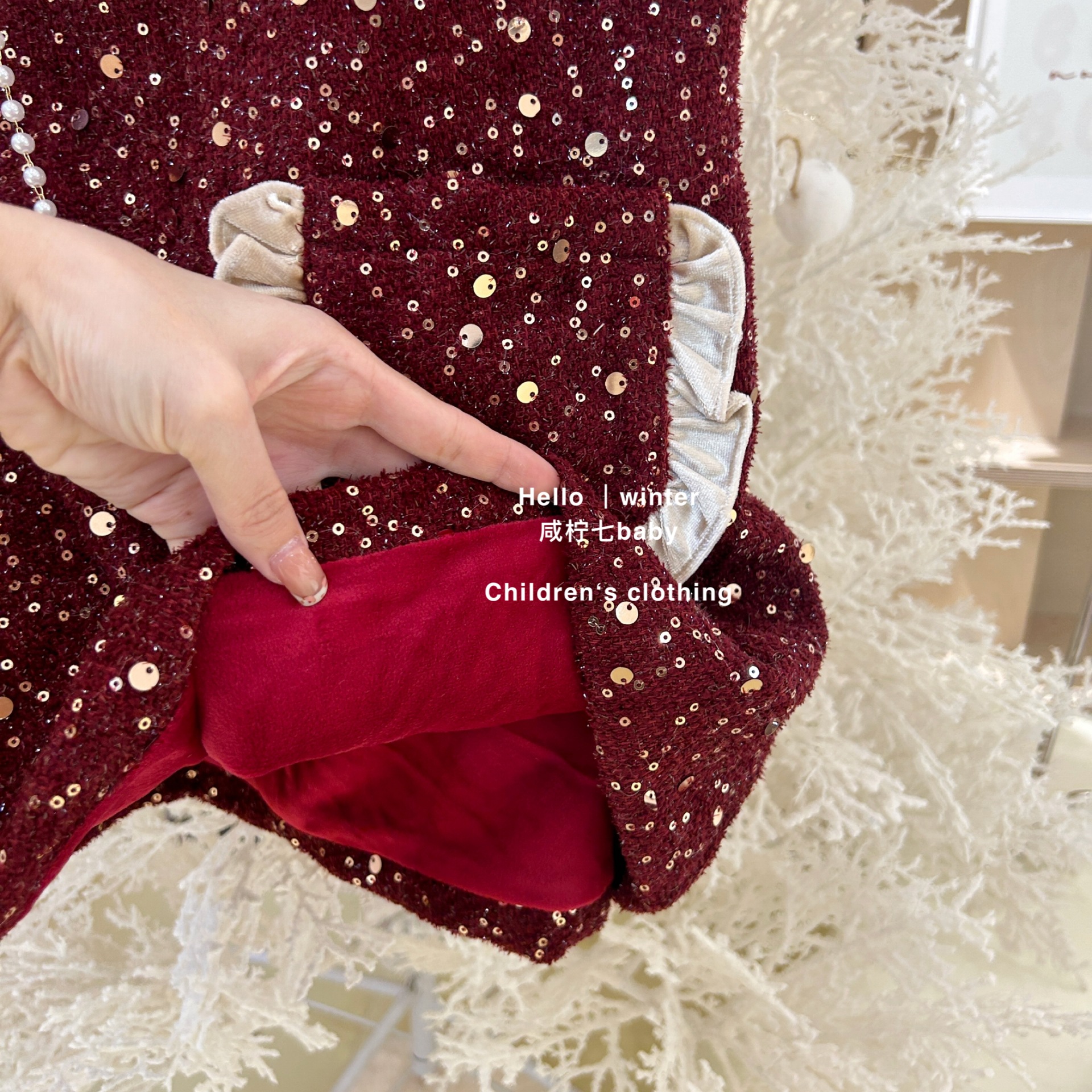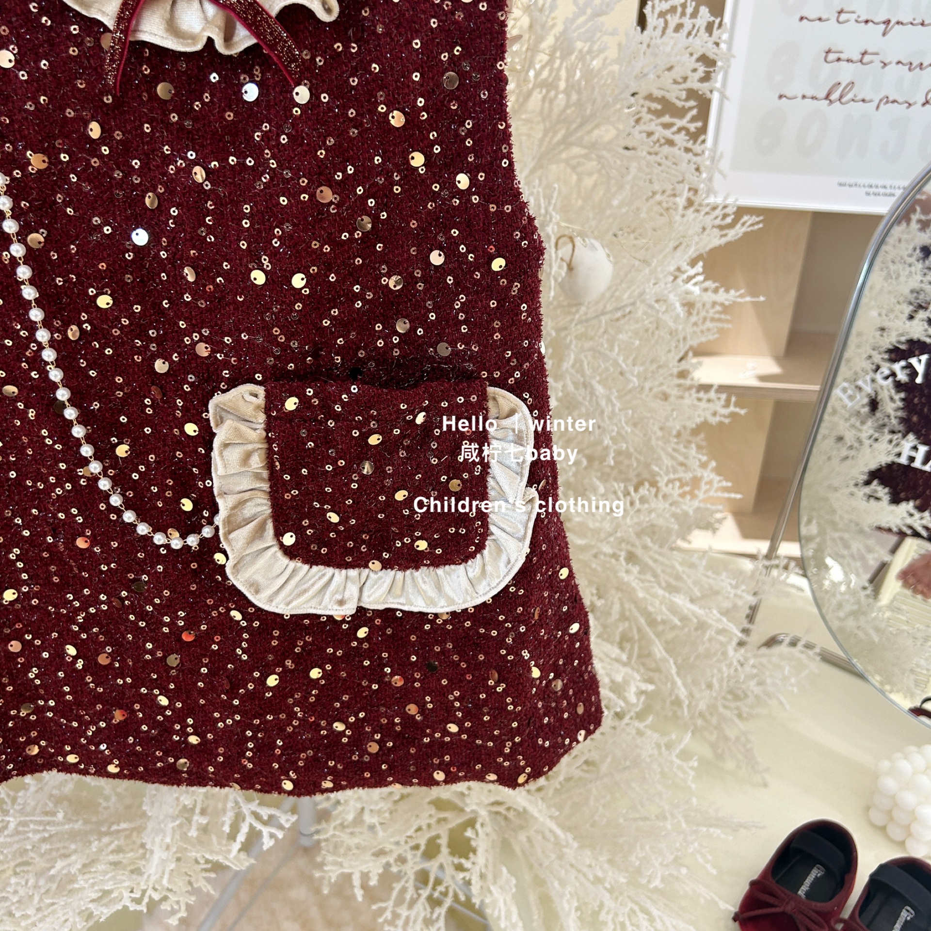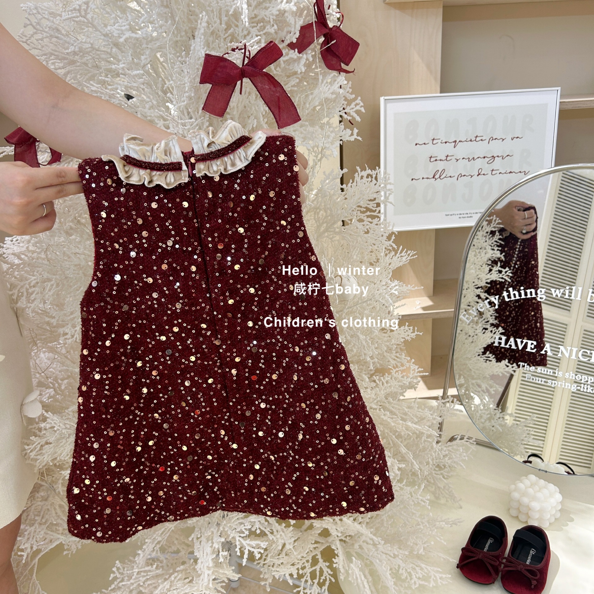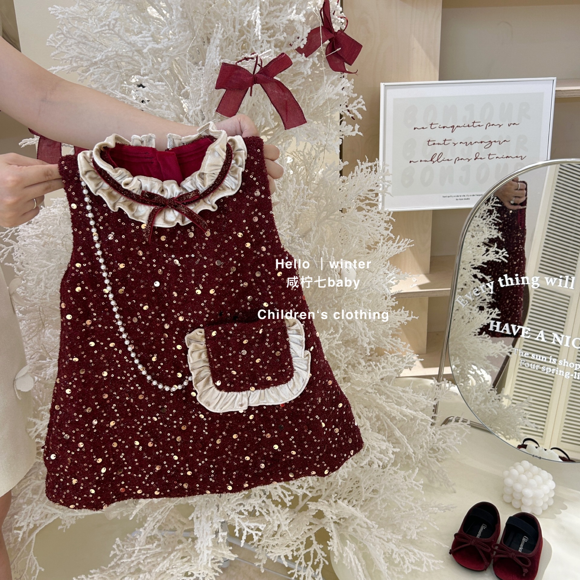 咸柠七女童加绒背心裙2024新款周岁礼服小童女宝宝洋气公主裙冬装