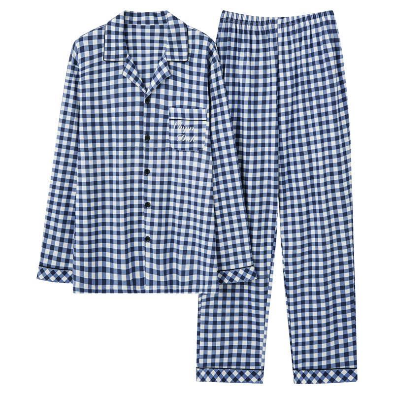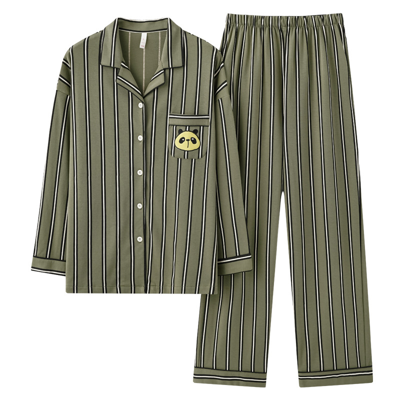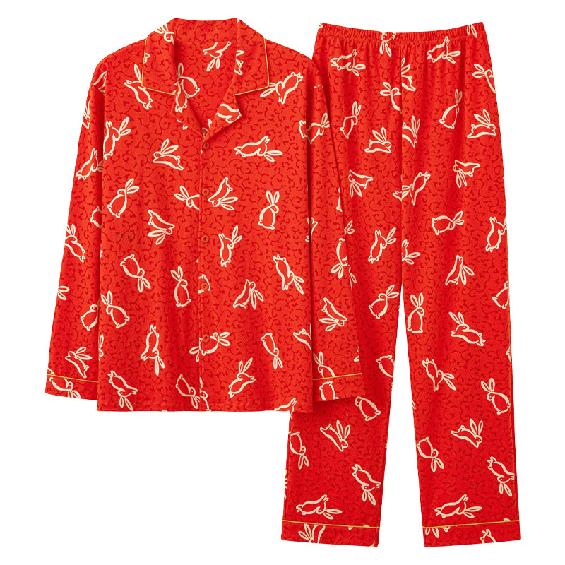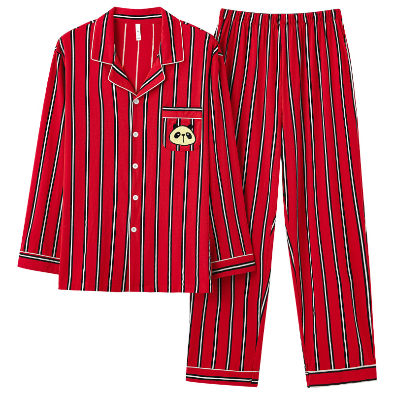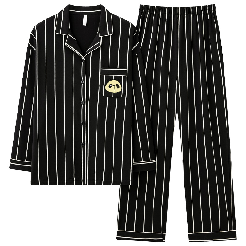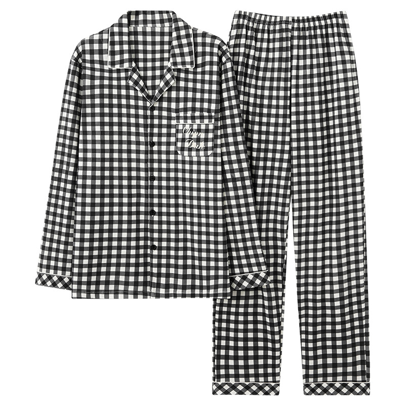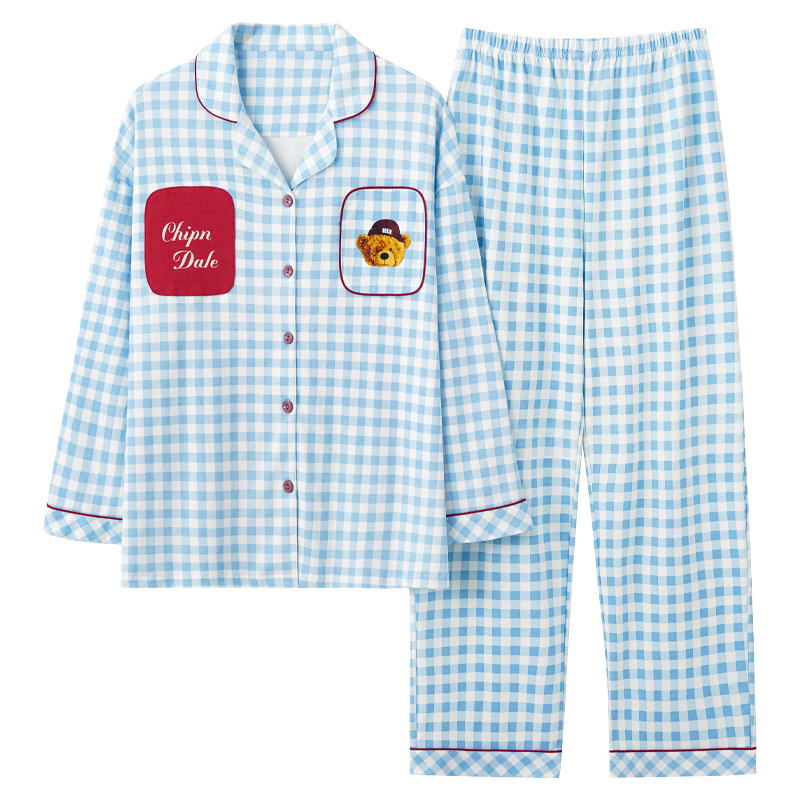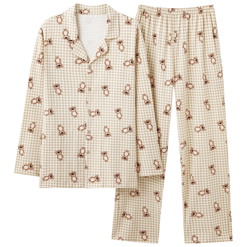 春秋季纯棉拉架棉情侣睡衣女士长袖男款家居服