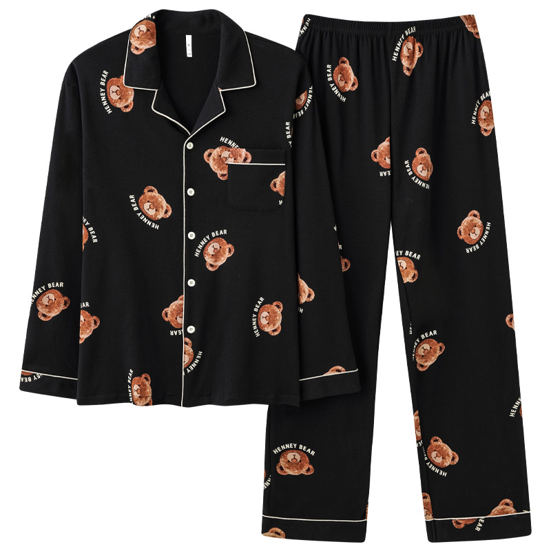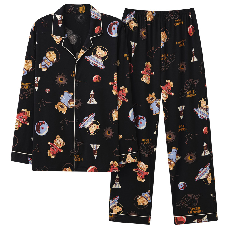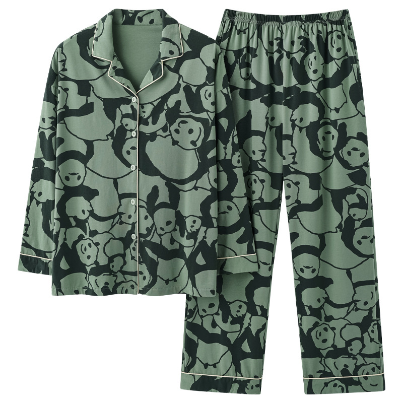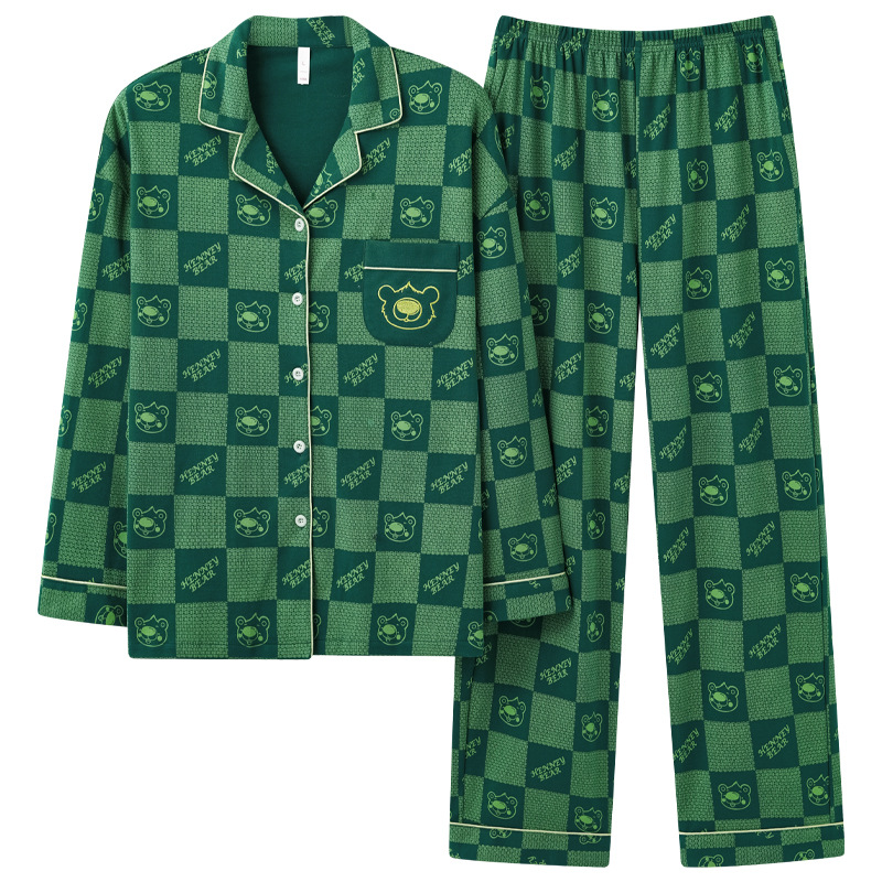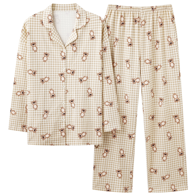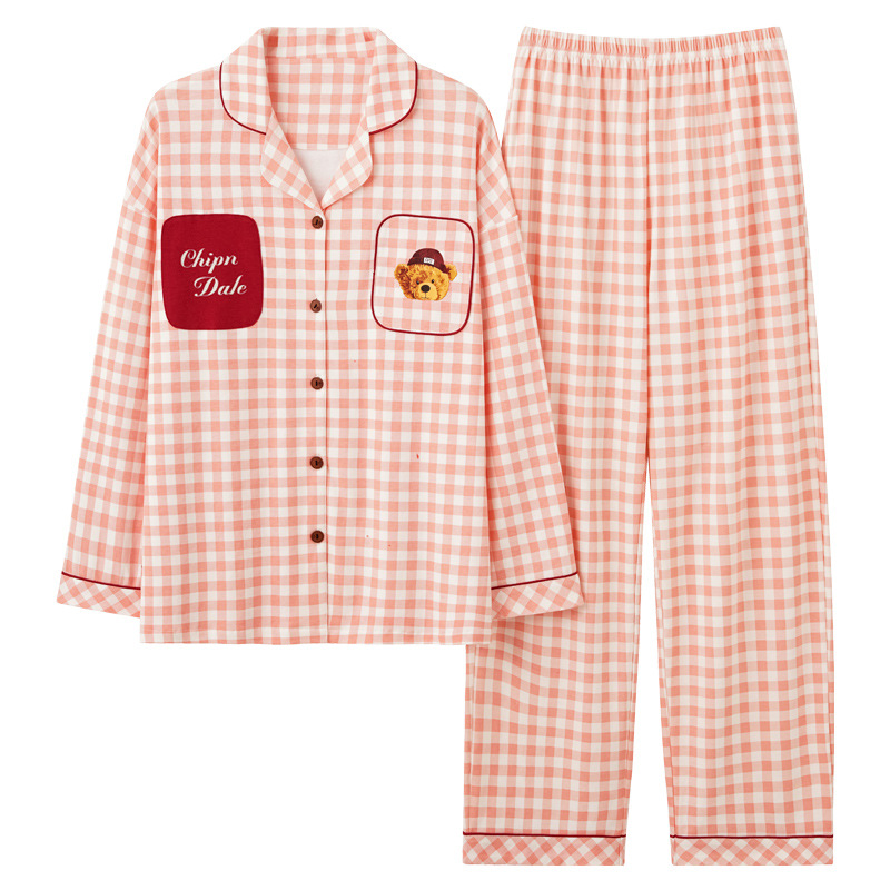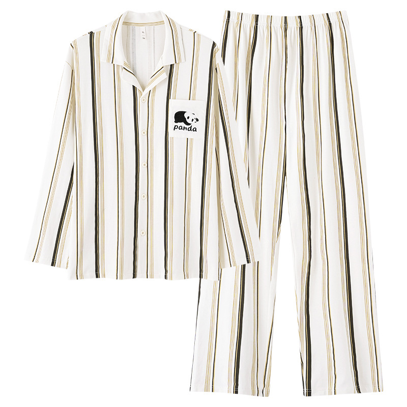 春秋季纯棉拉架棉情侣睡衣女士长袖男款家居服