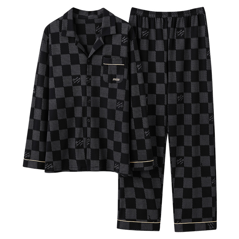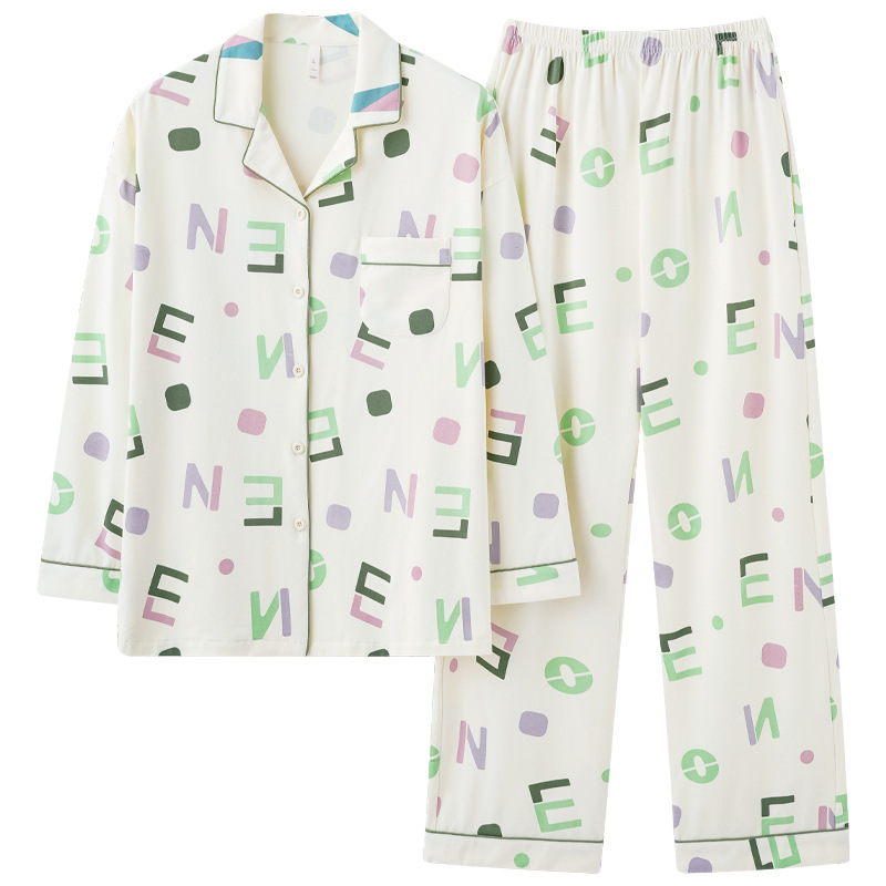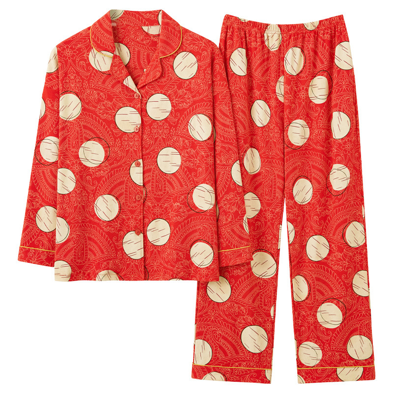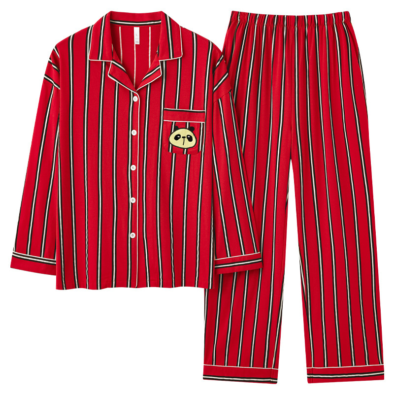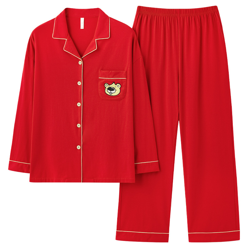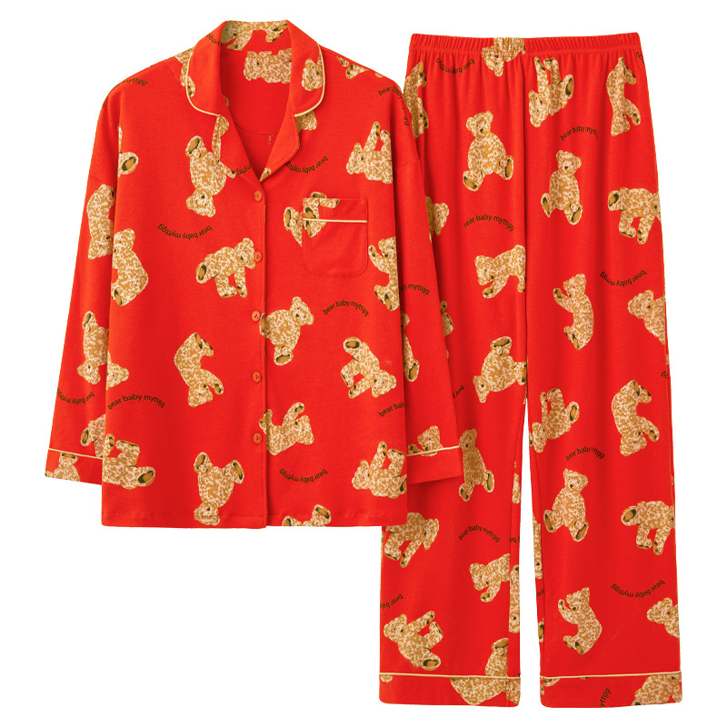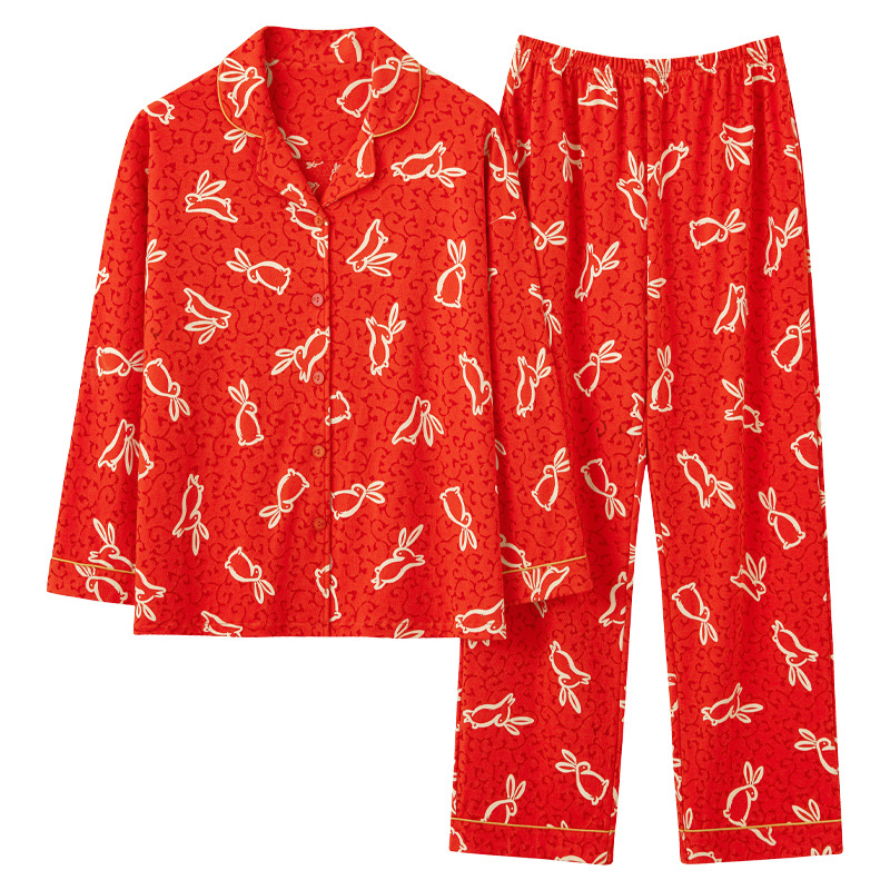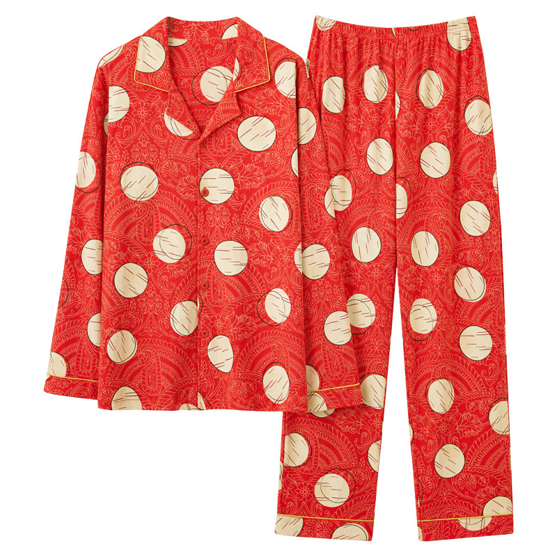 春秋季纯棉拉架棉情侣睡衣女士长袖男款家居服