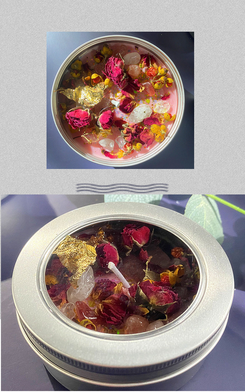 跨境水晶石干花香薰蜡烛彩色造型香氛礼物开窗盖新年蜡烛礼盒