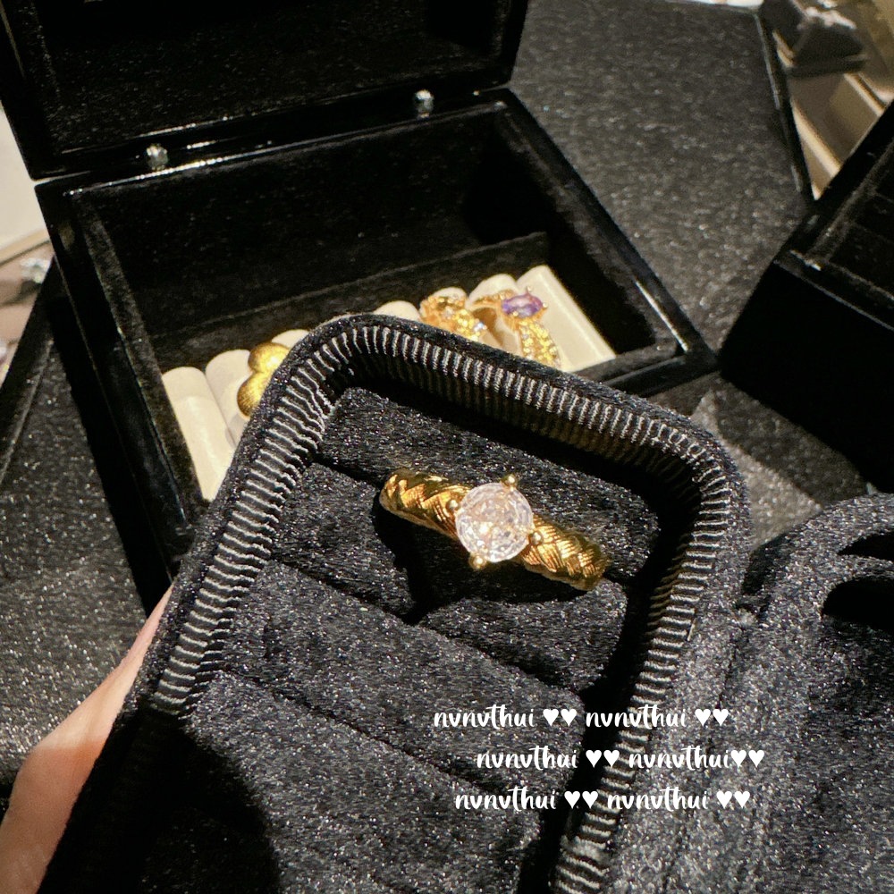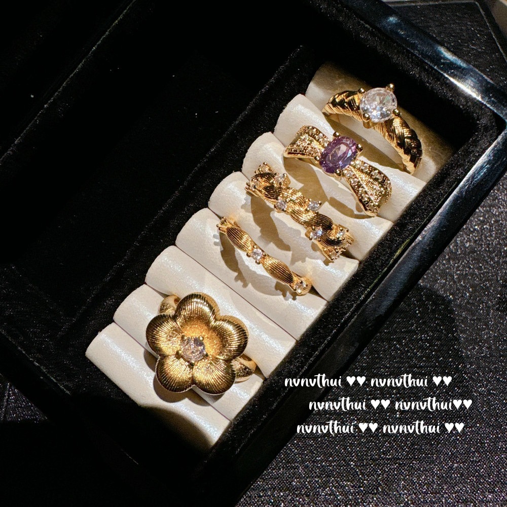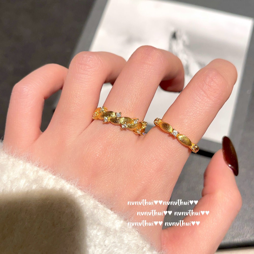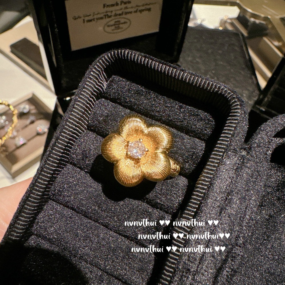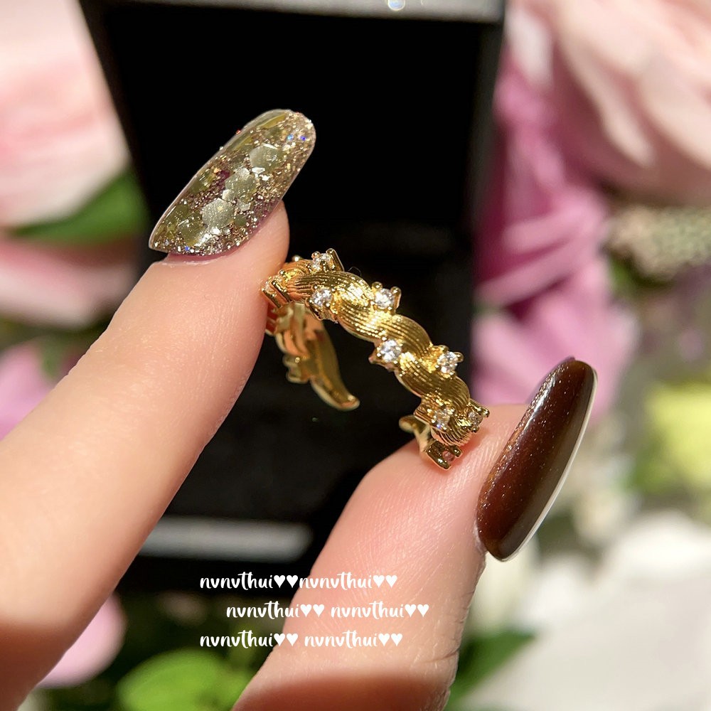 意大利复古拉丝荆棘藤蔓宝石戒指 Vintage镀18K金 拉丝小花朵戒指