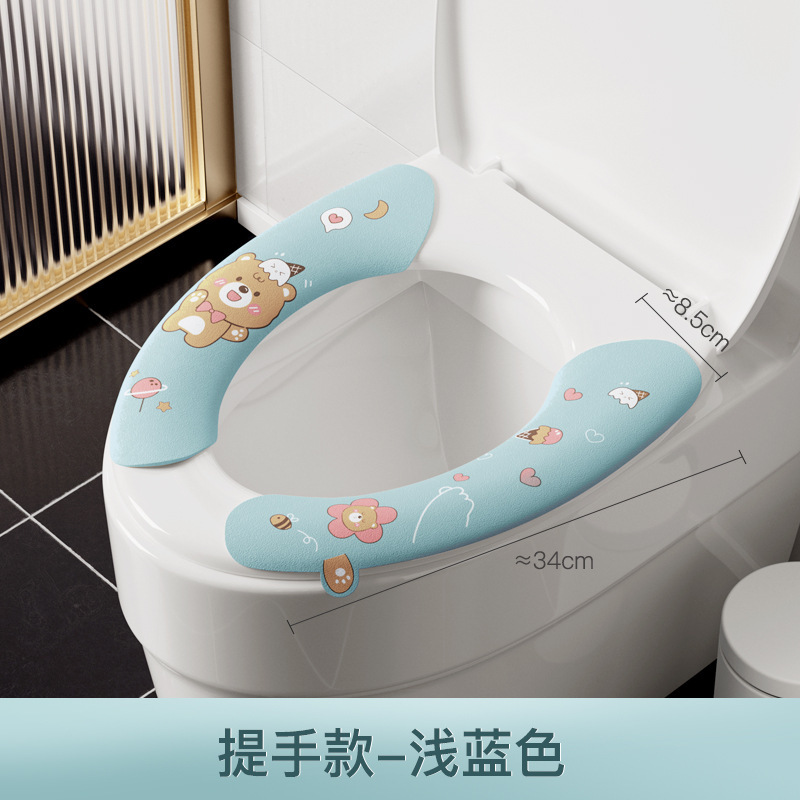 卡通提手马桶贴四季通用水洗静电吸附坐便贴家用粘贴式保暖马桶垫