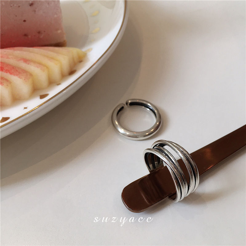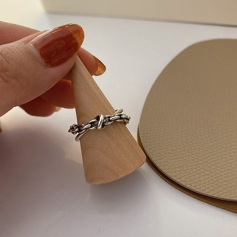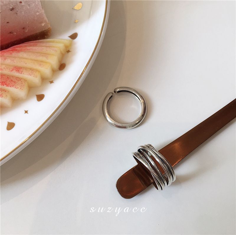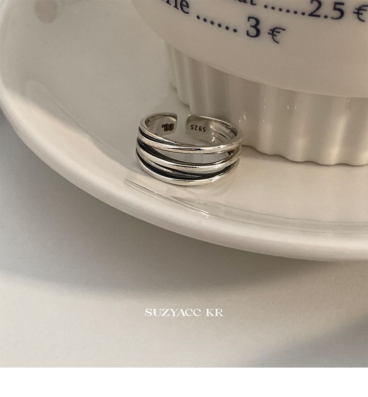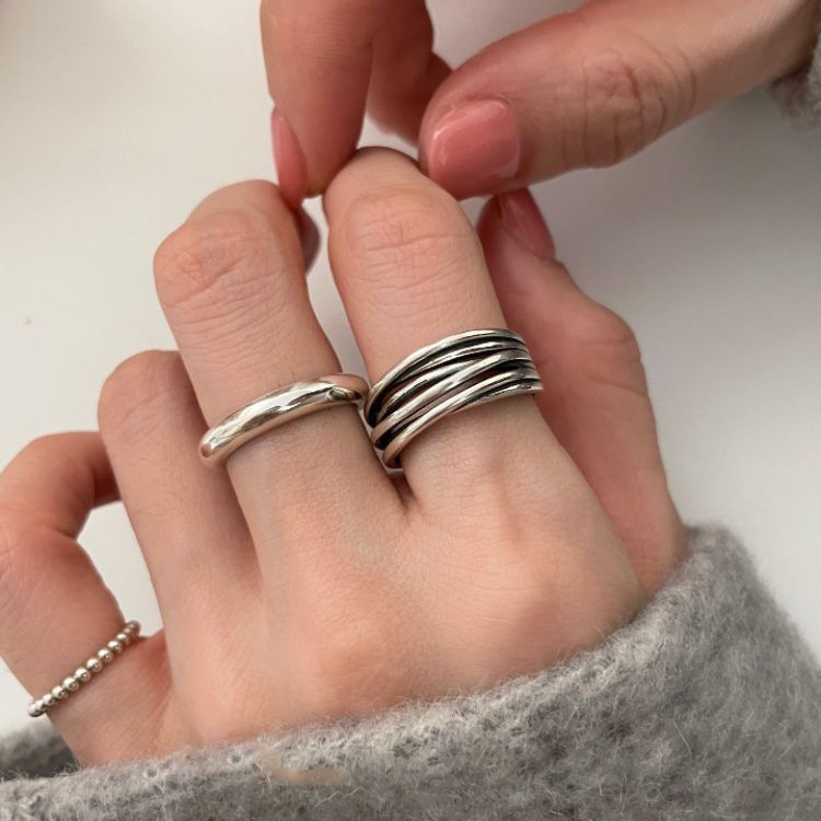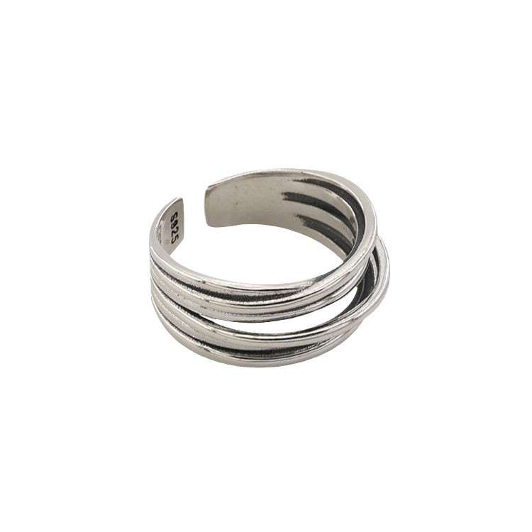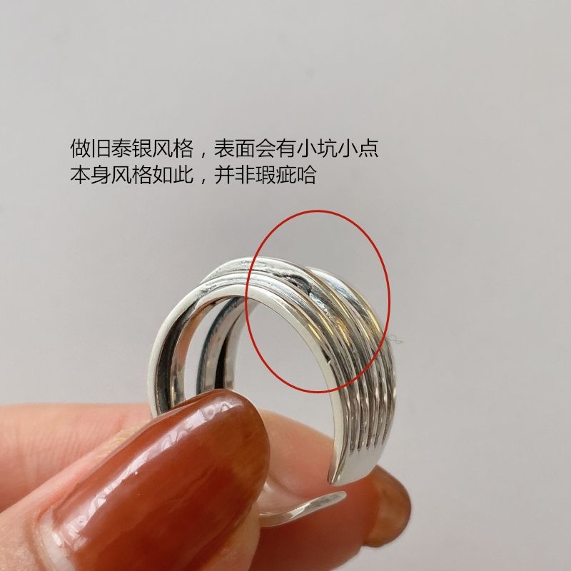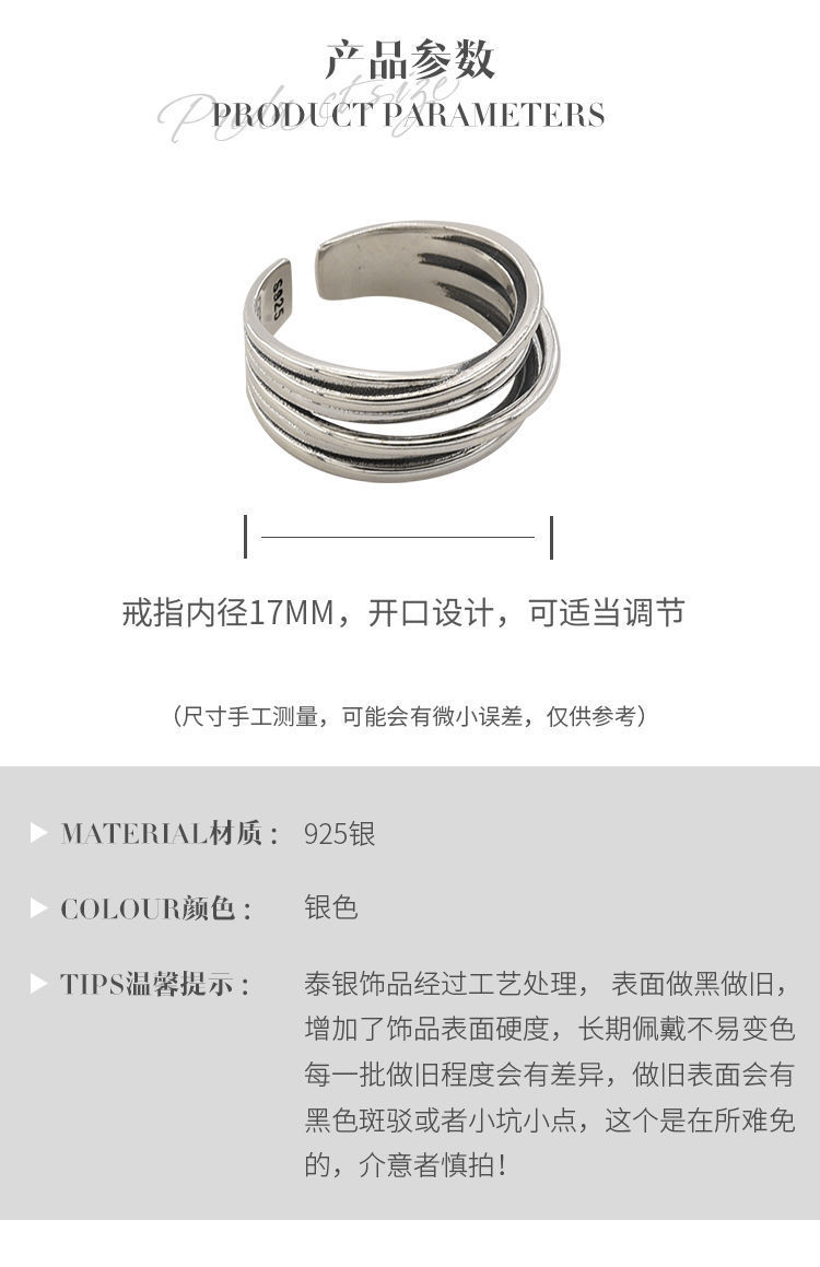 925纯银交叉缠绕复古多层戒指女ins2024年新款冷淡风开口食指戒子