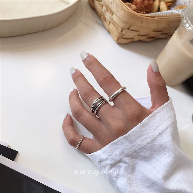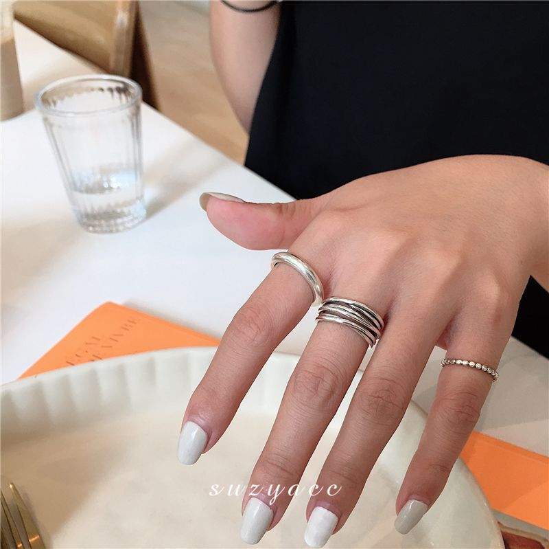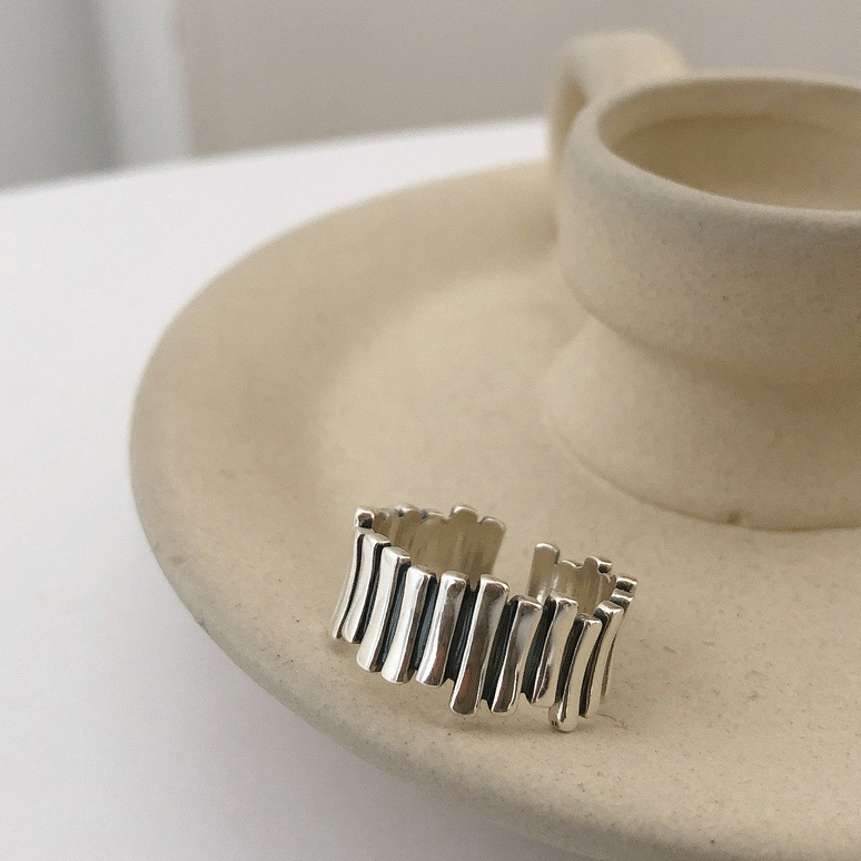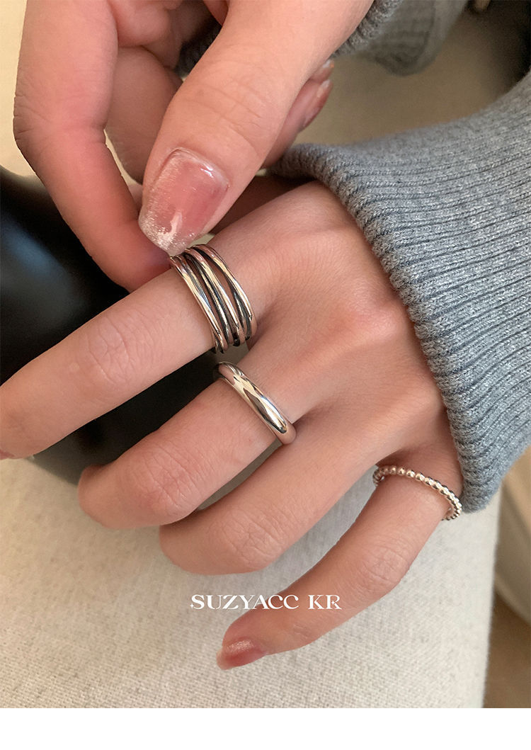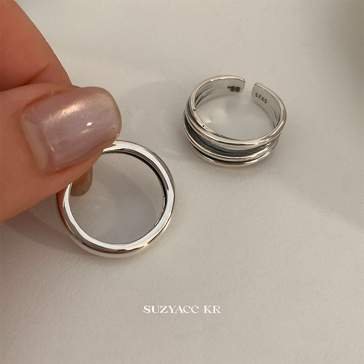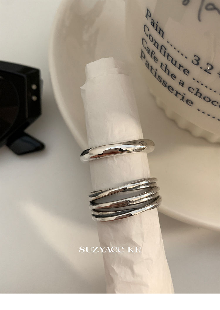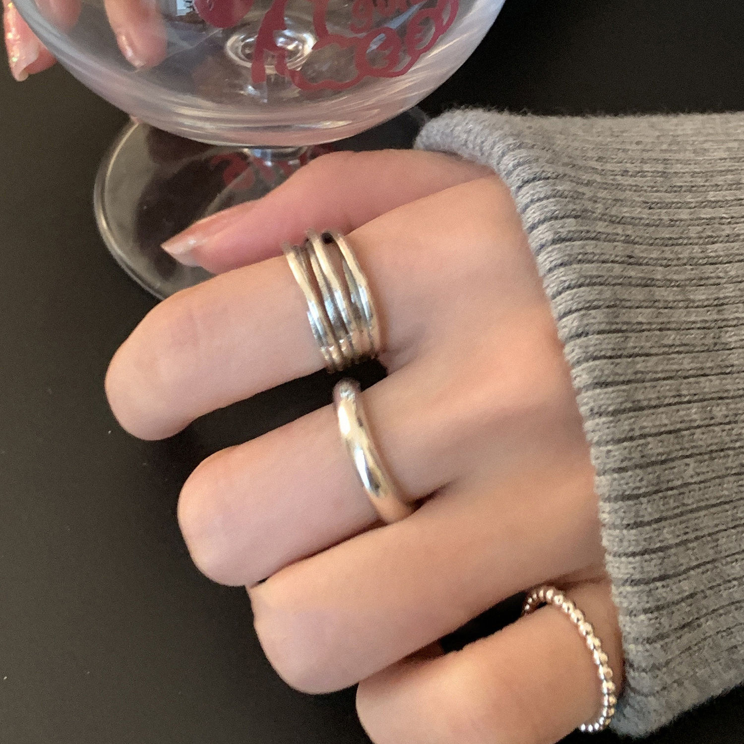 925纯银交叉缠绕复古多层戒指女ins2024年新款冷淡风开口食指戒子