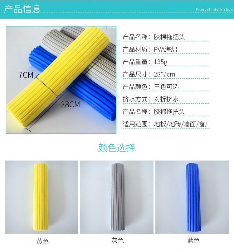 折叠式胶棉拖把头 拖把配件海绵头27cm对折式通用工厂直销