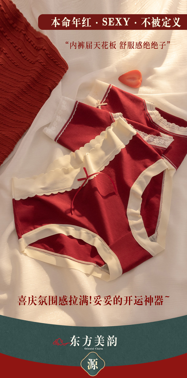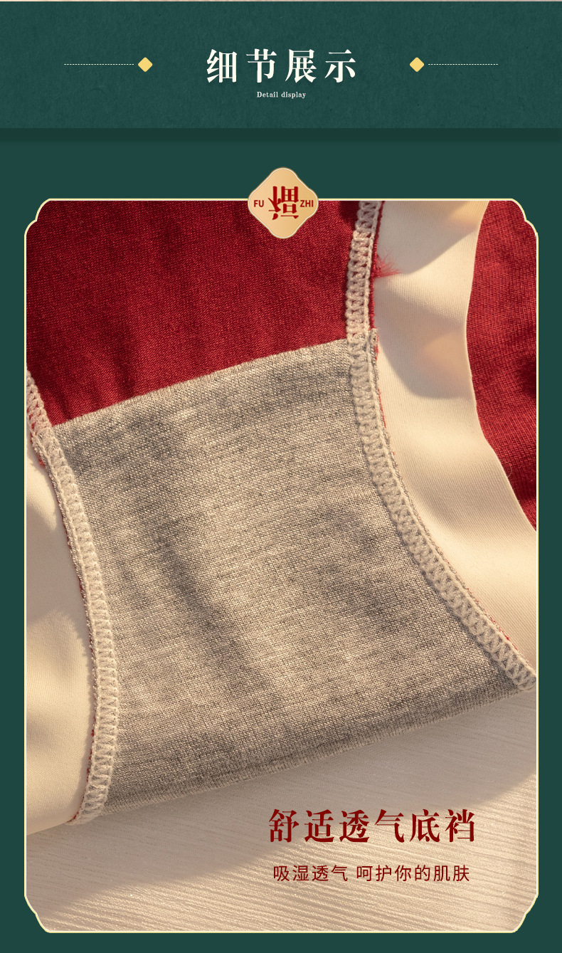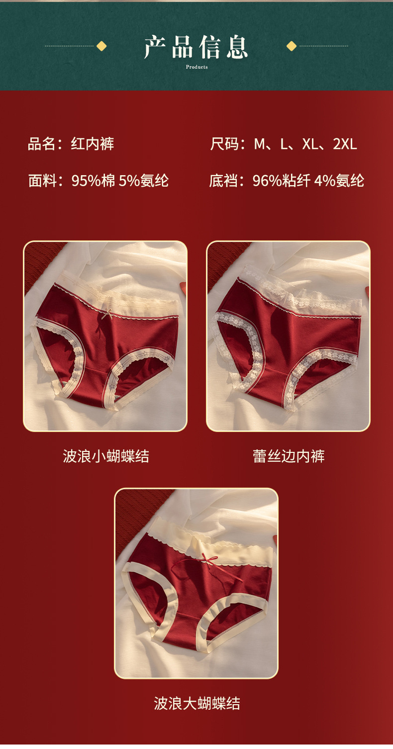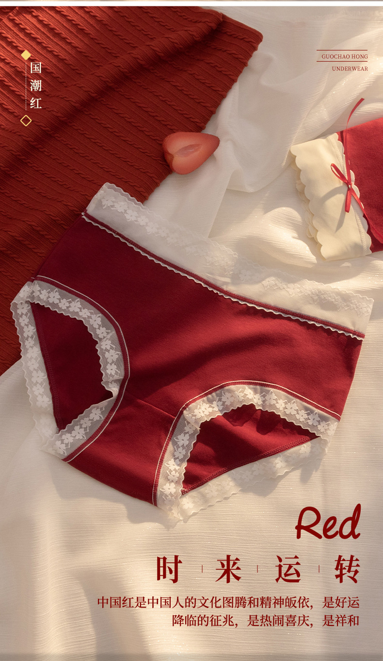 大红大紫本命年大红色内裤女加大码中腰透气无痕女士内裤结婚喜庆