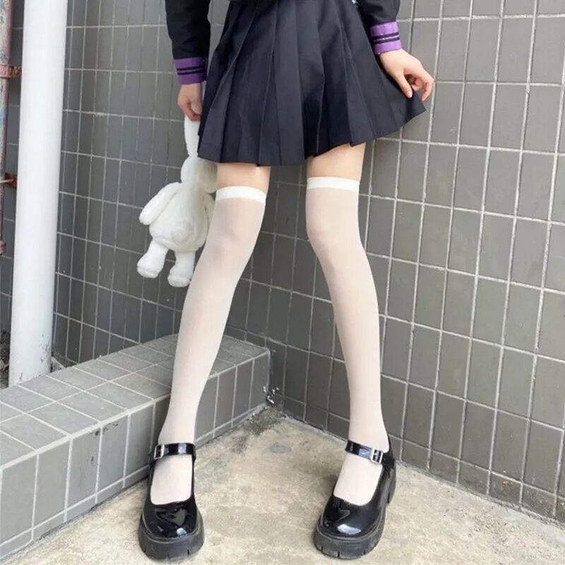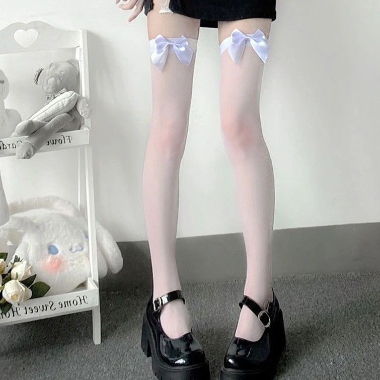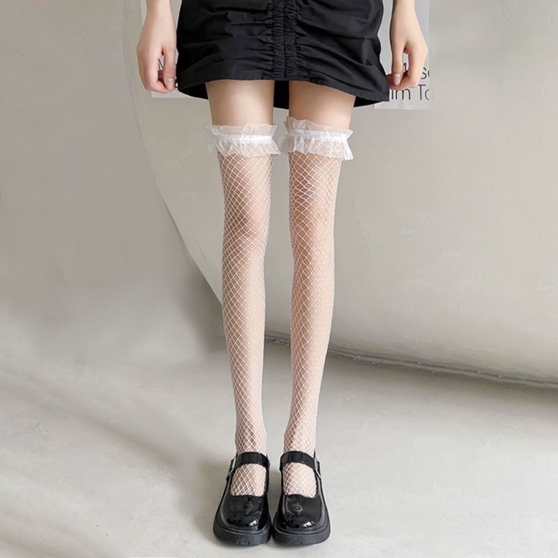 丝袜黑色ins破洞半截网纱花边长筒过膝甜美可爱包芯丝大腿袜