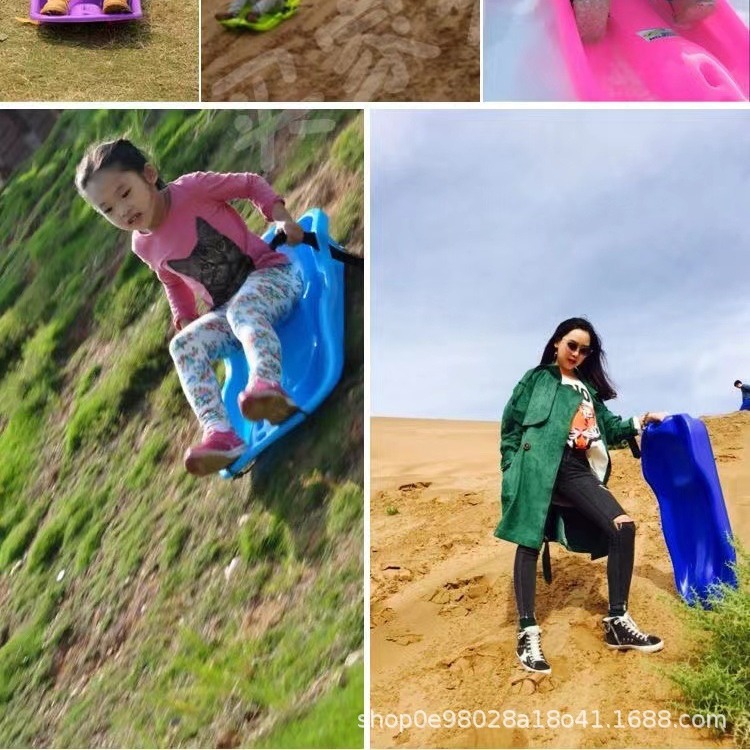 特厚加厚双人滑雪板成人儿童亲子滑草板地片雪橇爬犁滑沙板带刹车