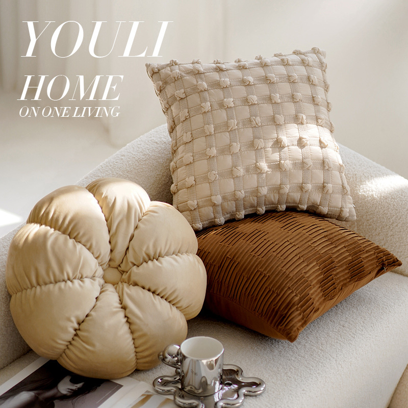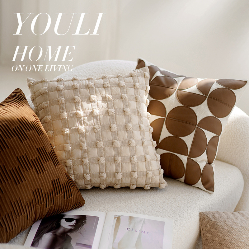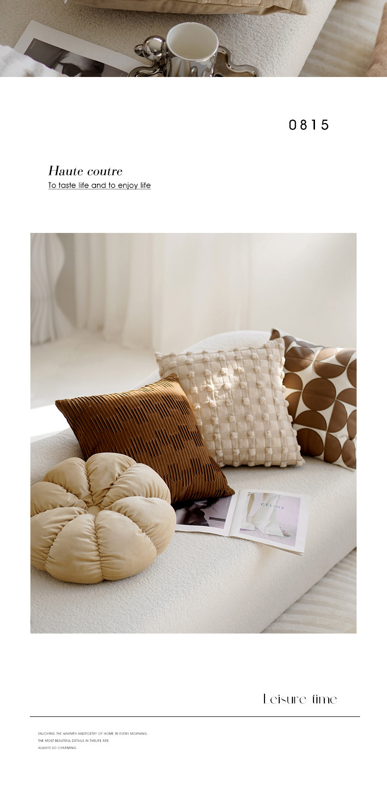 高级感法式咖色棕色抱枕套侘寂风靠枕现代简约客厅沙发靠垫民宿