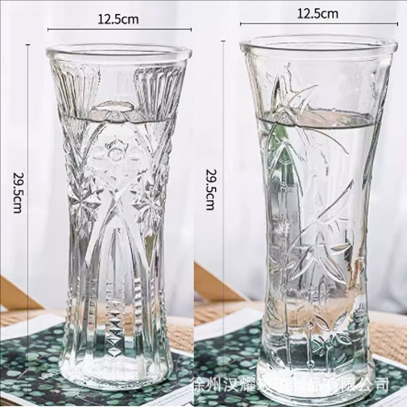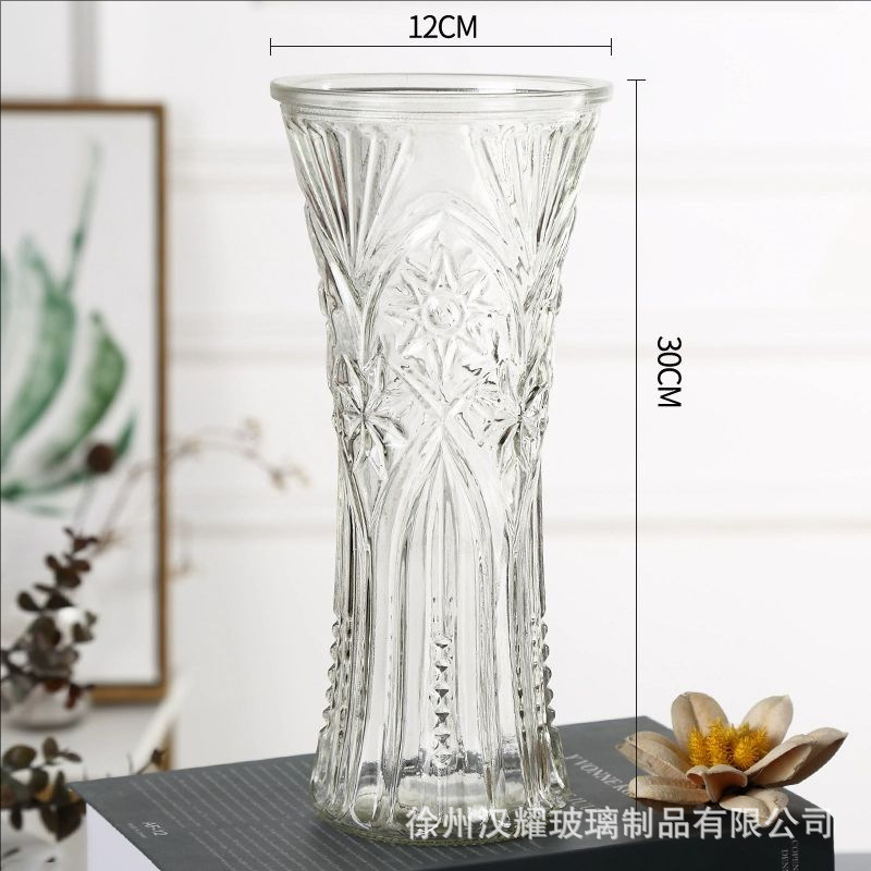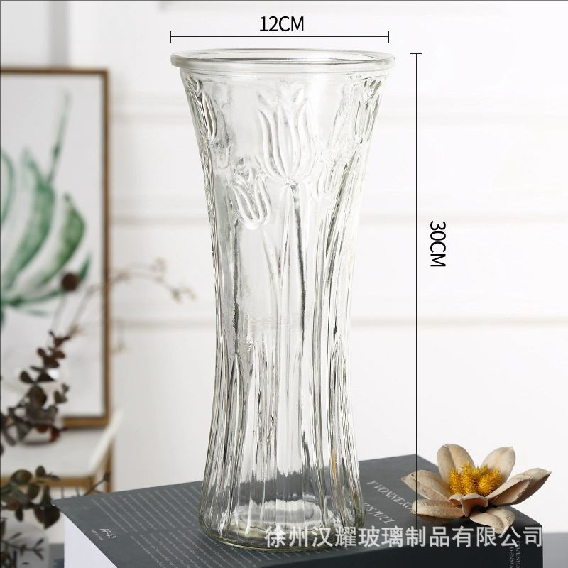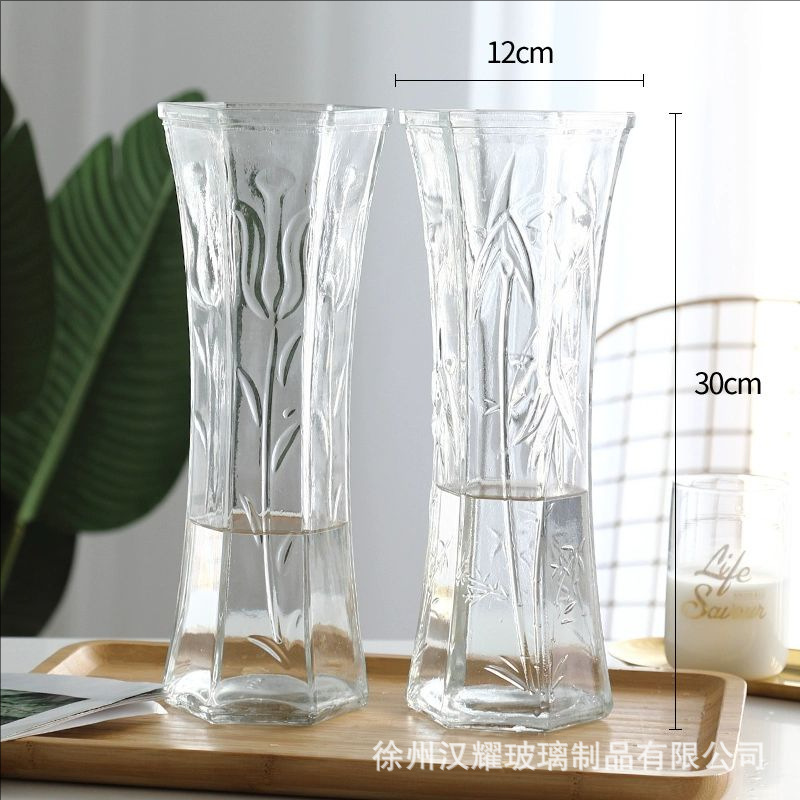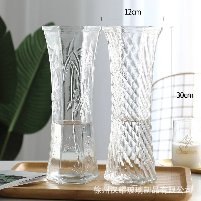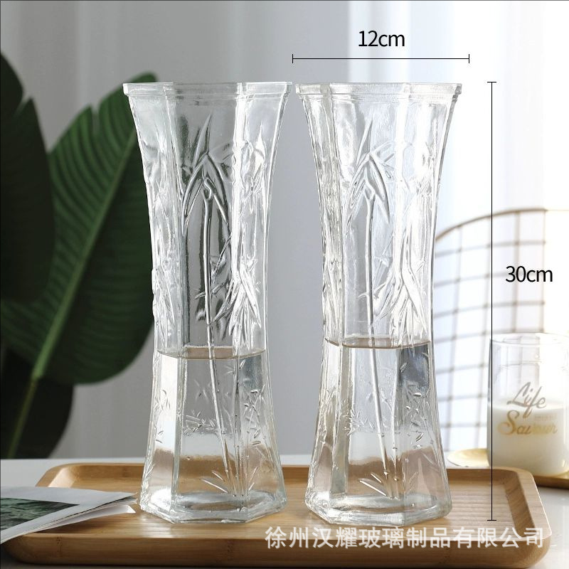 特大号简约玻璃花瓶透明水养北欧花瓶创意富贵竹插花家用客厅摆件