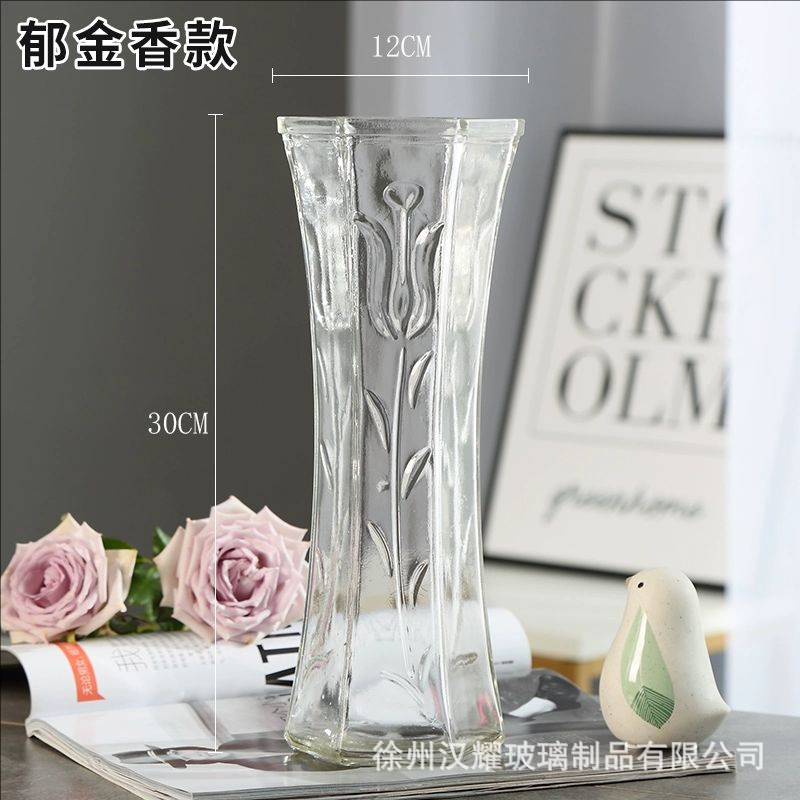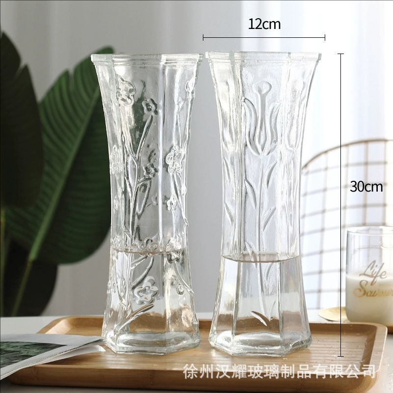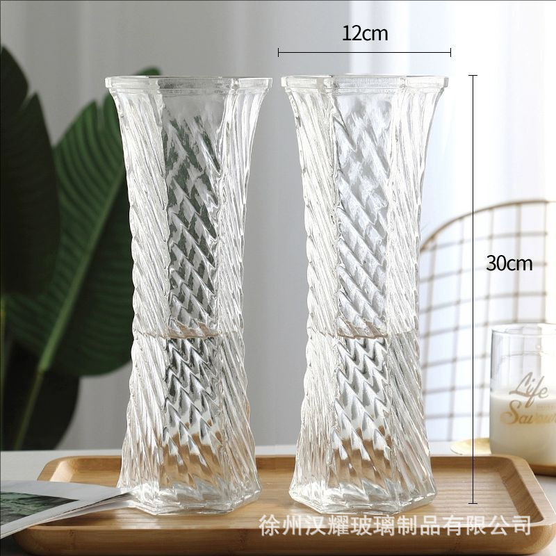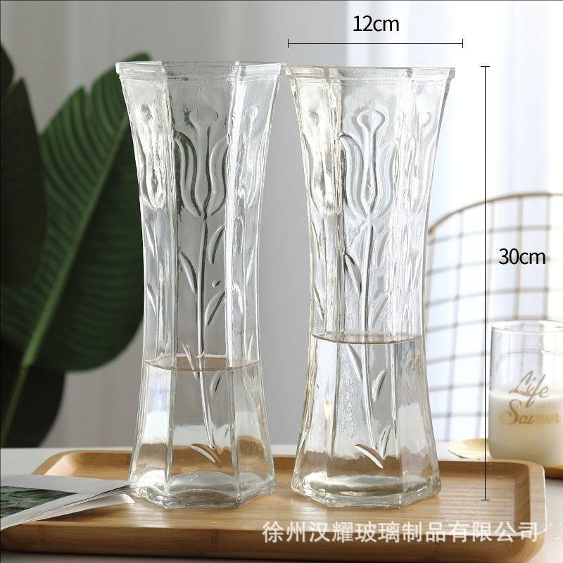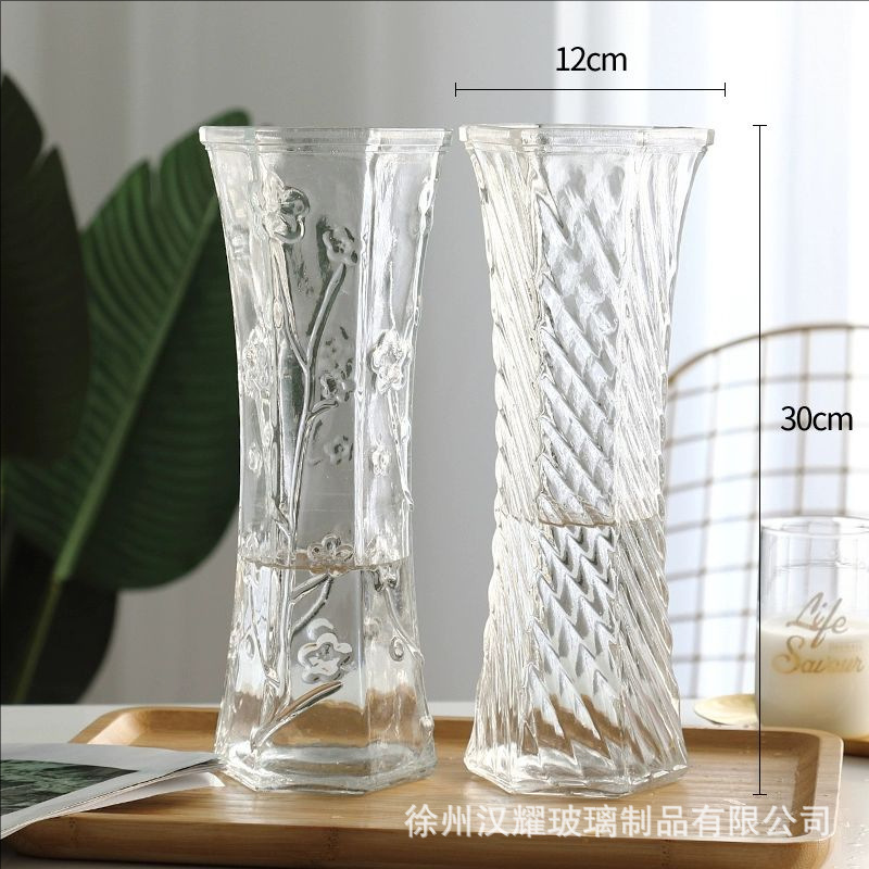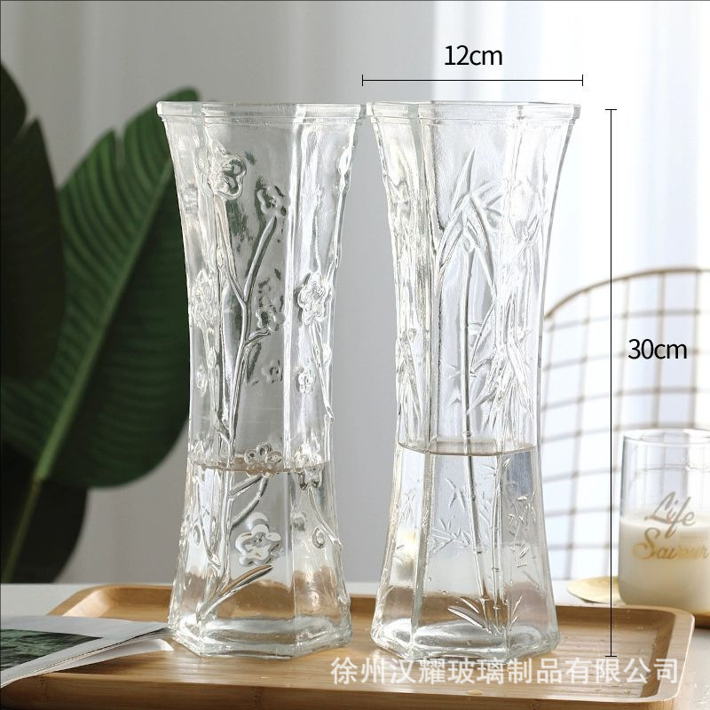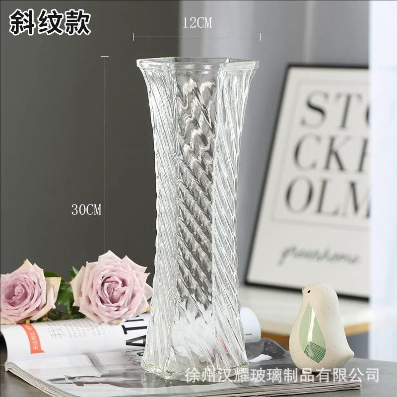 特大号简约玻璃花瓶透明水养北欧花瓶创意富贵竹插花家用客厅摆件