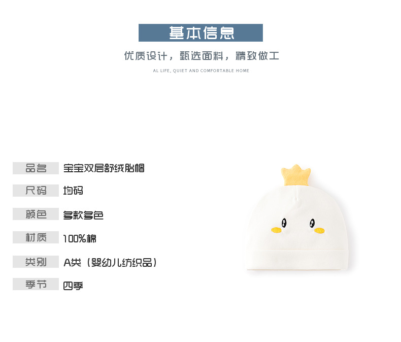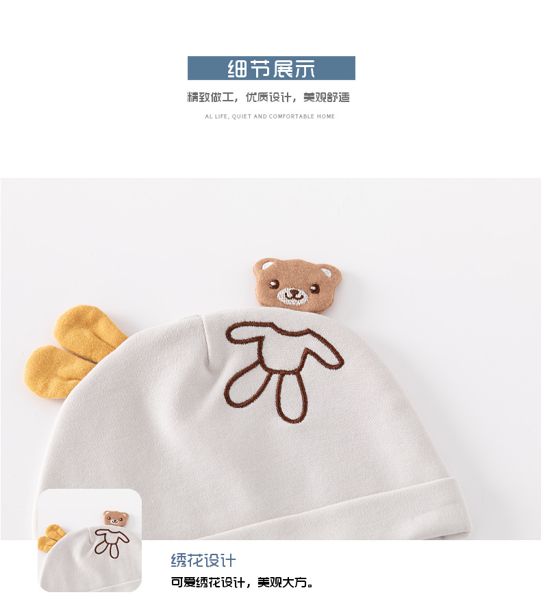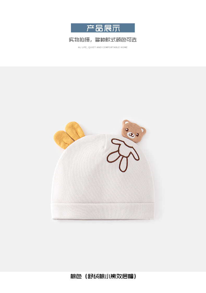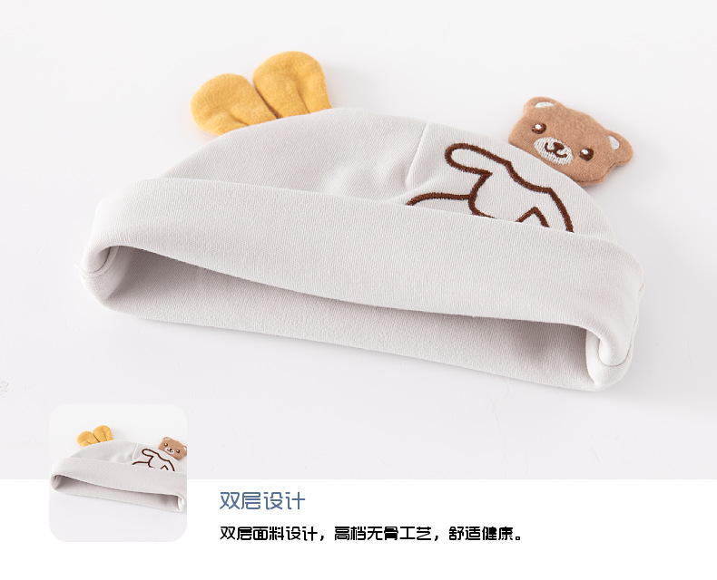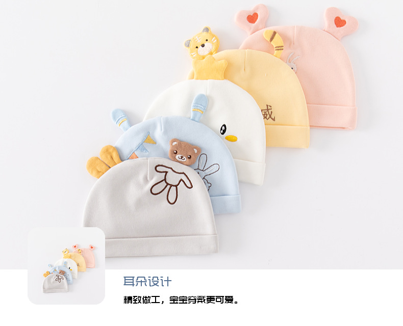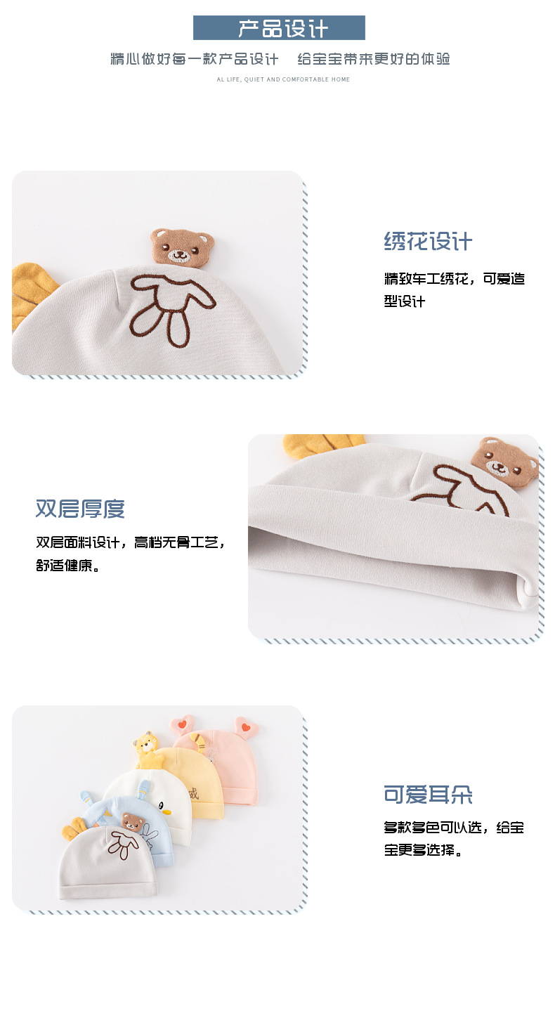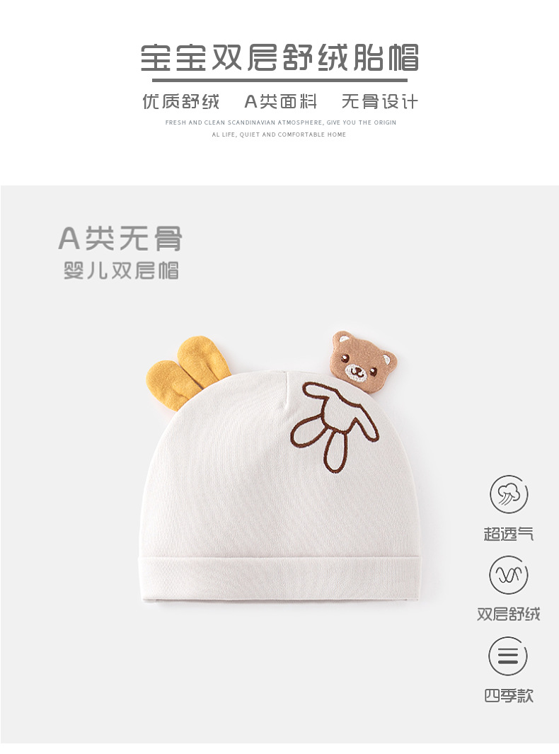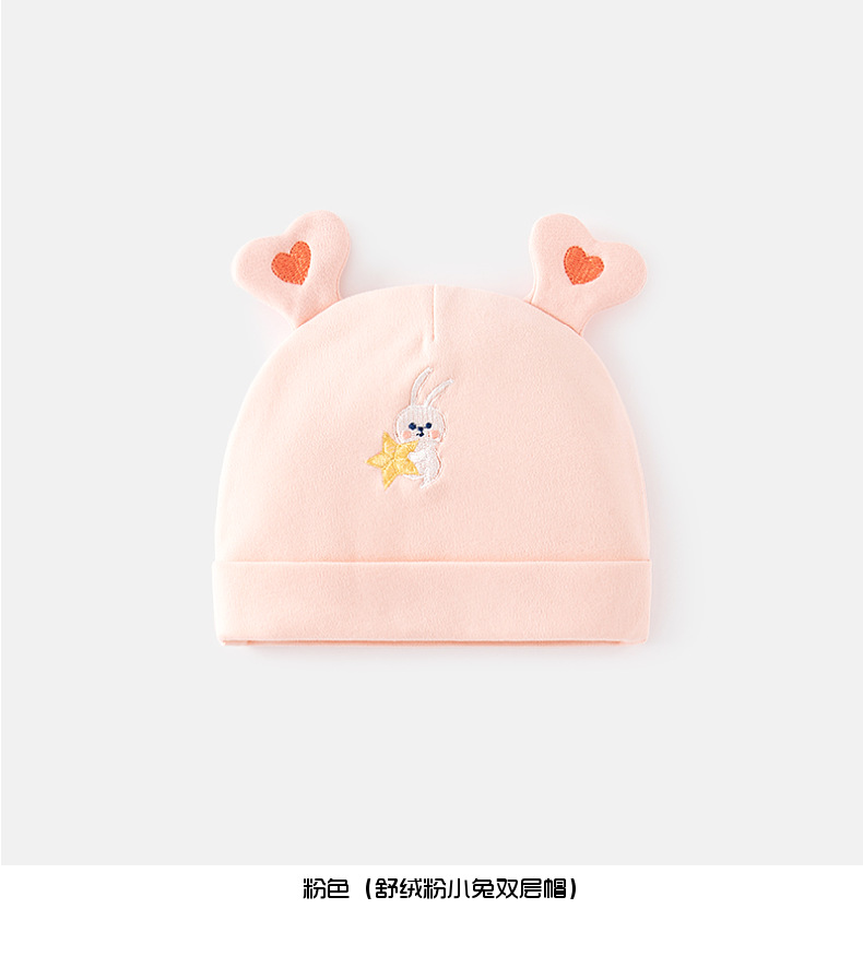 新生婴儿儿胎帽双层舒绒初生宝宝绣花护卤门0-6个月春秋无骨帽子
